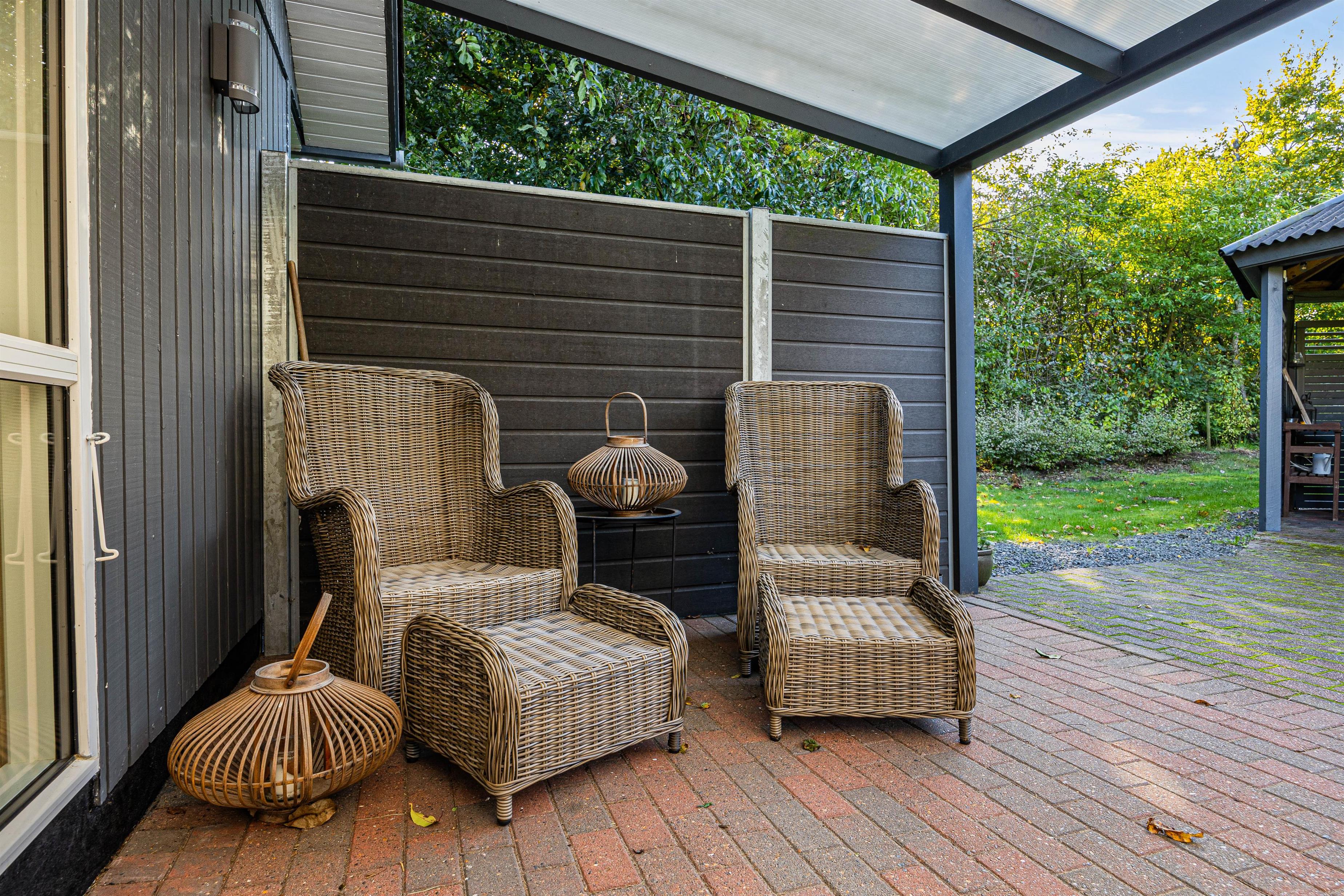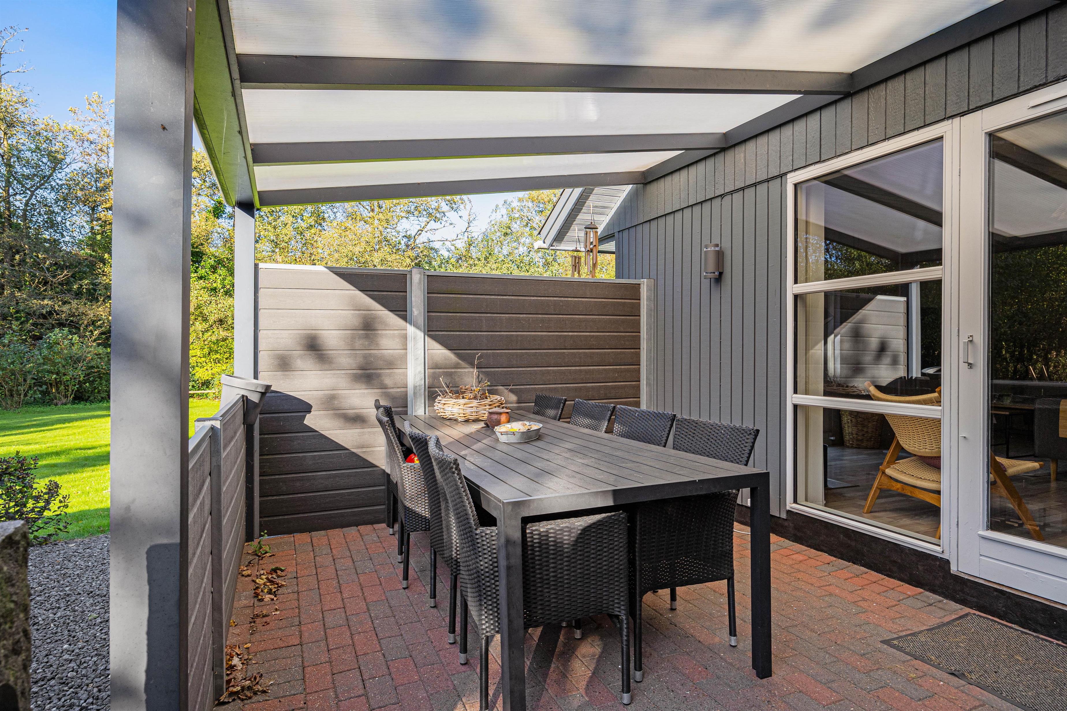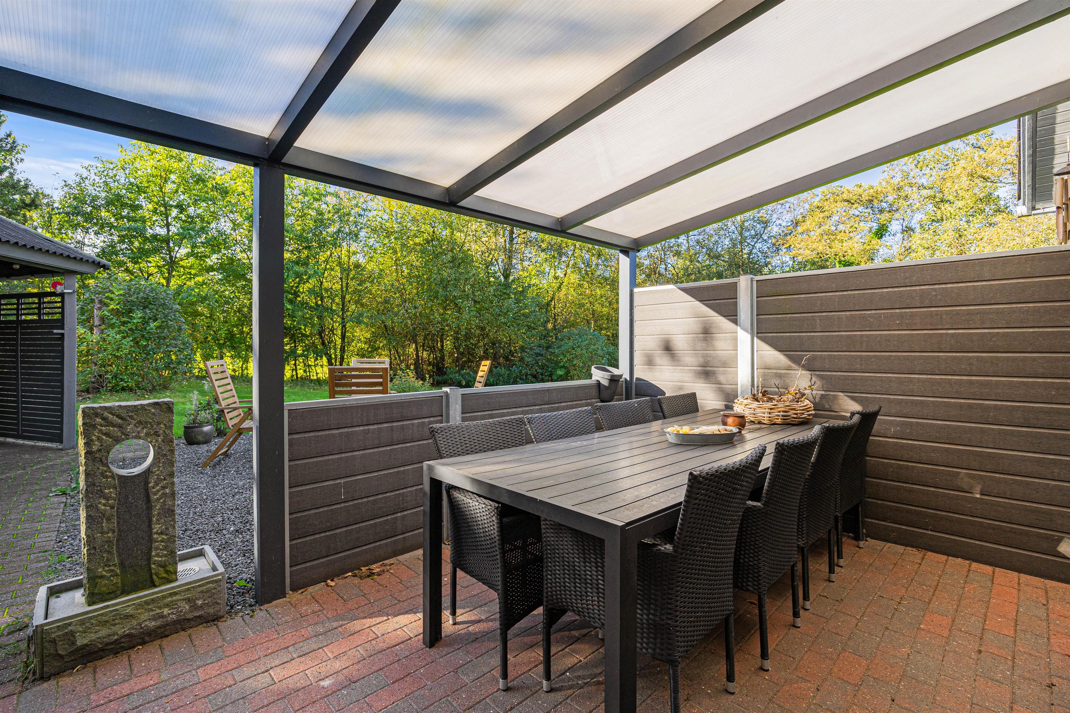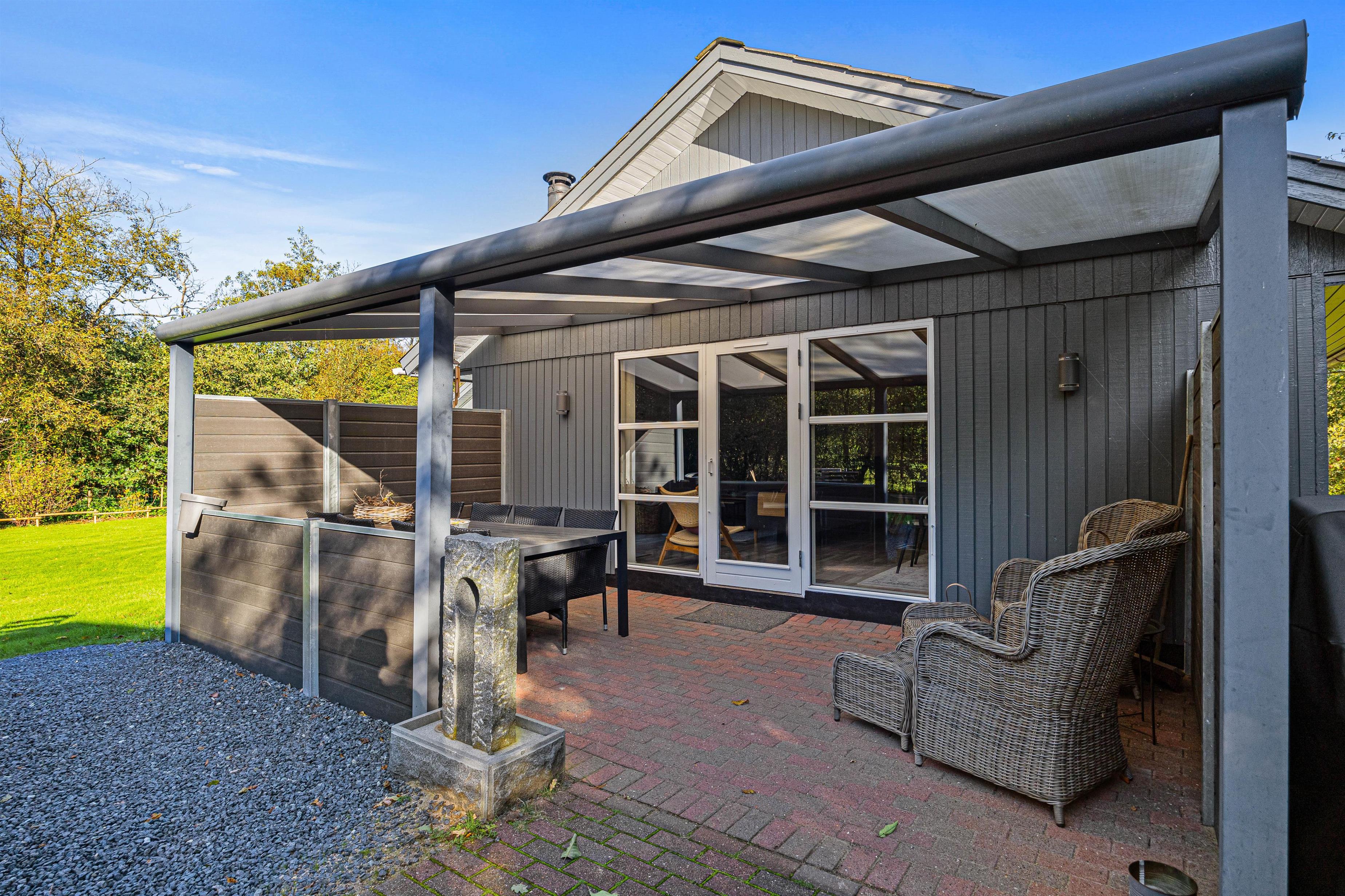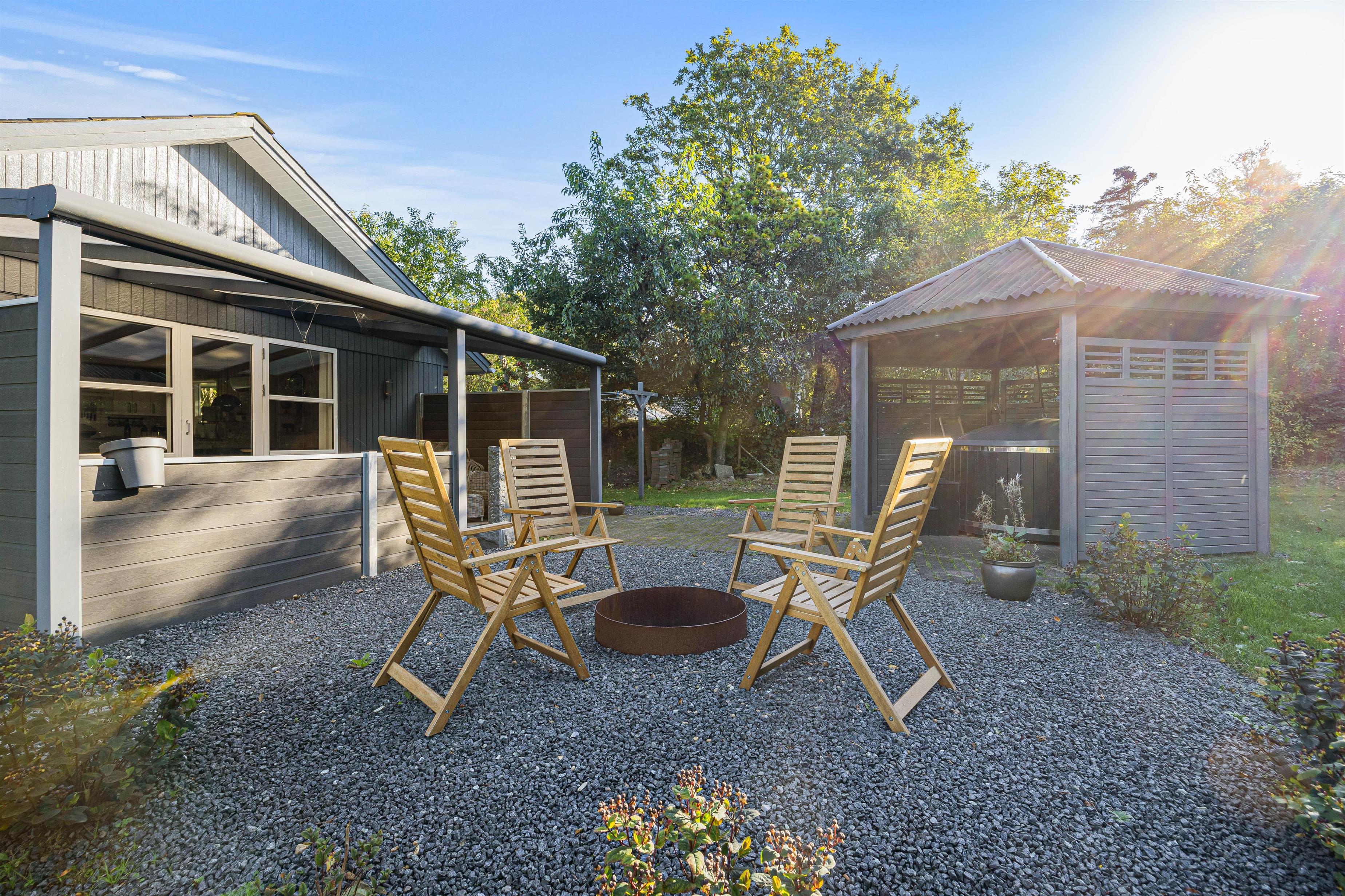 Fra stuen kan I træde direkte ud på terrassen, hvor I finder både havemøbler, grill og parasol, som inviterer til hyggelige aftener med mad under åben himmel. Sommerhuset er beliggende på en stor, 1600 kvadratmeter plænegrund, som giver masser af plads til leg og afslapning. Der er flere terrasser rundt om huset, så der er altid en plads i solen, hvor I kan nyde morgenkaffen.