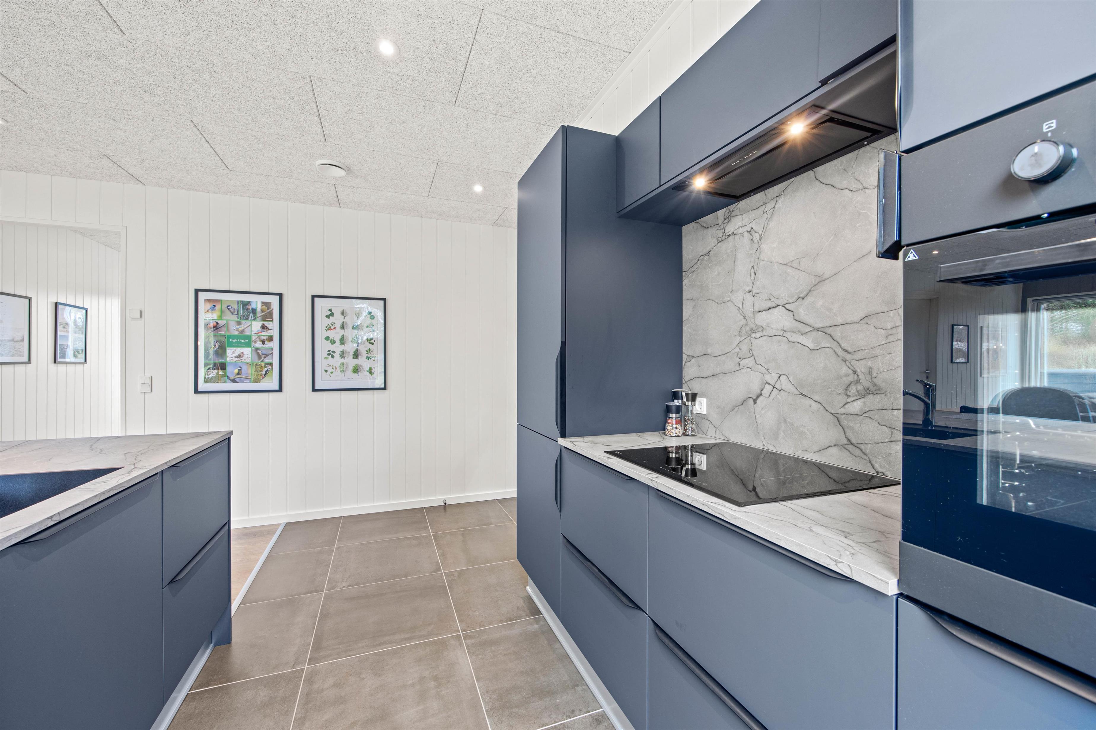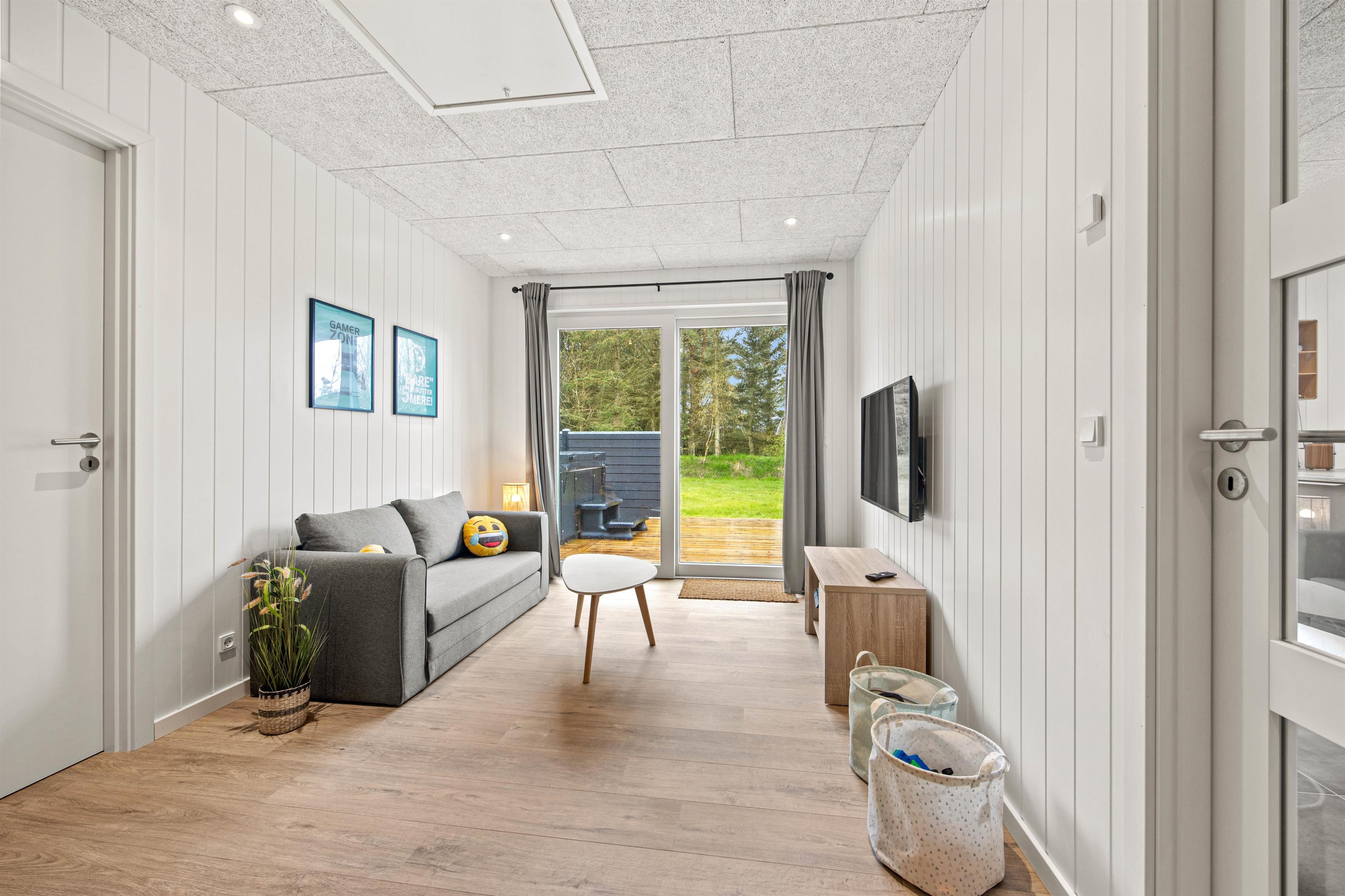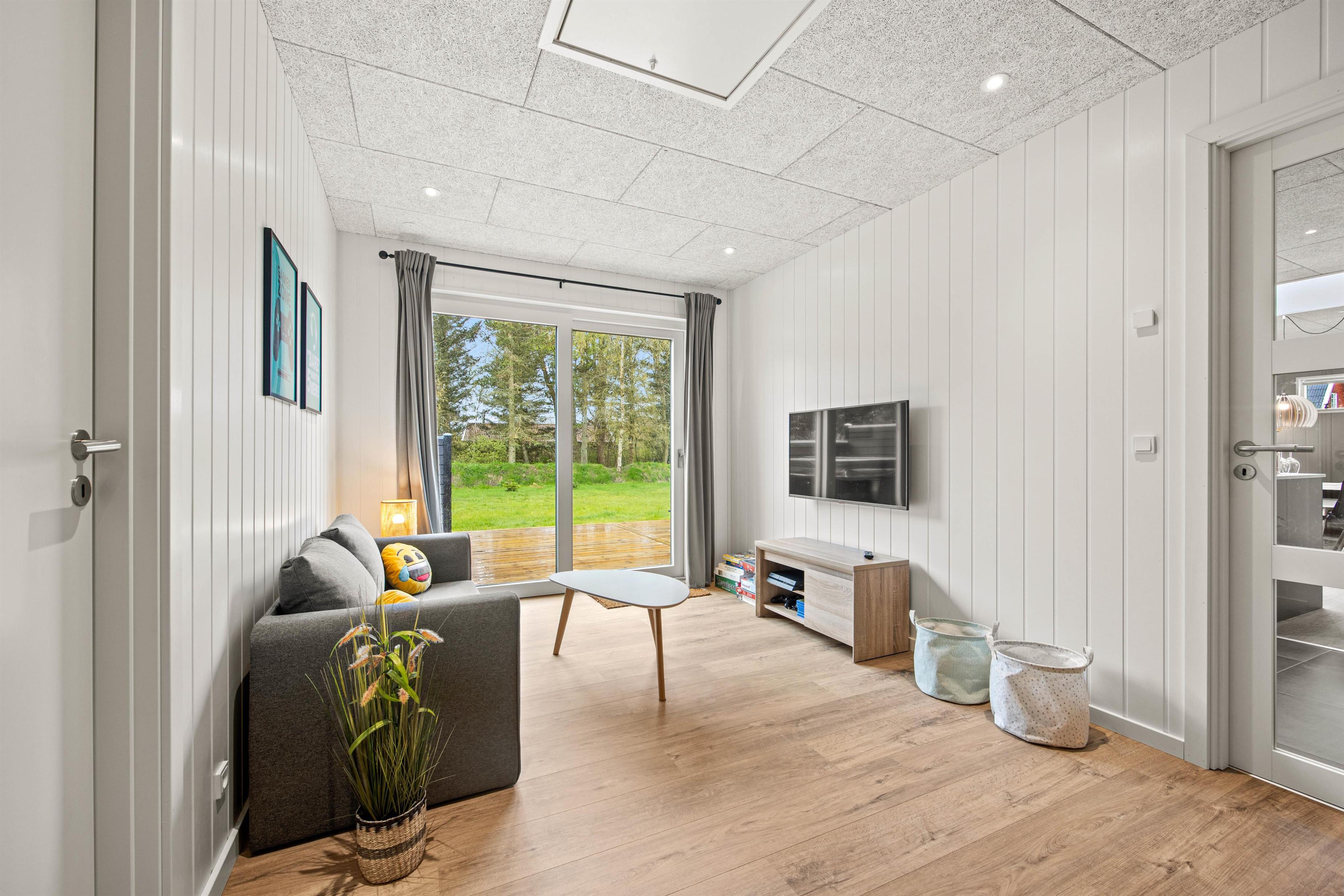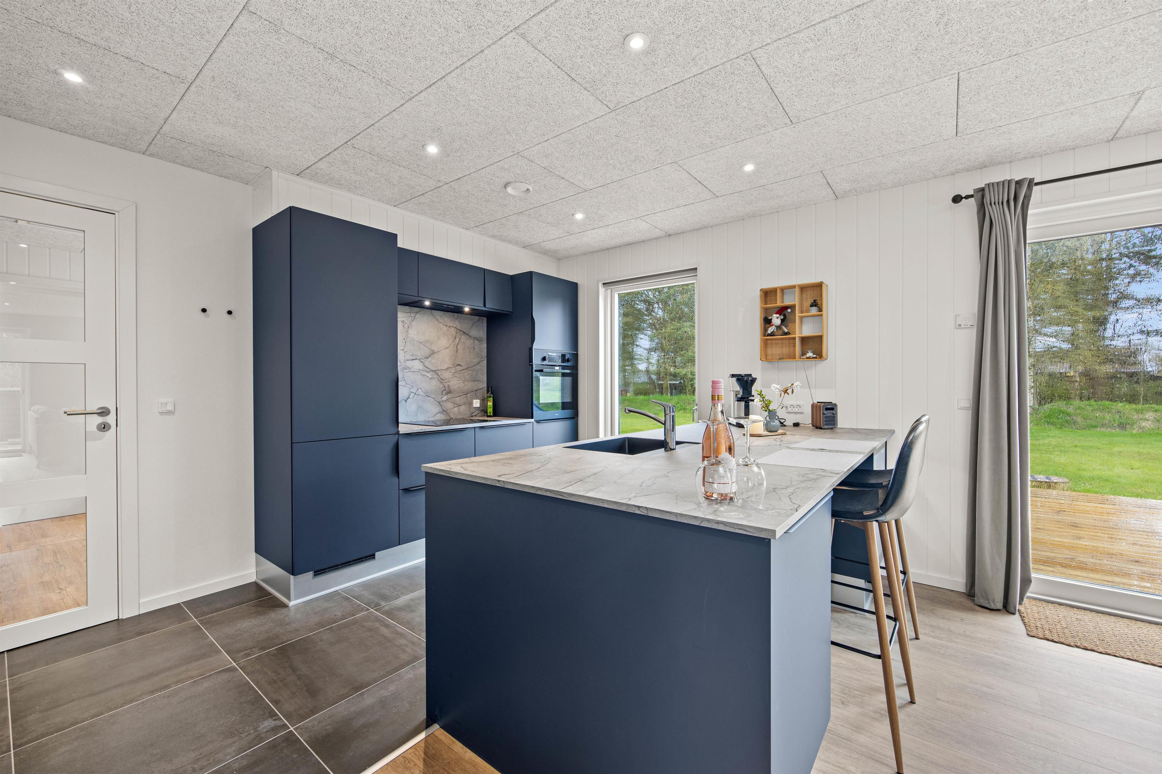 Det flotte køkken ligger centralt i sommerhuset og her kan I helt sikkert lave en masse lækkerier. Bagefter hjælper opvaskemaskinen jer med at tage opvasken, så I har mere tid til nærvær og hygge. Børnene kan være med i køkkenet eller fordrive tiden ved spisebordet med et puslespil eller et spil. Huset opvarmes med en energirigtig luft-til-vand varmepumpe, så der er gulvvarme i hele huset. Om aftenen kan I sætte jer sammen i stuen og streame jeres yndlingsfilm på tv’ets Chromecast.