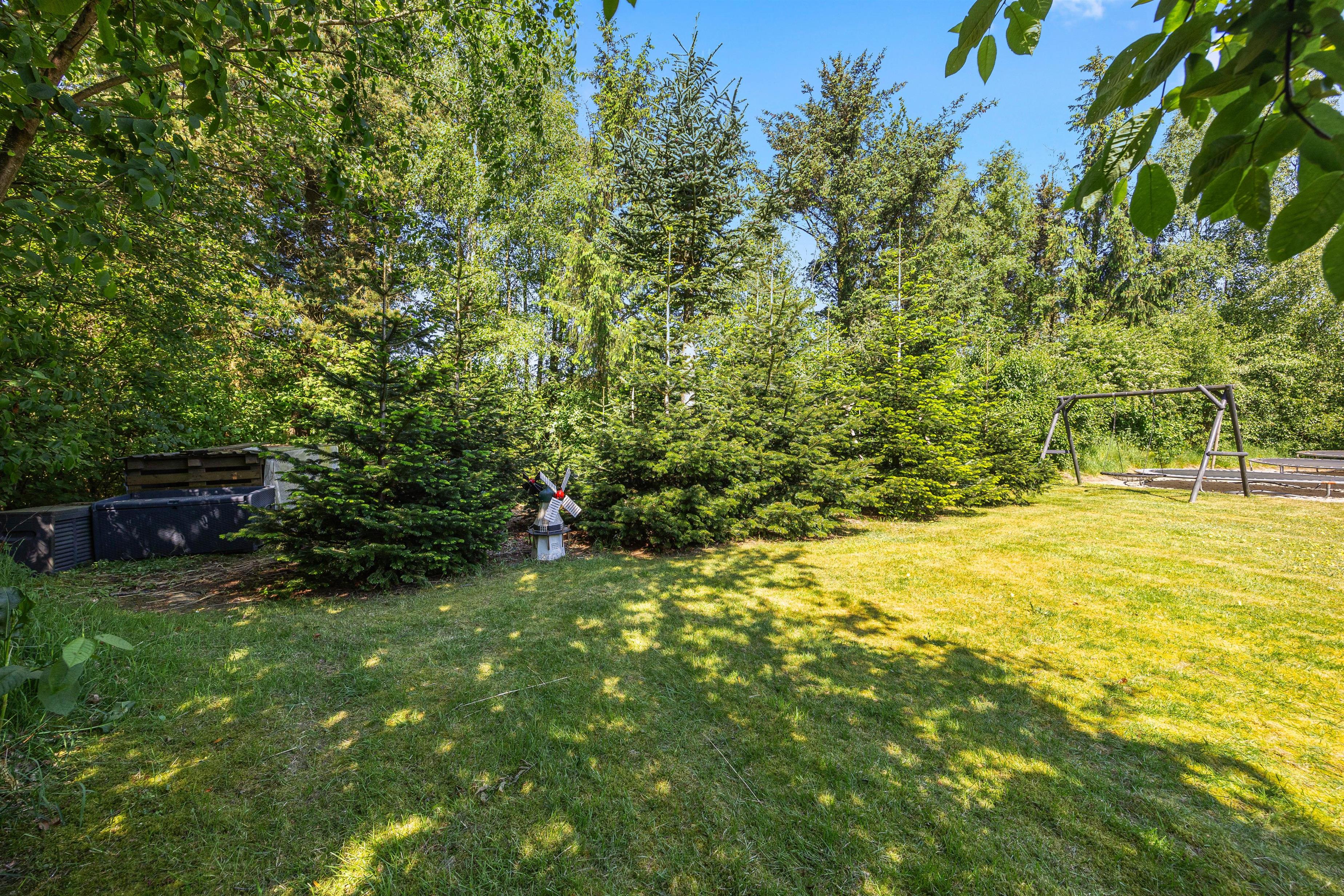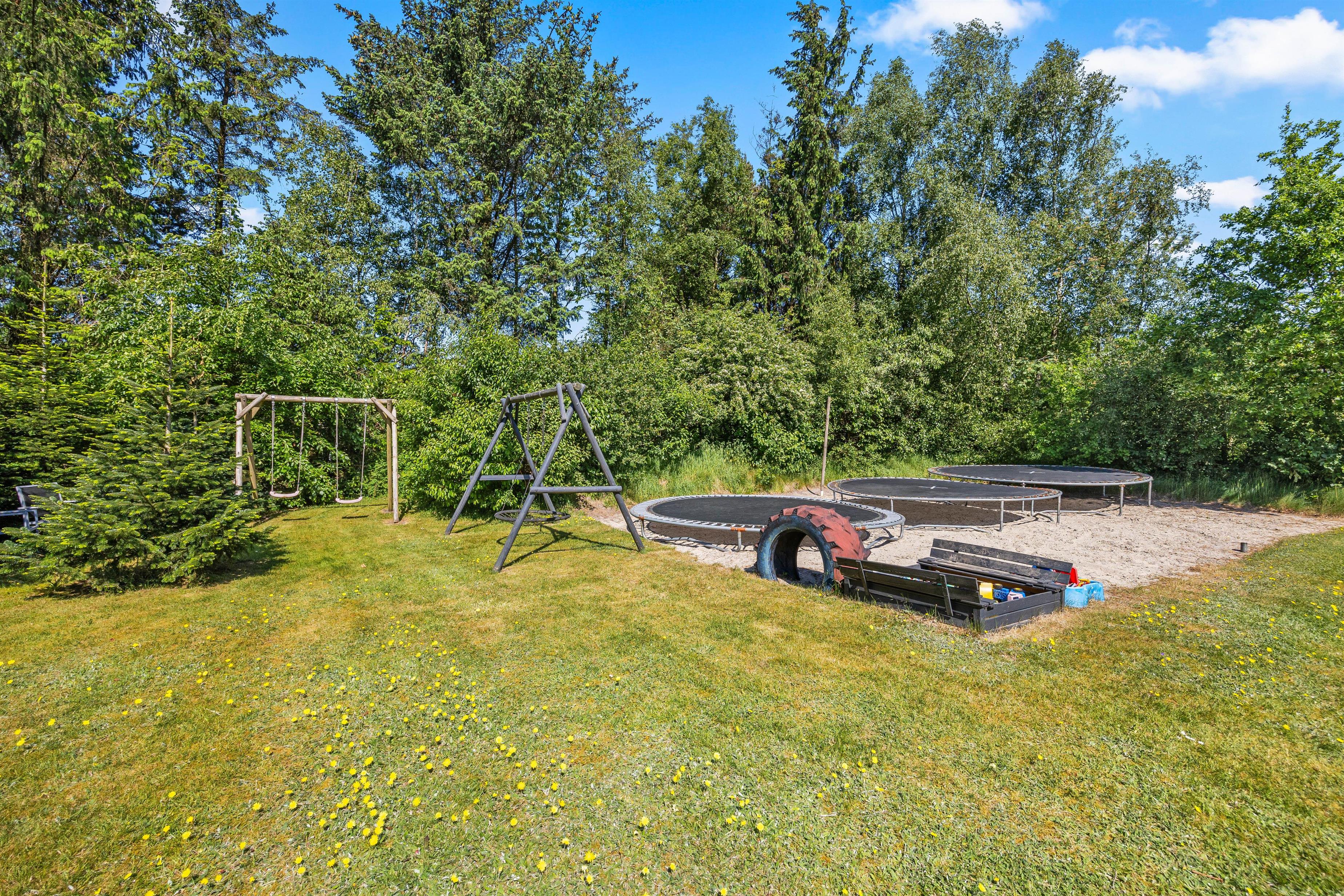 Med en stor plænegrund på hele 1660 kvadratmeter er der masser af plads til leg og boldspil for hele familien. Børnene vil elske trampolinen, der står klar til hoppeleg, mens I kan samles omkring bålpladsen og nyde øjeblikke med at lave snobrød eller riste skumfiduser. For at sikre jeres fortsatte eventyr er der en ladestander til bilen, så mens I måske hygger jer i haven, kan bilen lade op.