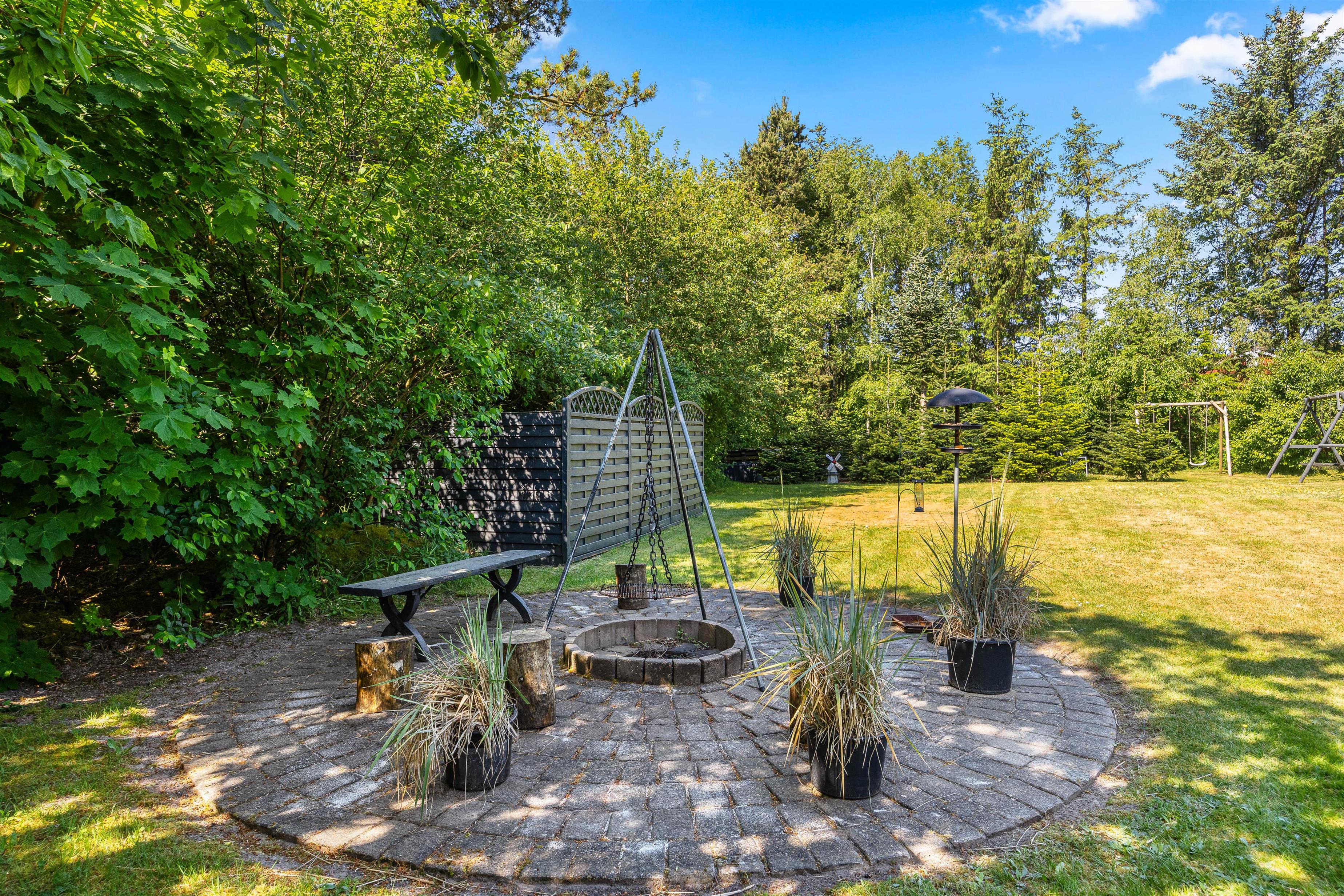 Hyggelige omgivelser – Bålplads og trampolin