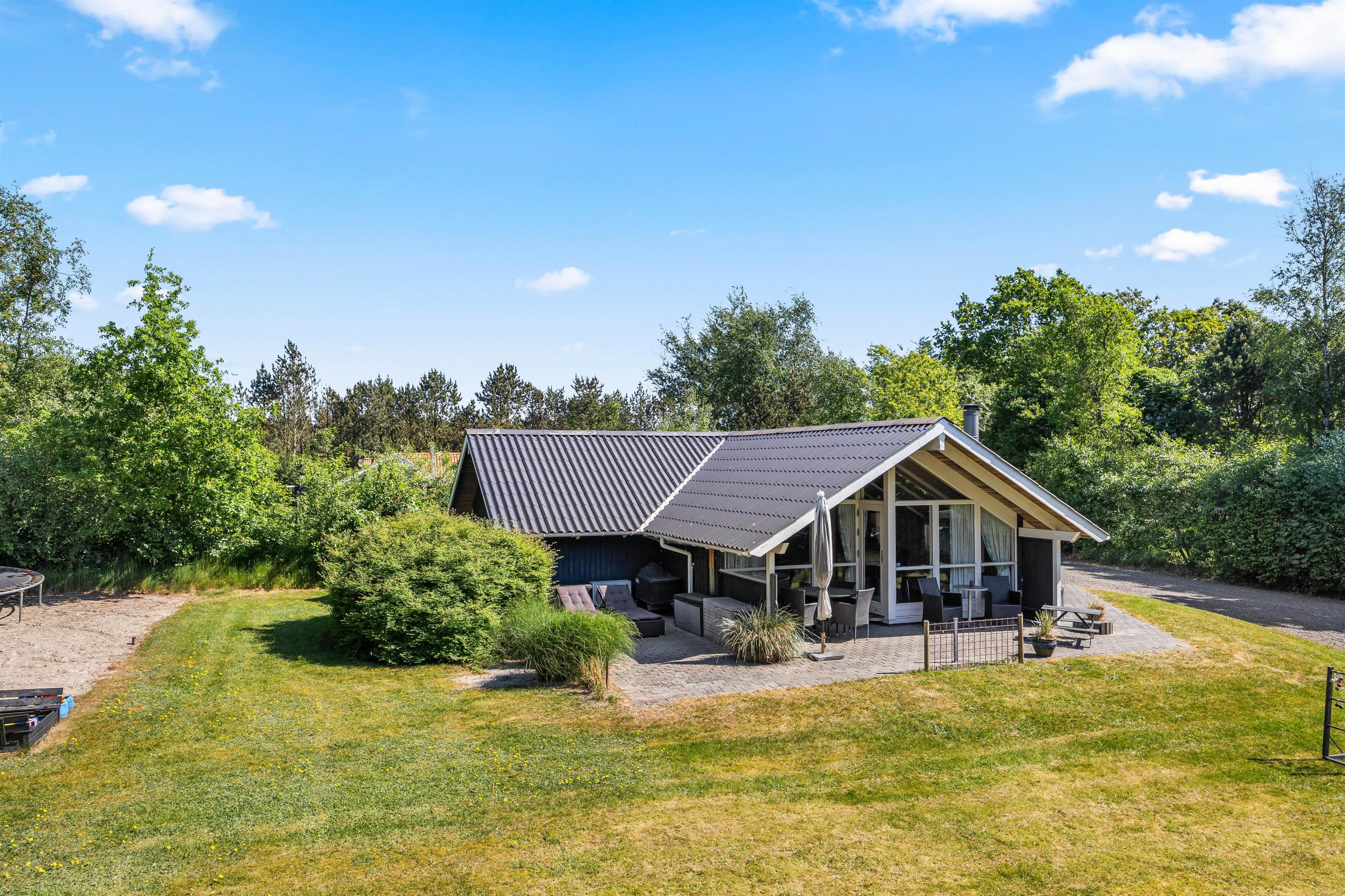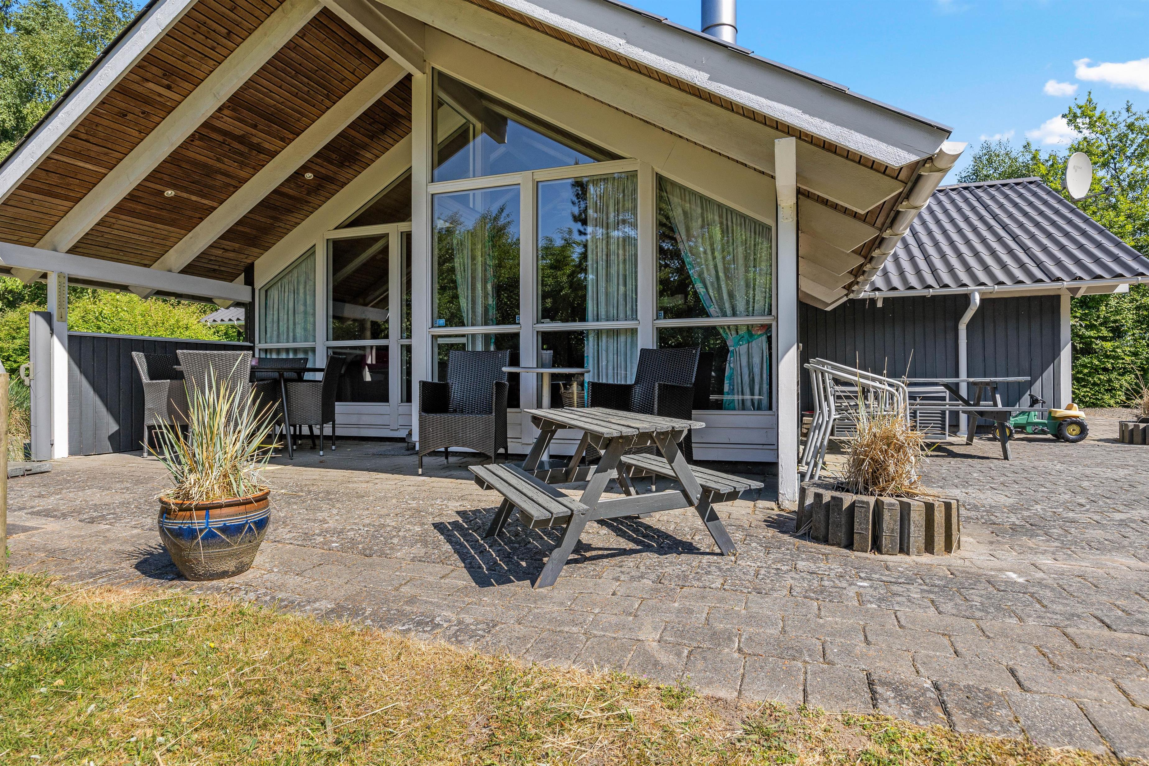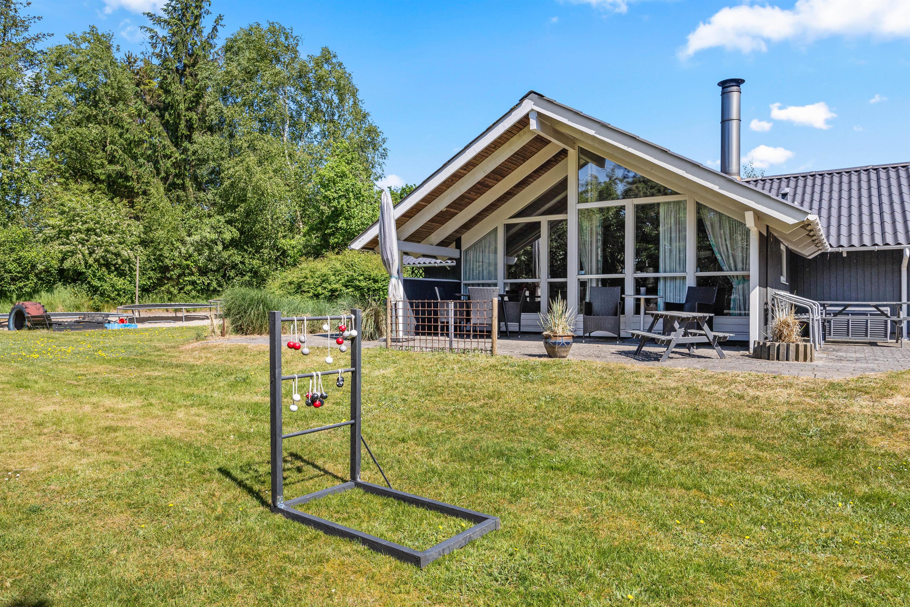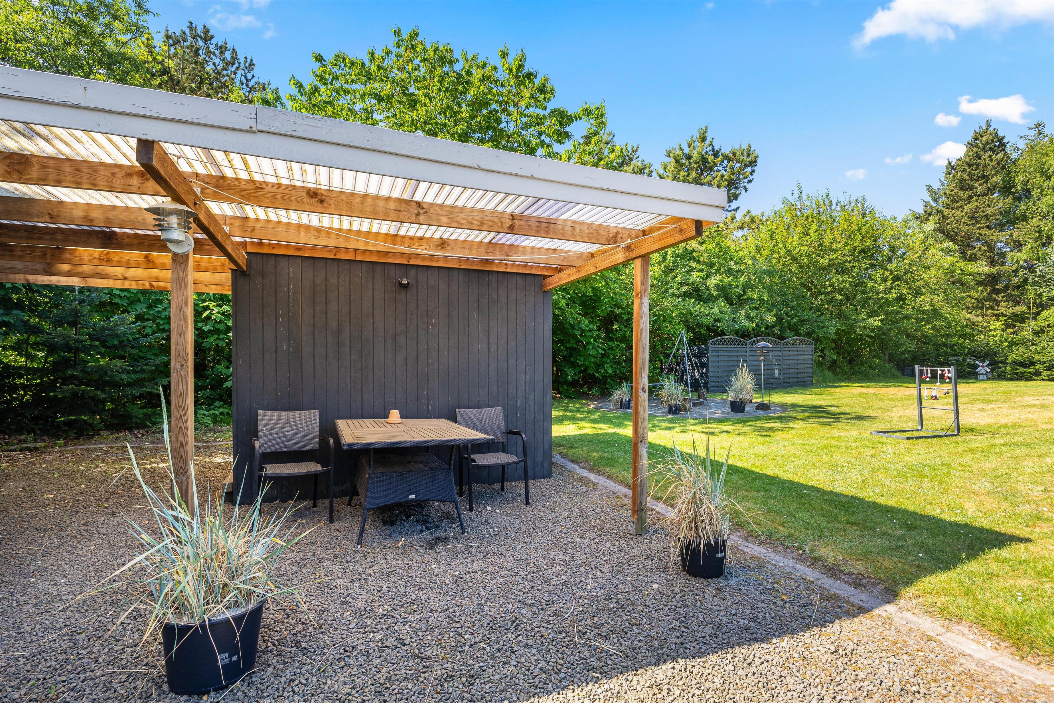 Omgivet af en have med masser af plads, vil I opdage flere hyggelige terrasser ved Egelunden 6, som inviterer jer til at nyde alt, hvad ferien har at byde på under den åbne himmel. Uanset om I ønsker at grille saftige pølser på grillen eller slappe af i komfortable havemøbler, vil I finde alt, hvad I behøver til en hyggelig aften udendørs. Solvogne står også klar til jer, så I kan nyde solens varme stråler og få en dejlig brun farve.