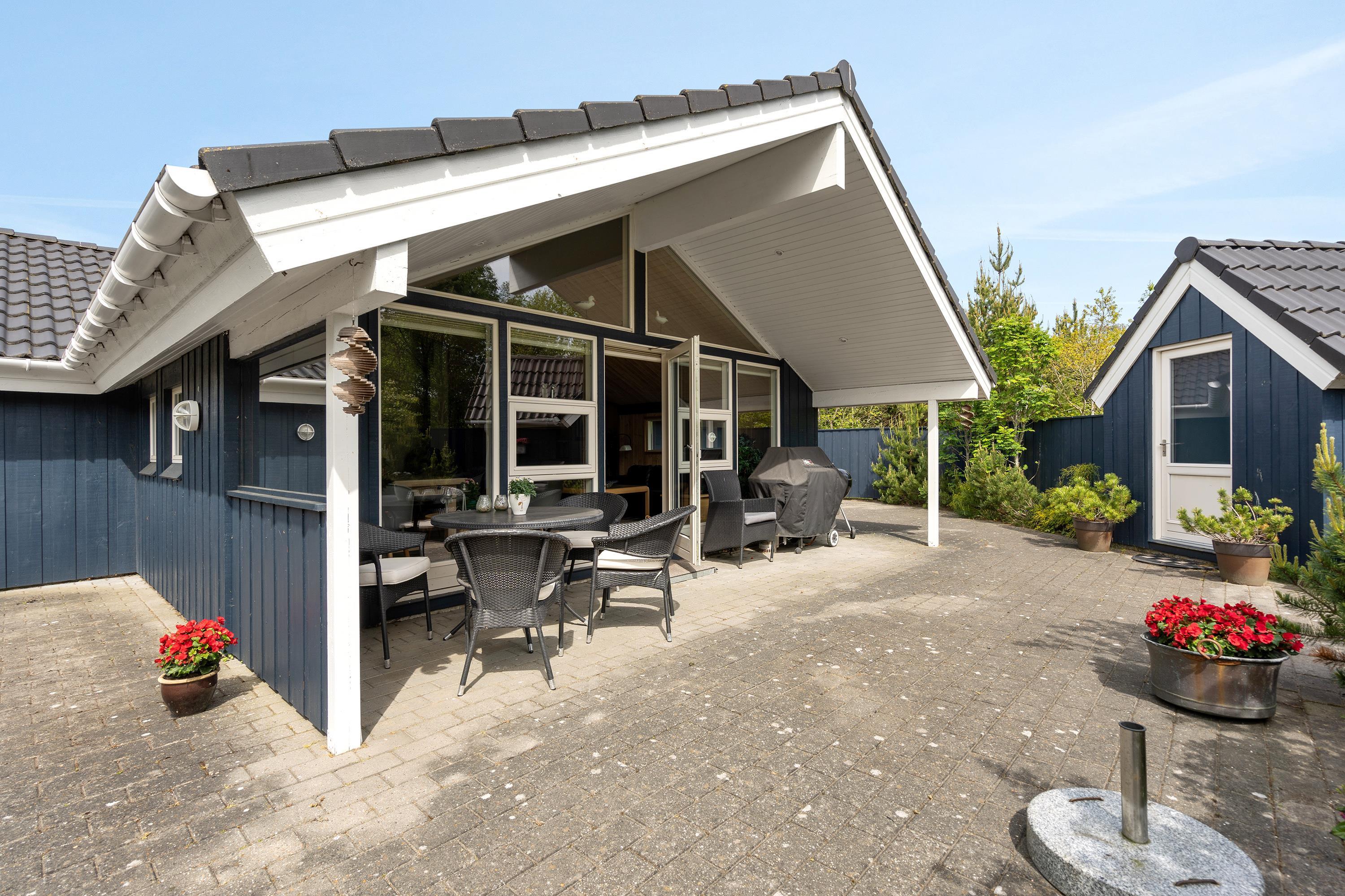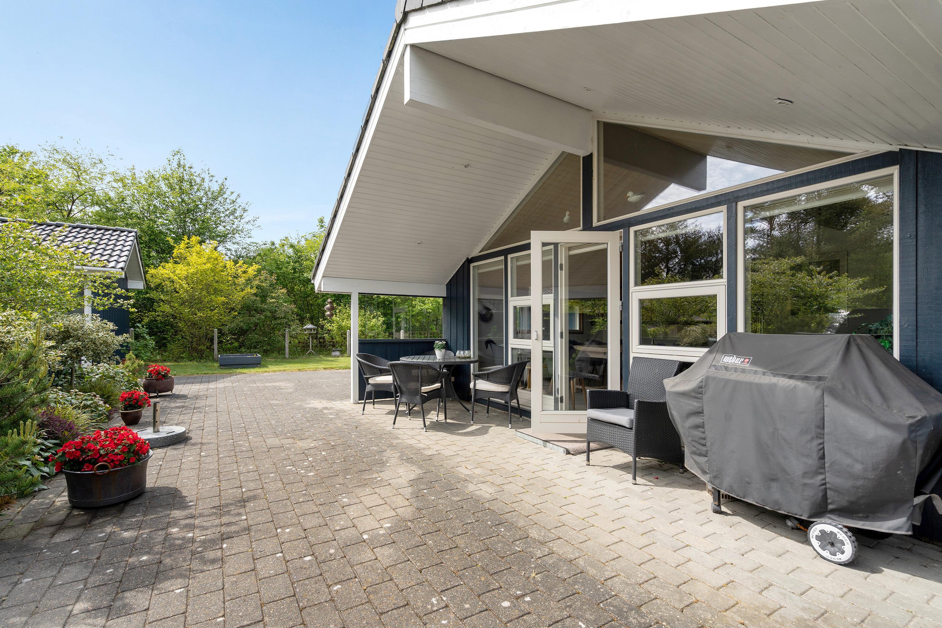 Når solen titter frem og temperaturerne stiger, er det med at komme ud og nyde det. Det kan I gøre på sommerhusets skønne lukkede terrasse, der er delvist overdækket. Her kan I læne jer tilbage i liggestole, havemøbler og nyde udsigten til den grønne natur, der omgiver sommerhuset. Når dagen så småt går på hæld, kan I tænde op i grillen og sammen nyde en lækker middag på terrassen.