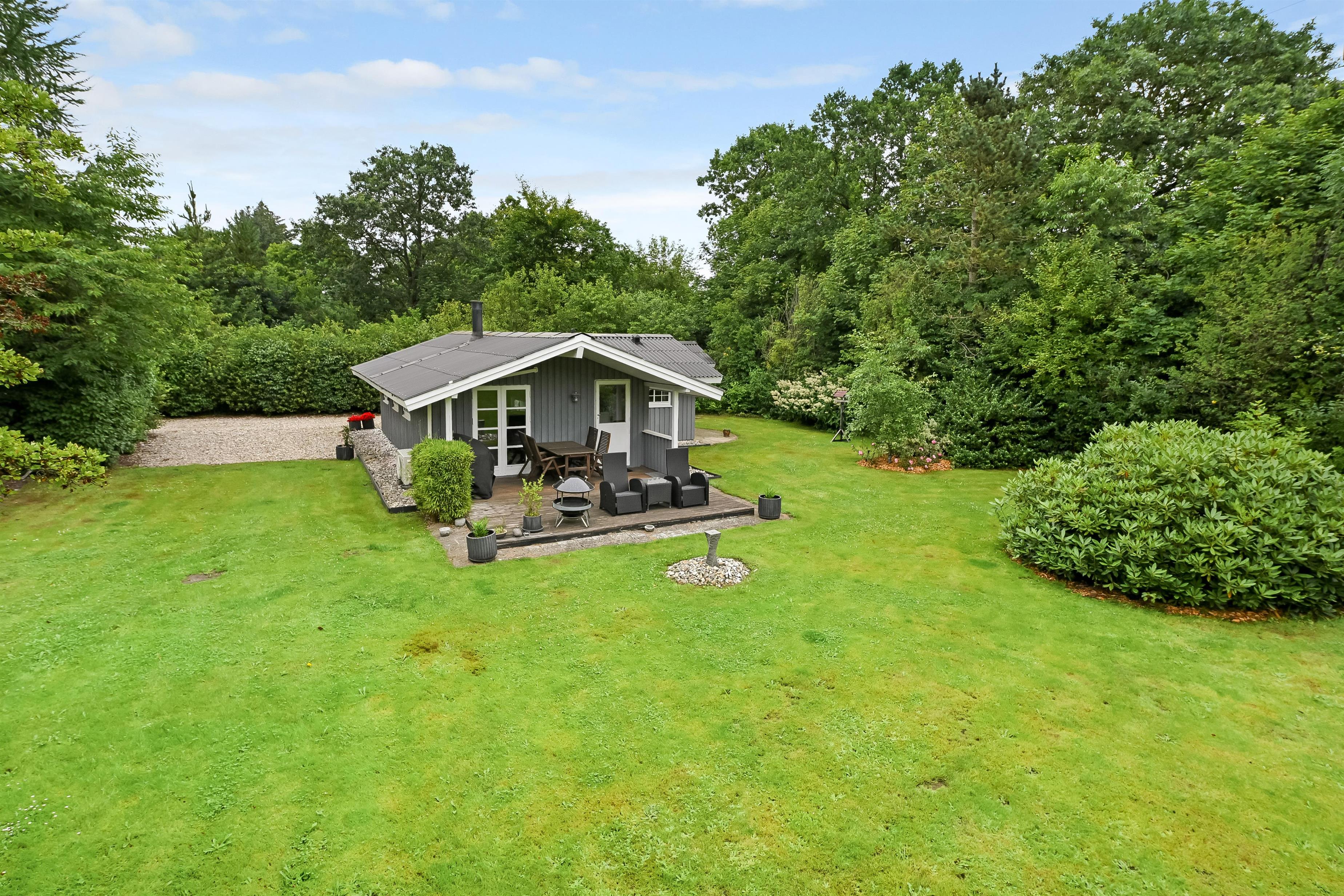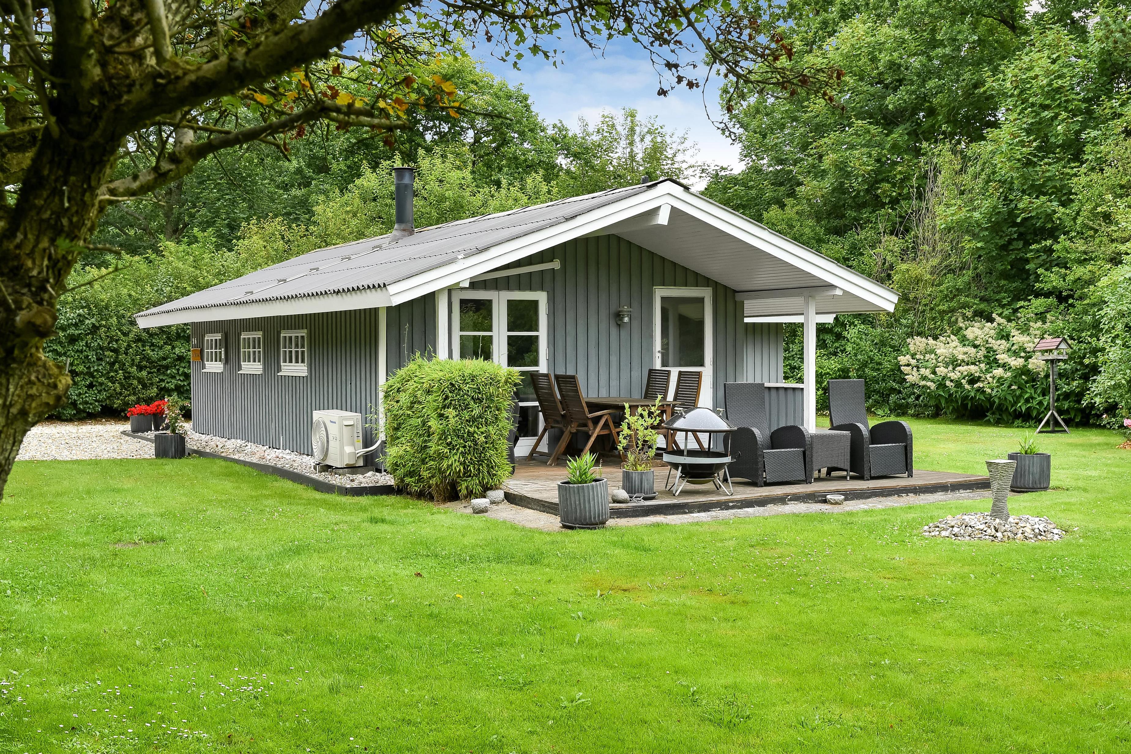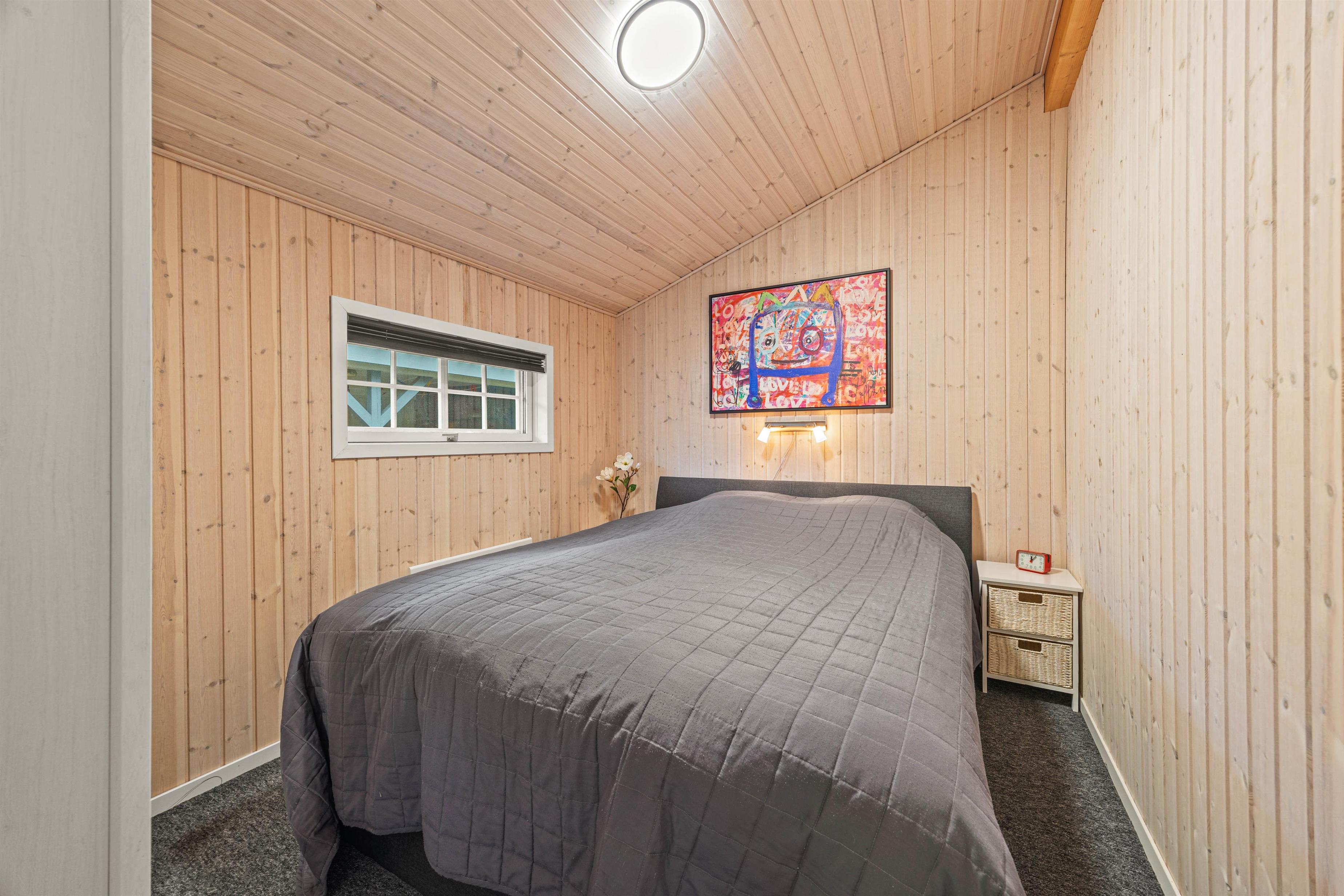Et lille dagslysbadeværelse med bruser står også til rådighed i feriehusets. Udover brændeovnen kan I varme huset op med den energibesparende varmepumpe, som hurtigt bringer ferieboligen til jeres foretrukne temperatur. Om aftenen kan I fordele jer på de to soveværelser med komfortable dobbeltsenge.