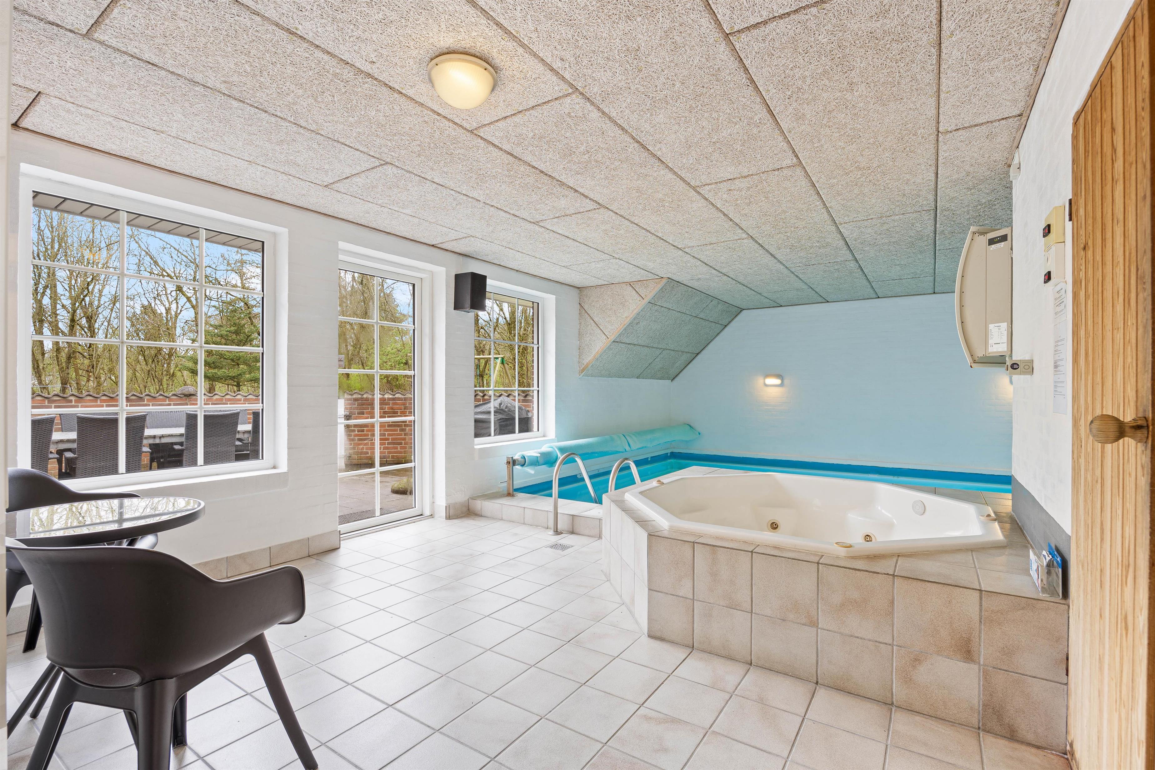 Højdepunkterne for dette dejlige feriehus er opholdsrummet, hvor stue og køkken er i åben forbindelse, og selvfølgelig poolrummet. Her er den 19 m2 store swimmingpool samt spa og sauna til afslapning. Her sætter fantasien kun grænser, og I er sikret mange dejlige stunder uanset vind og vejr. Efter en lang dag i poolen, kan I alle samles omkring det lange spisebord. Lad opvaskemaskinen klarer oprydningen, mens I slænger jer i den komfortable sofa. Pop popcornene og se en god film, mens brændeovnens varme breder sig i rummet.