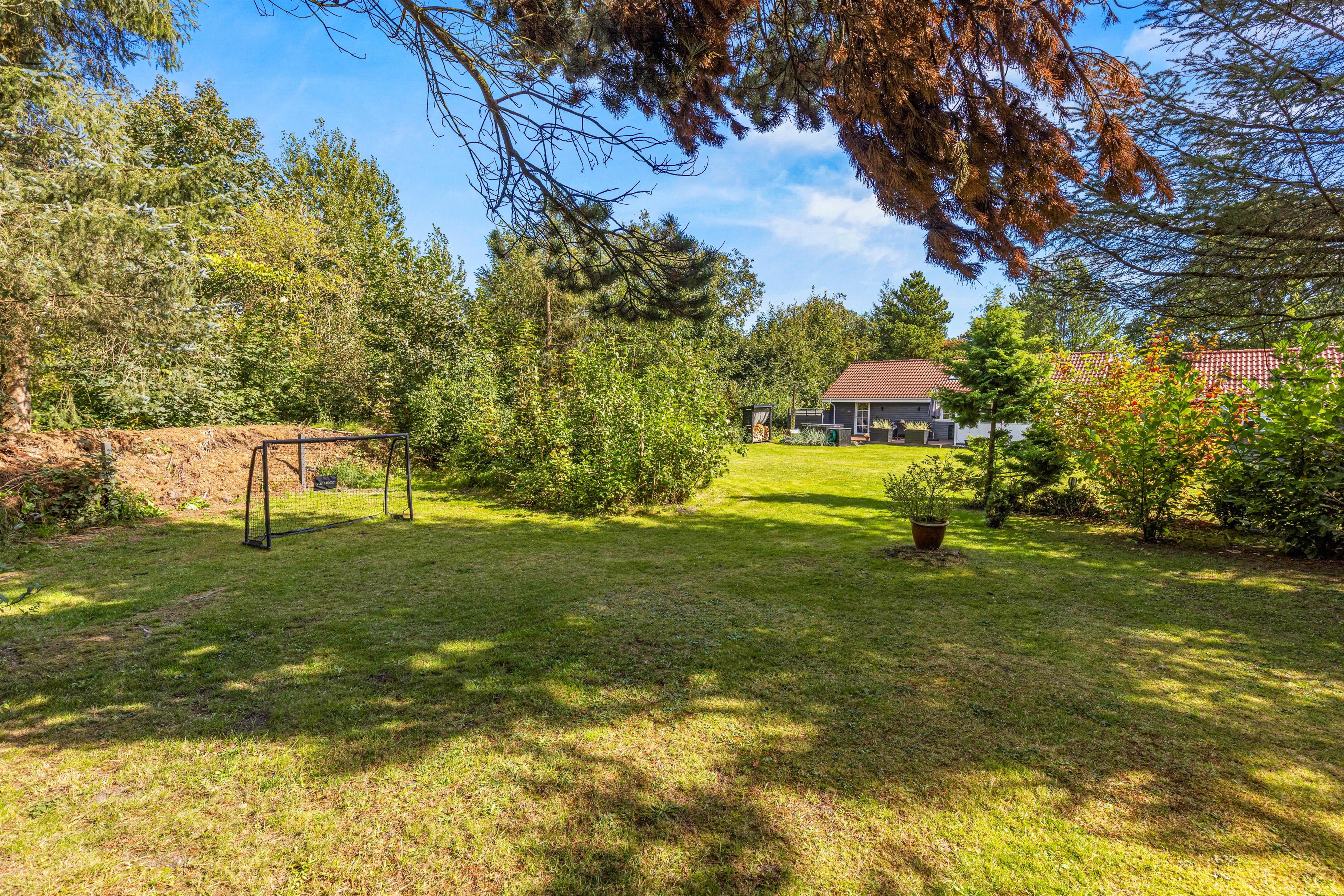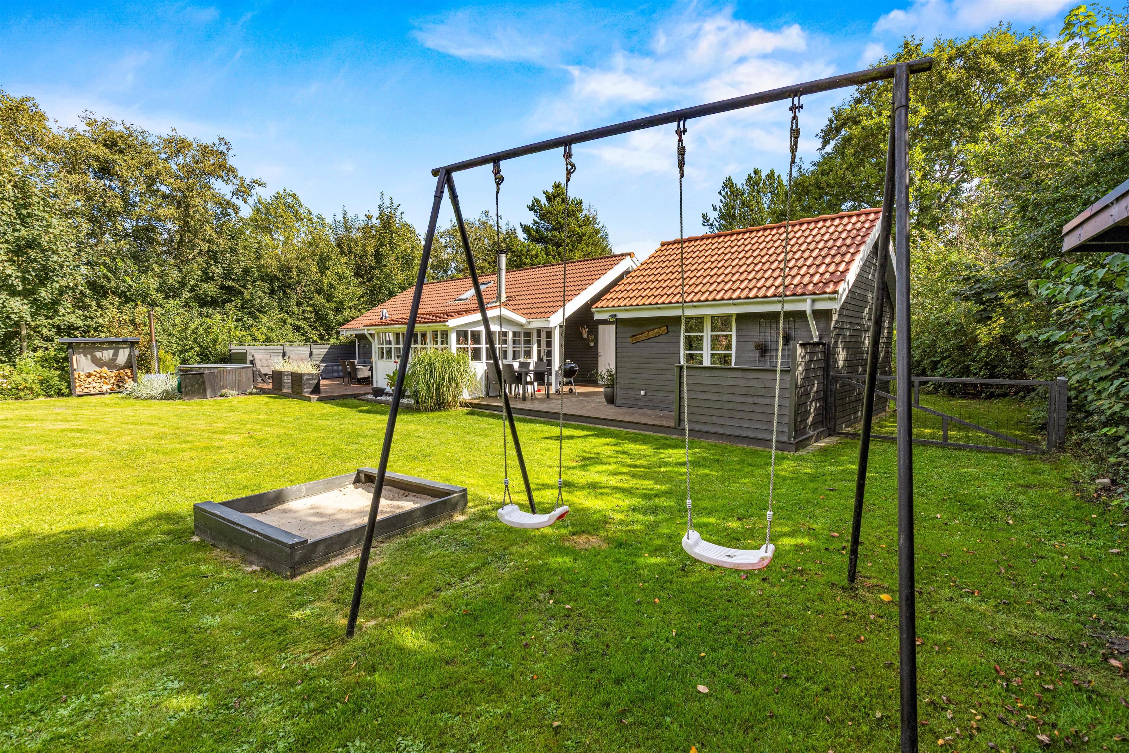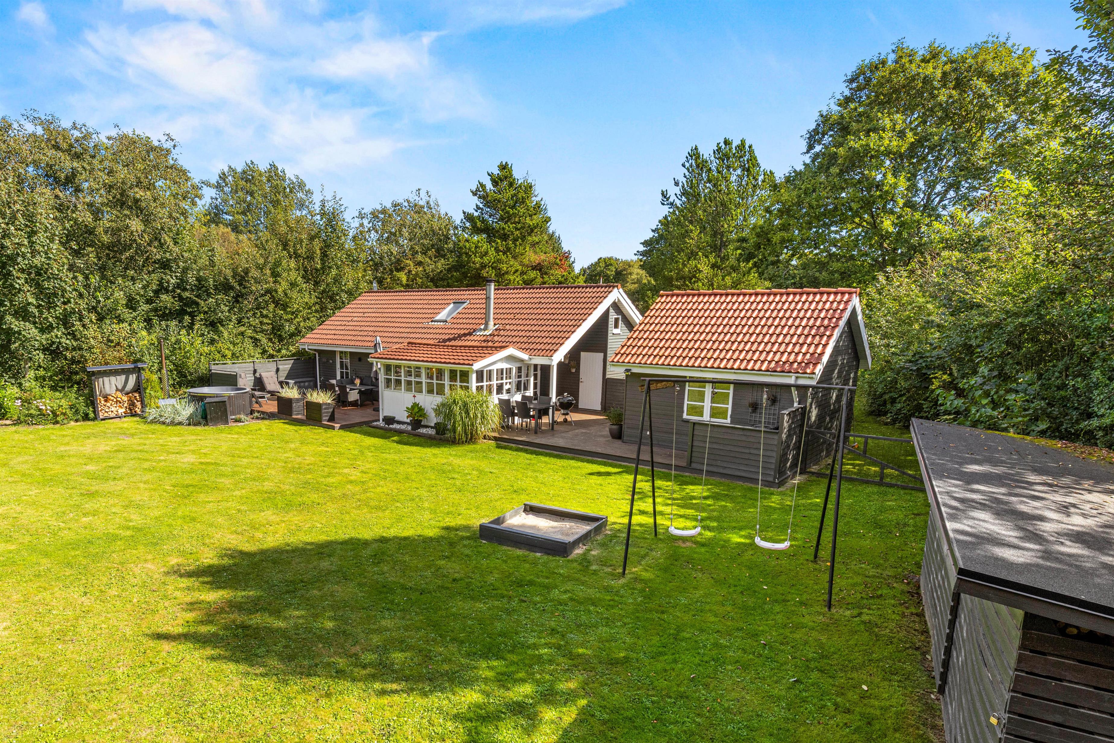 Skøn grund med legeredskaber og overdækket terrasse