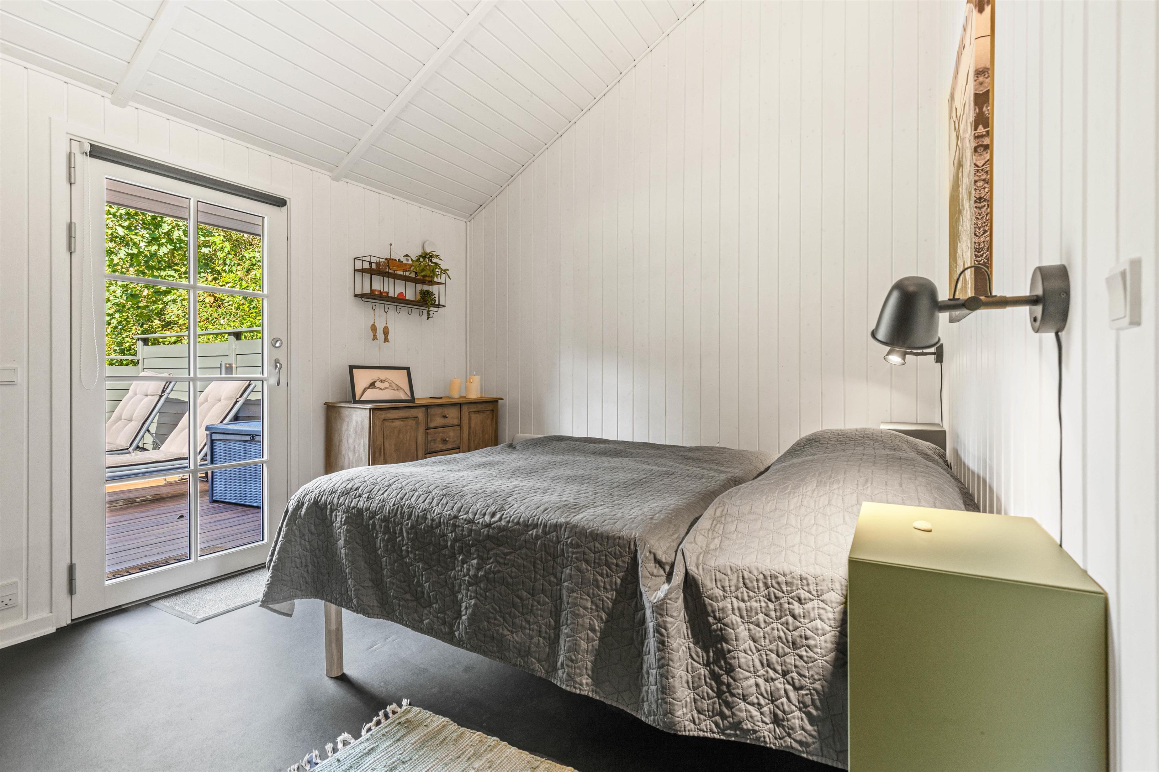Sovepladserne er fordelt på 3 soverum – 2 værelser med dobbeltsenge og 2 enkeltsenge, der befinder sig i det lille anneks. Husets badeværelse er udstyret med gulvvarme, og her har I både vaskemaskine og tørretumbler. Naturligvis er der gratis trådløst internet i sommerhuset.