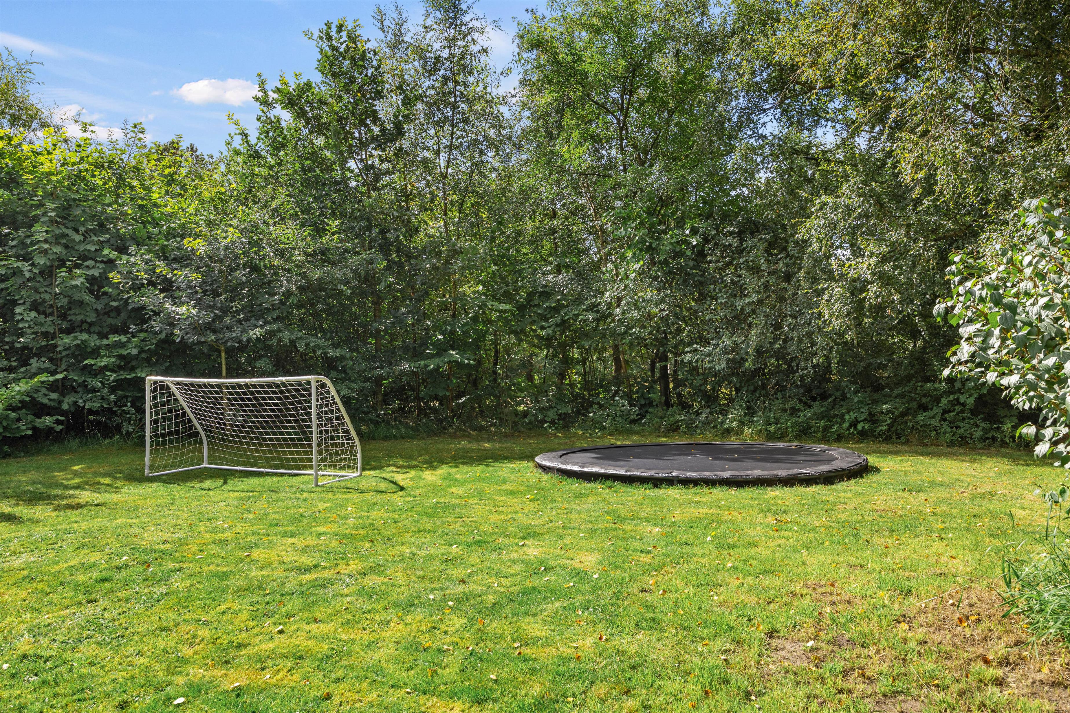 For børnene er der masser af plads til leg; de kan løbe frit på det store areal, spille bold eller udforske forskellige udendørsspil, I har medbragt. Trampolinen bliver hurtigt et populært samlingspunkt, hvor der kan hoppes og grines i timevis. Den friske luft og mulighed for samvær på terrassen gør dette uderum til det perfekte sted for afslapning og hygge med dem, I holder af.