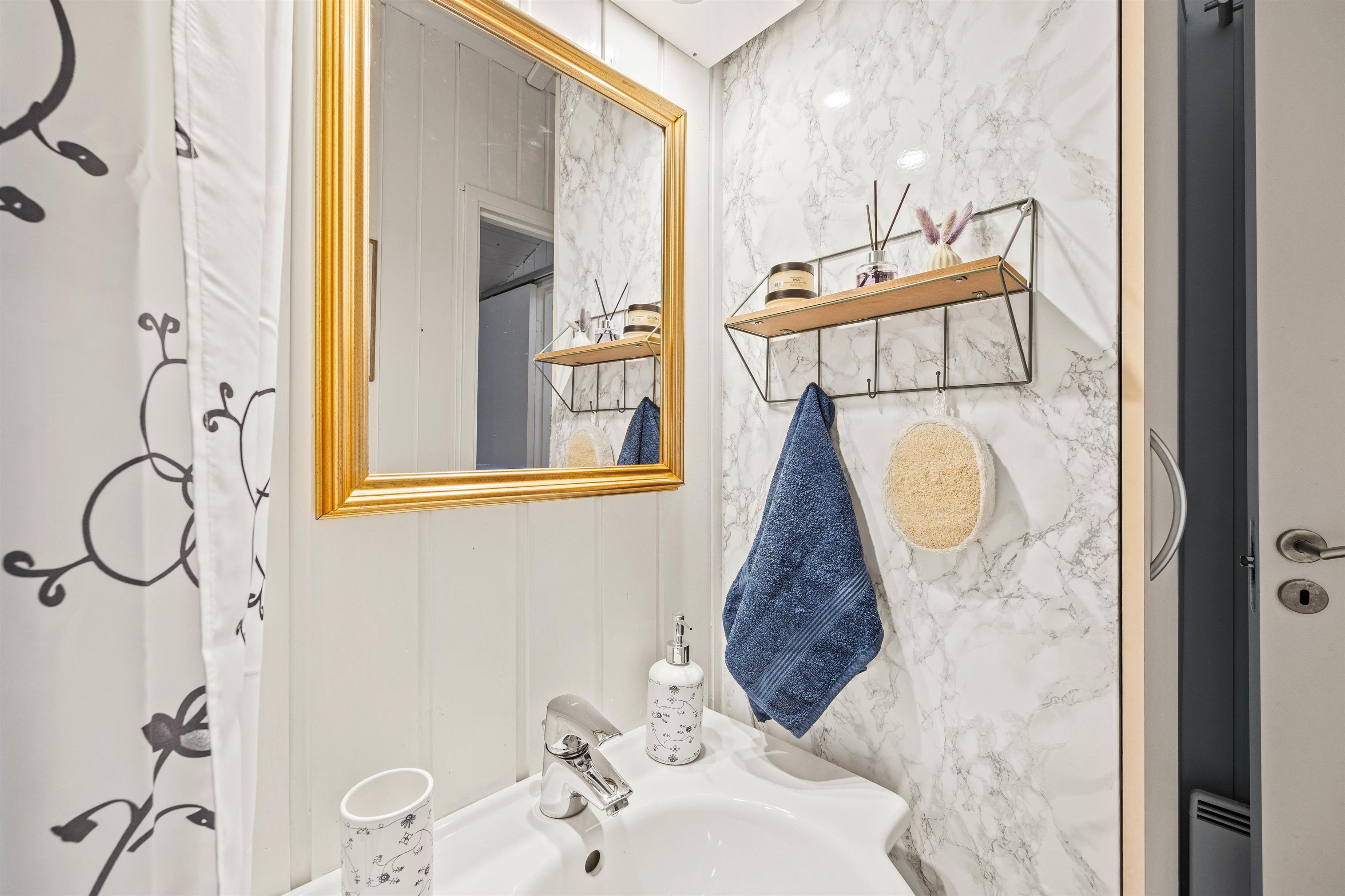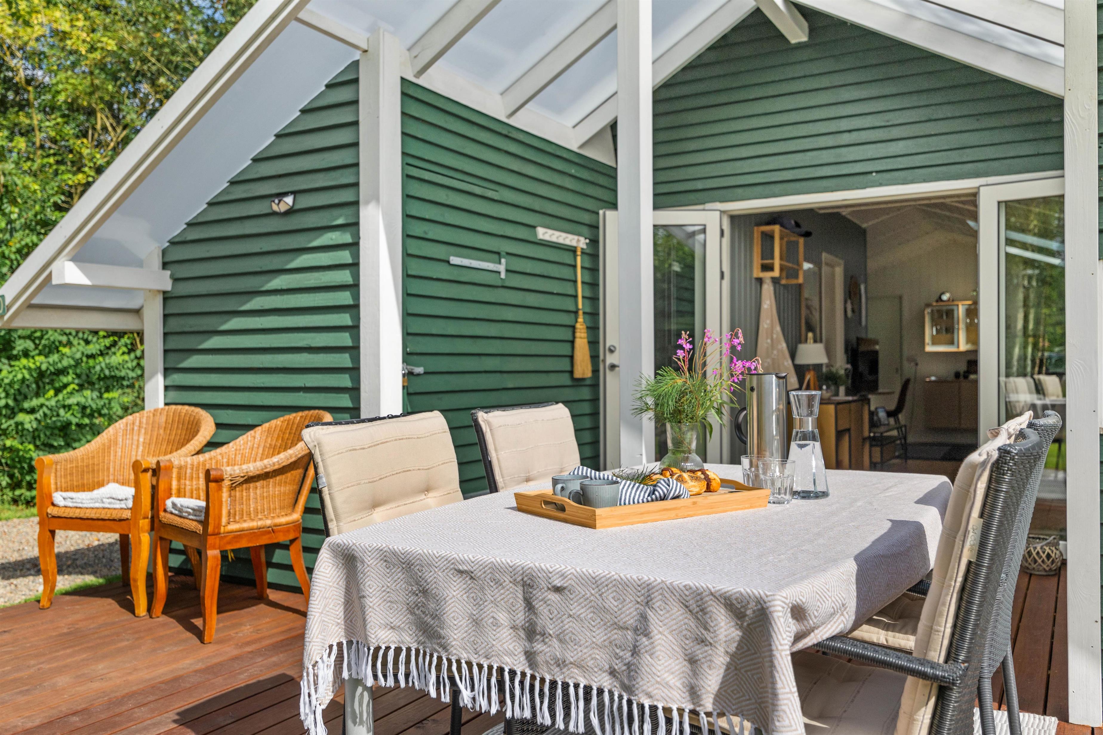 Fra stuen kan I gå direkte ud på terrassen, der delvist er overdækket, så I kan sidde udenfor, selv hvis det skulle dryppe lidt, eller gå i skygge, når solen bager ned. Den indbydende træterrasse er udstyret med komfortable havemøbler og solvogne, der opfordrer til afslappende timer med en god bog eller et forfriskende glas vin i hånden. Mens I nyder udsigten til den smukke have, kan I lade grillkullene blive klar til en lækker middag under åben himmel.