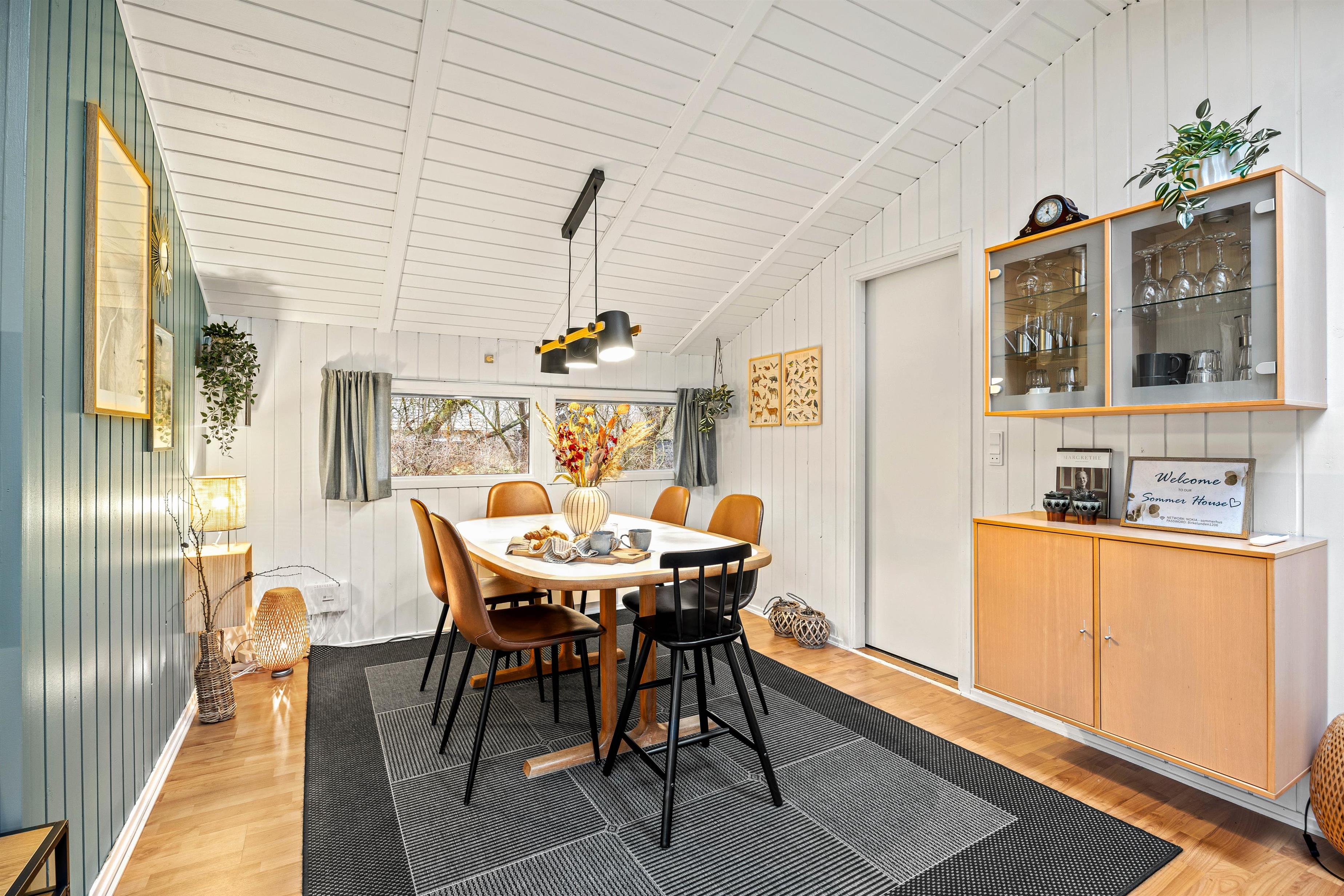 Sommerhuset, som gennemgik en stor renovering i 2023, er 64 m2 fordelt på blandt andet 2 værelser, hvoraf det ene er indrettet med dobbeltseng, og det andet med både dobbeltseng og en enkeltseng. Det er oplagt til børnefamilien, eller hvis I er et vennepar, der gerne holder ferie sammen.