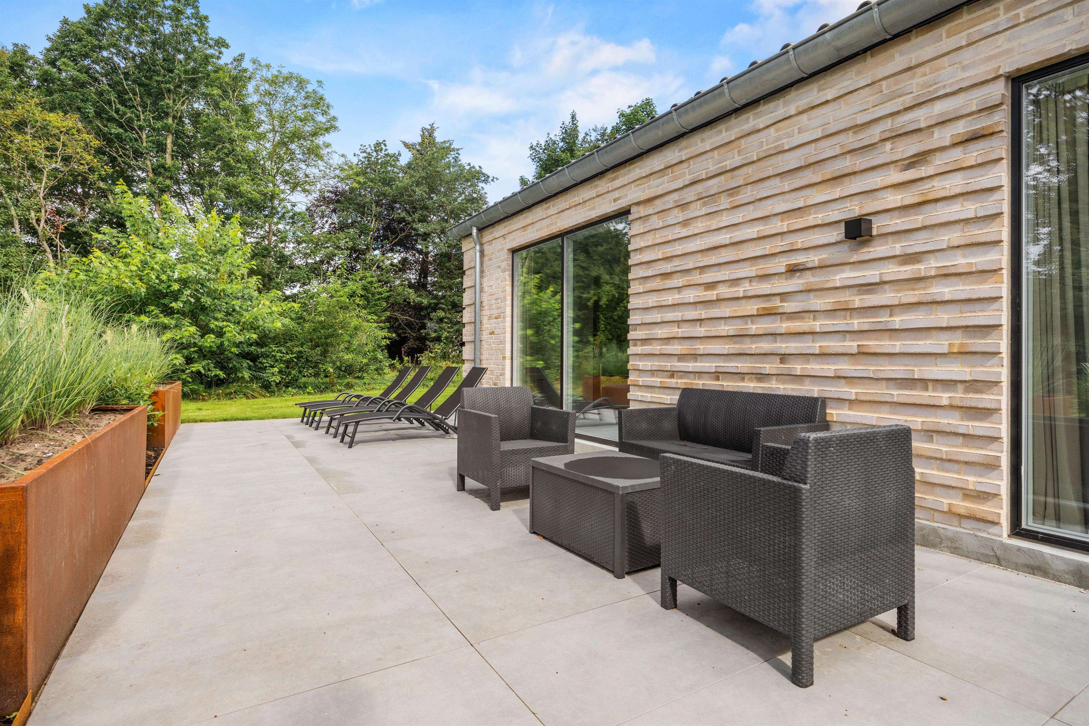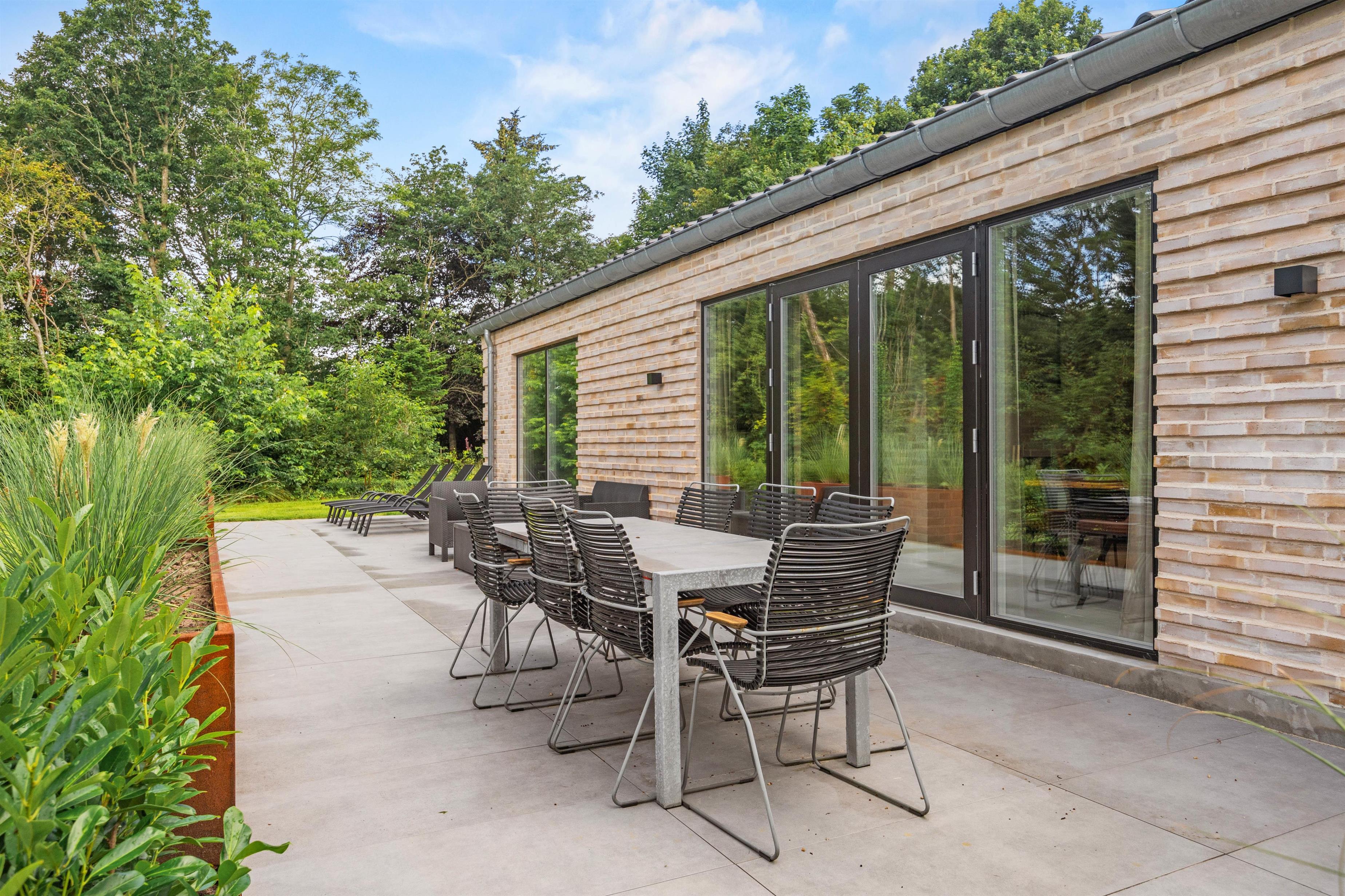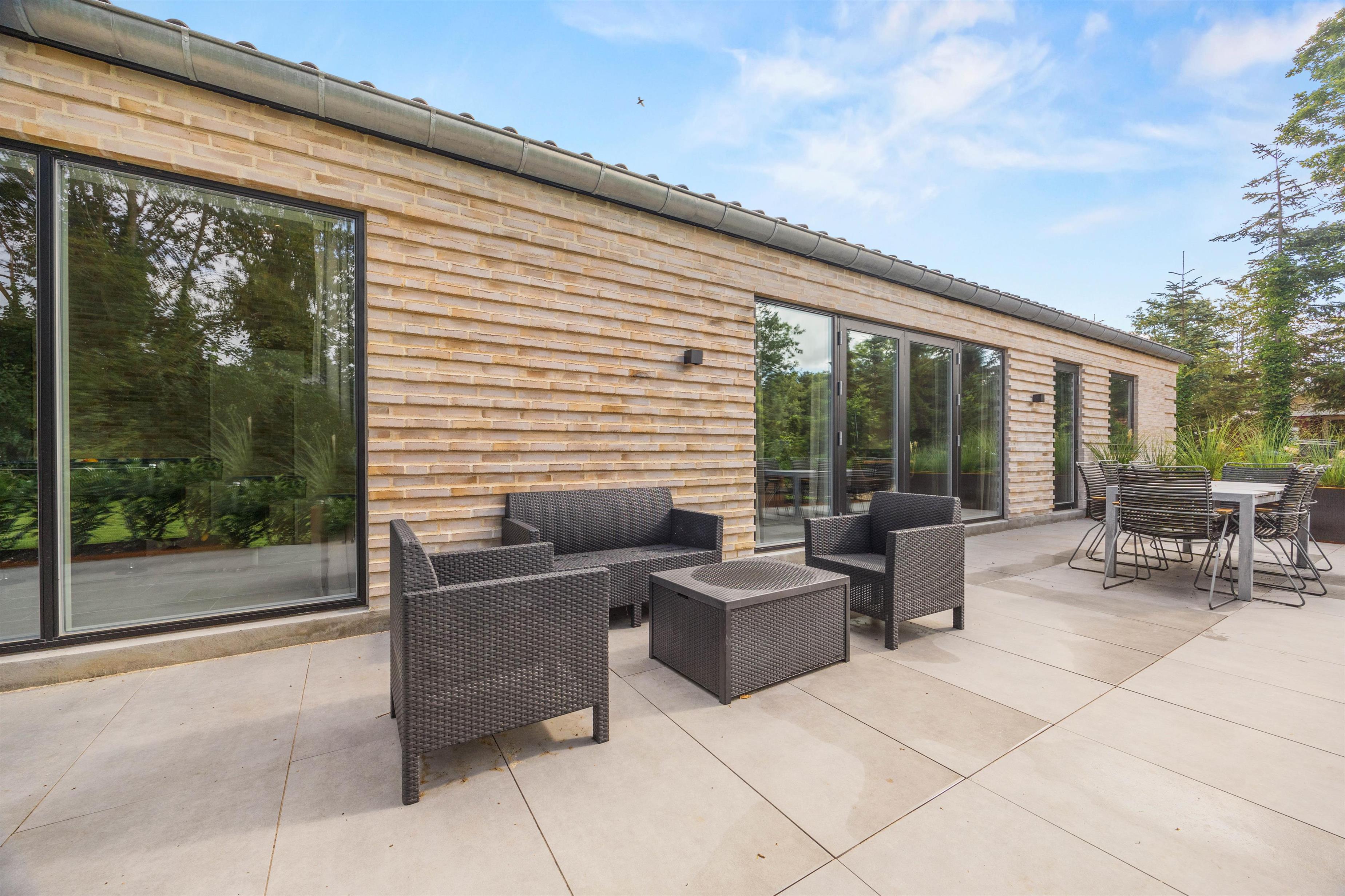 Sommerhusets udeområde er lige så indbydende som dets indre, med en rummelig åben terrasse, der giver jer mulighed for at nyde udendørs livet fuldt ud. Her kan I rykke ud og nyde solens stråler eller gå i gang med at tilberede måltider på grillen og nyde dem under åben himmel med familie og venner.