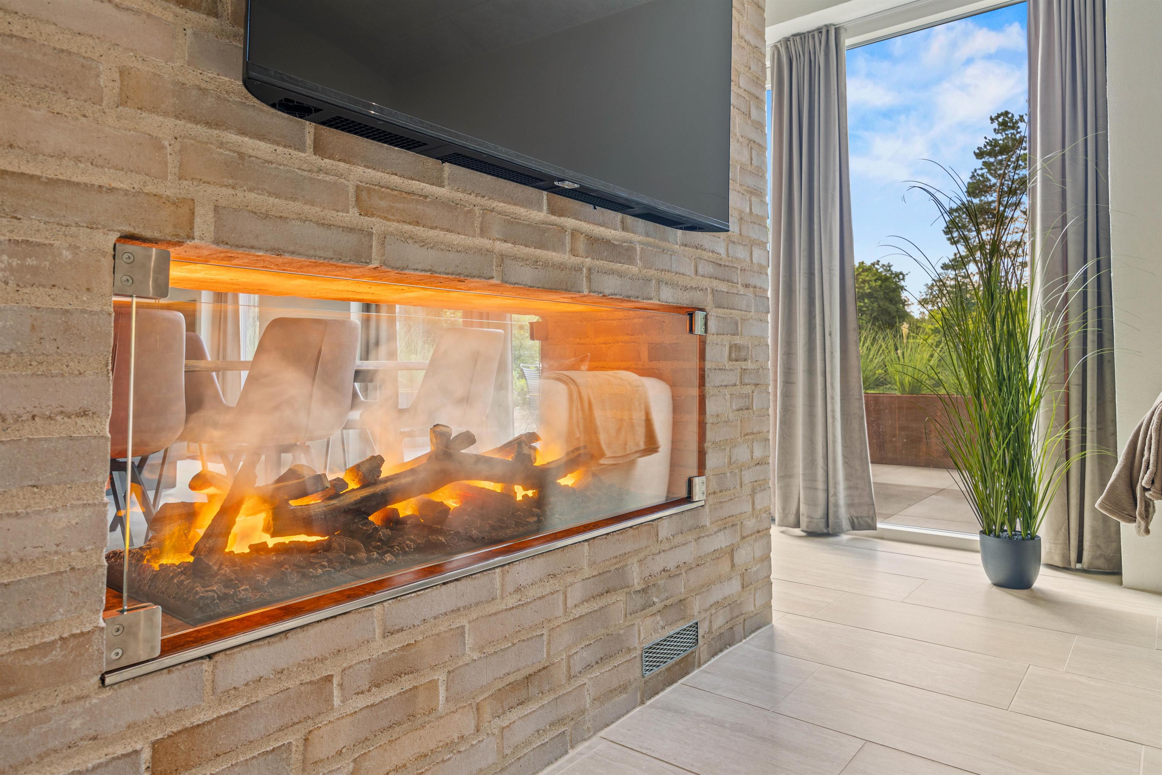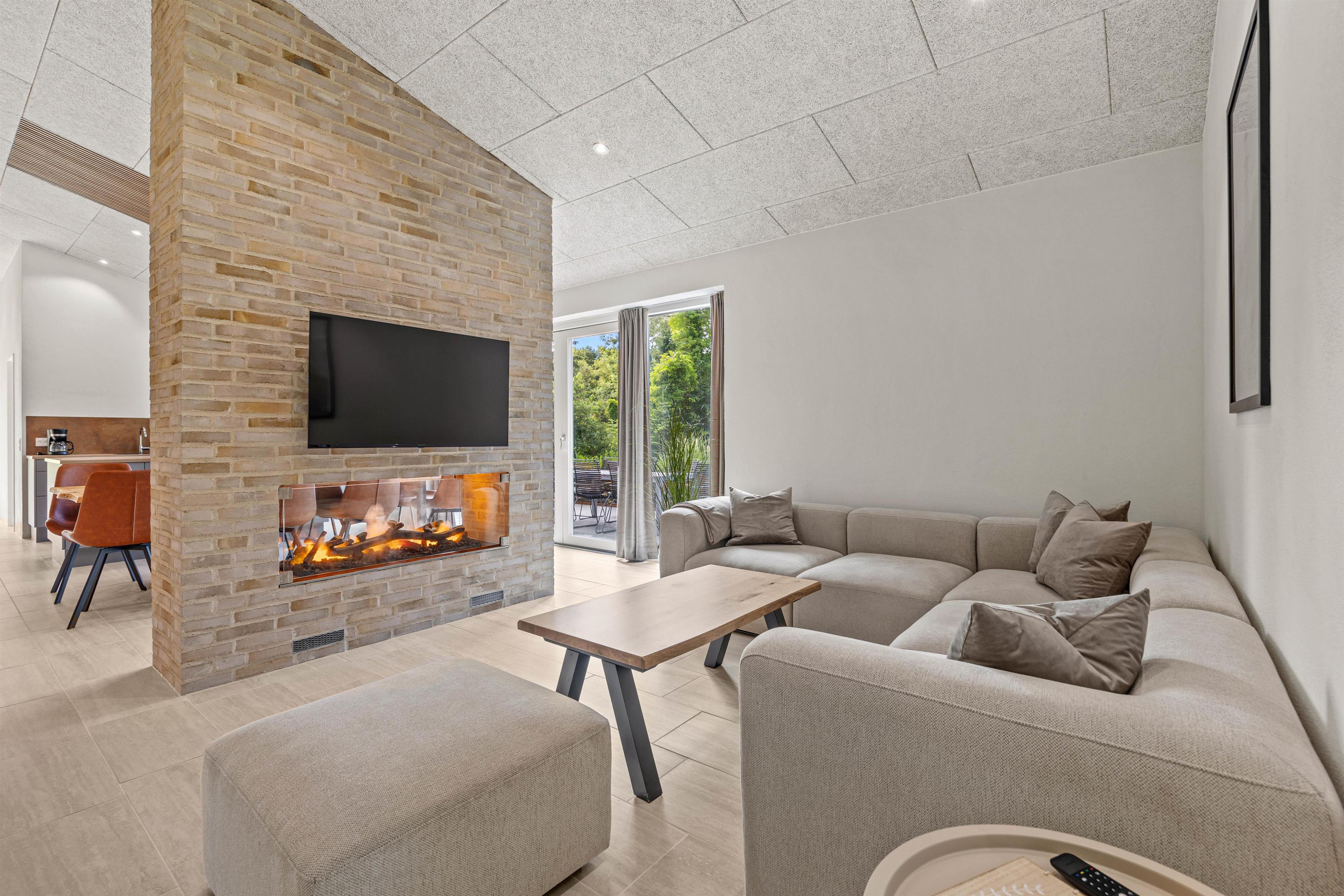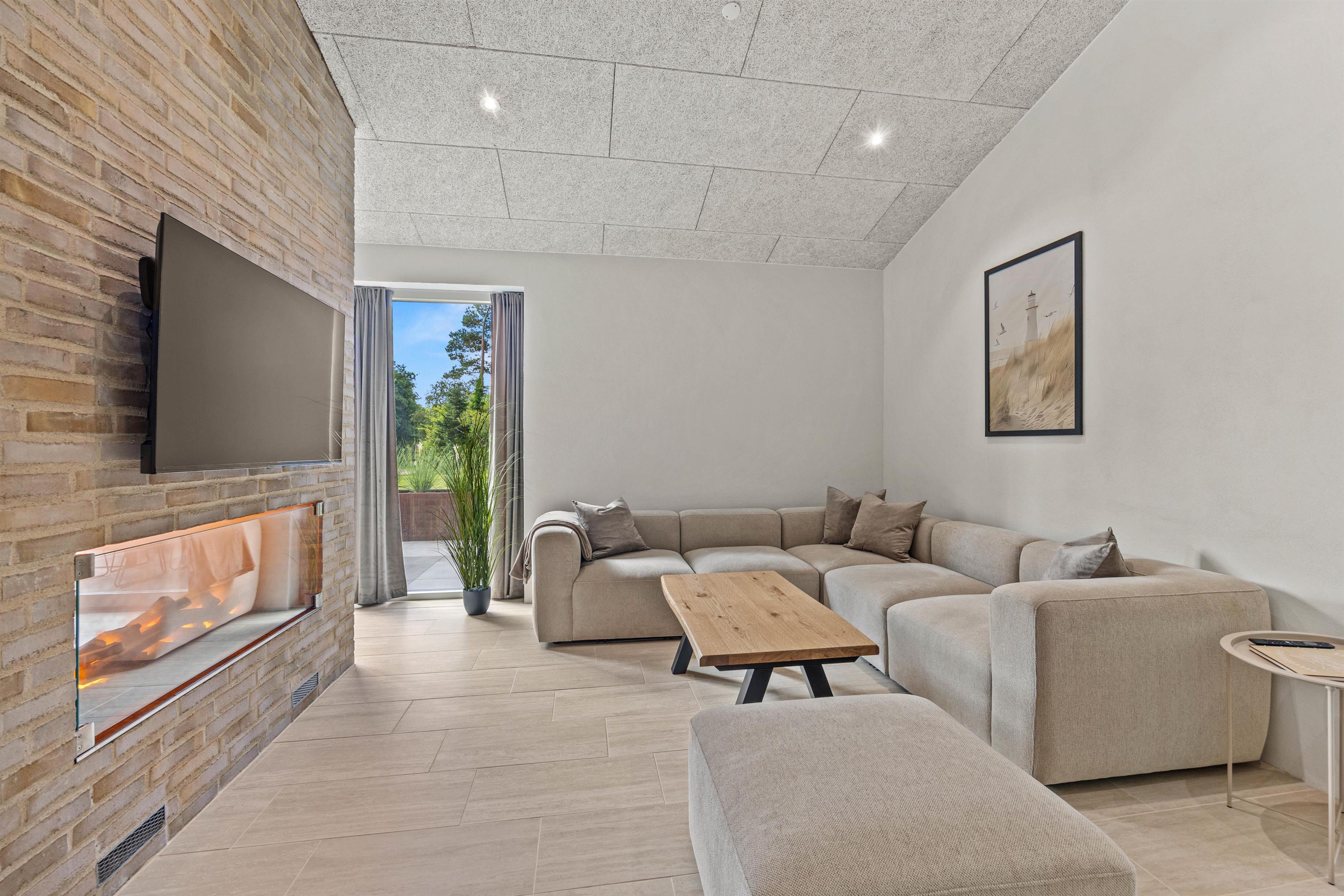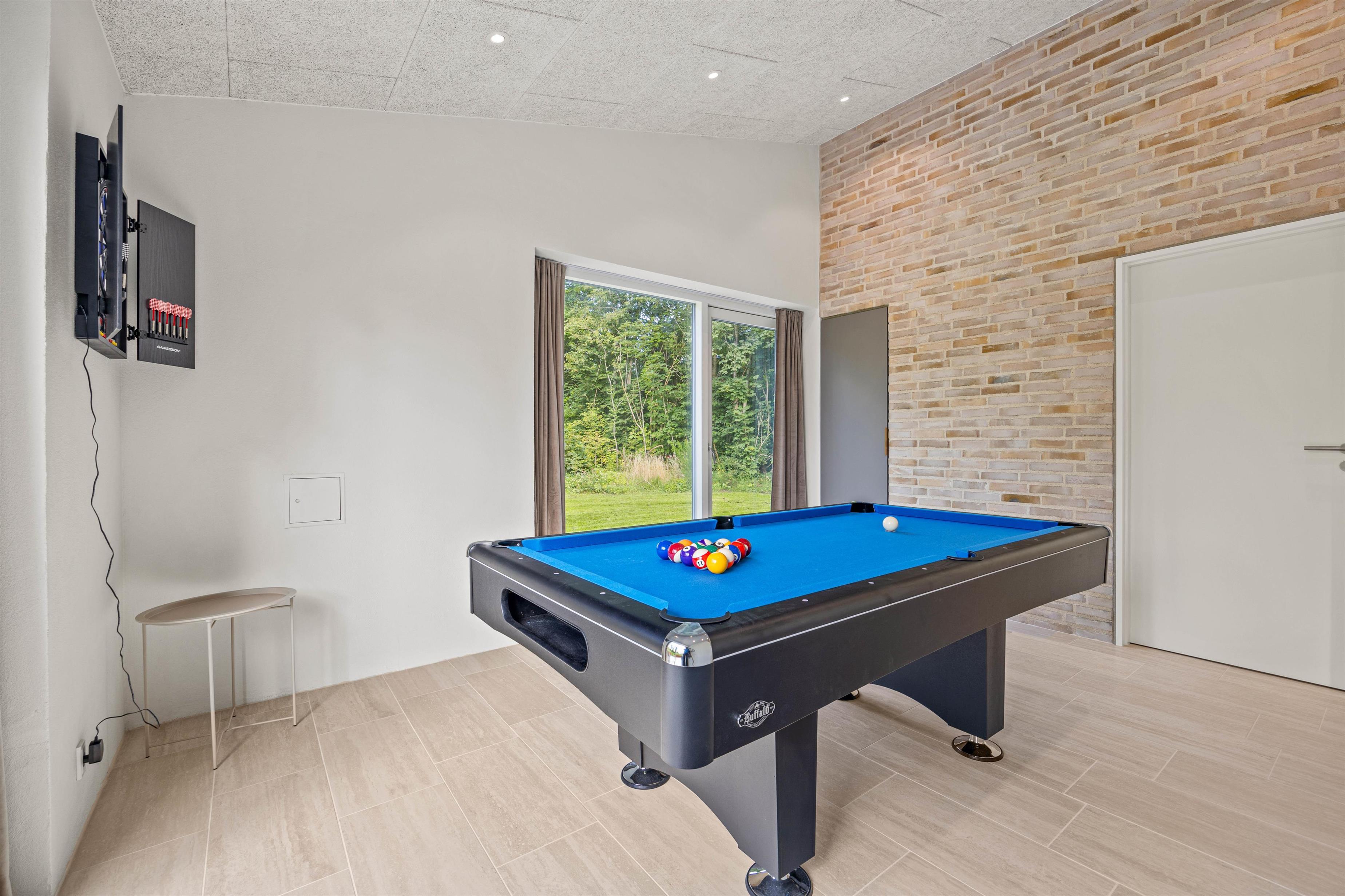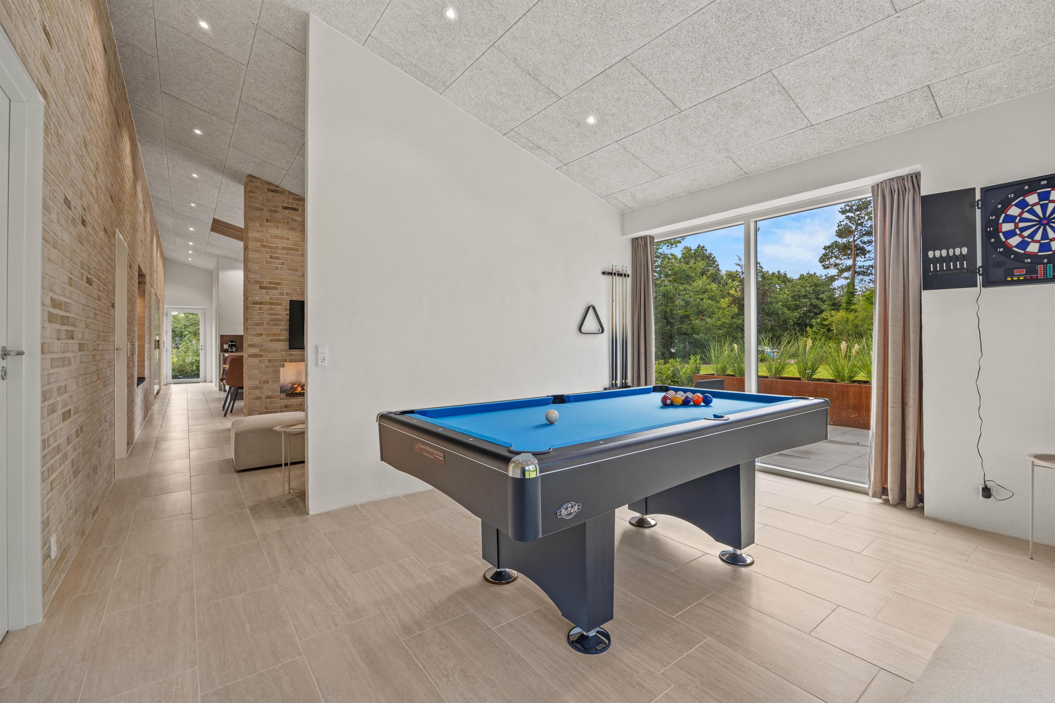 Efter middagen kan I slappe af i de elegante og komfortable møbler, mens flammerne fra den knitrende el-pejs skaber en hyggelig stemning. Hvis I trænger til lidt sjov konkurrence, kan I udfordre hinanden i poolbordet i det smagfuldt indrettede aktivitetsrum – underholdning for alle aldre er garanteret.