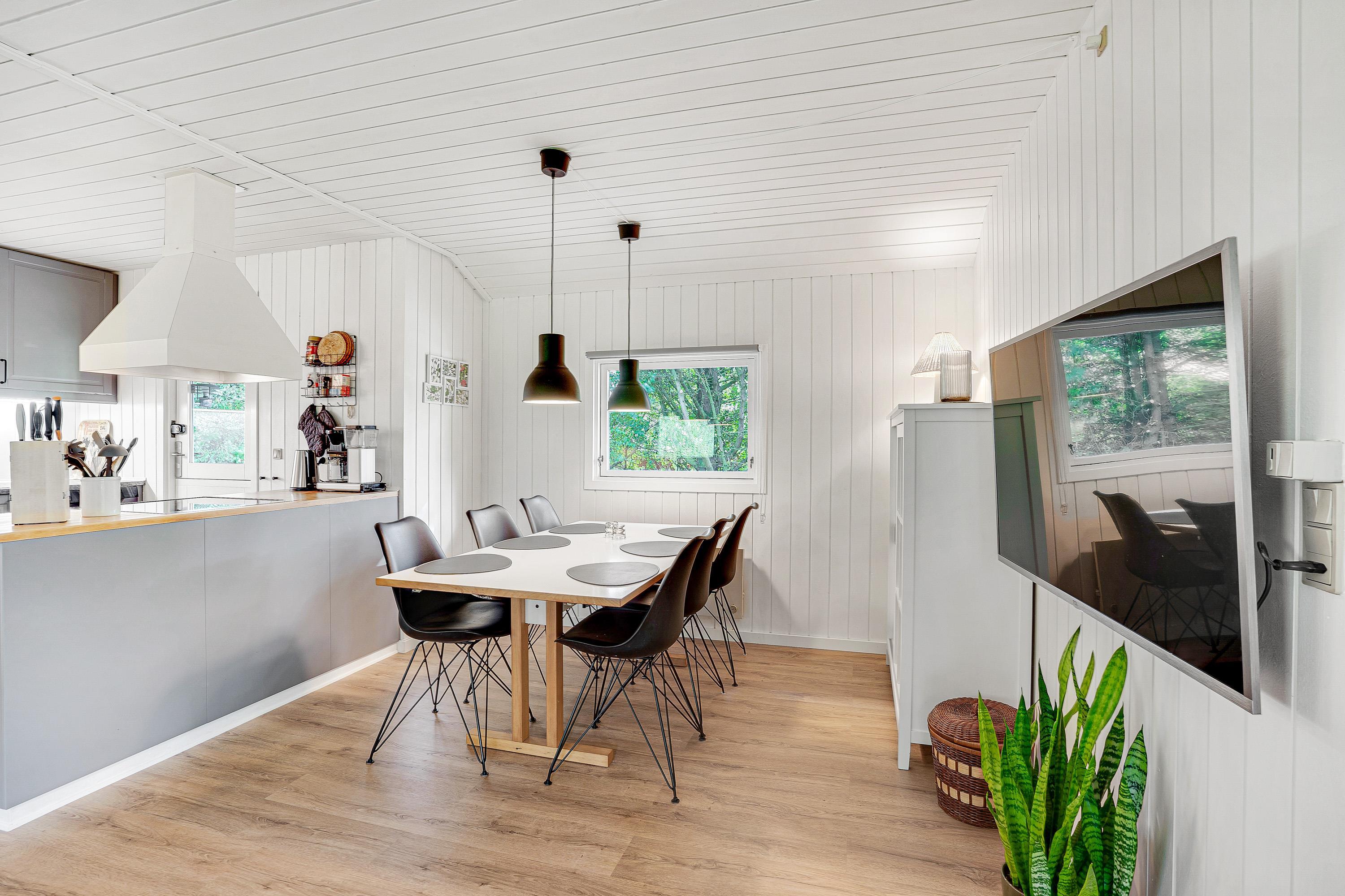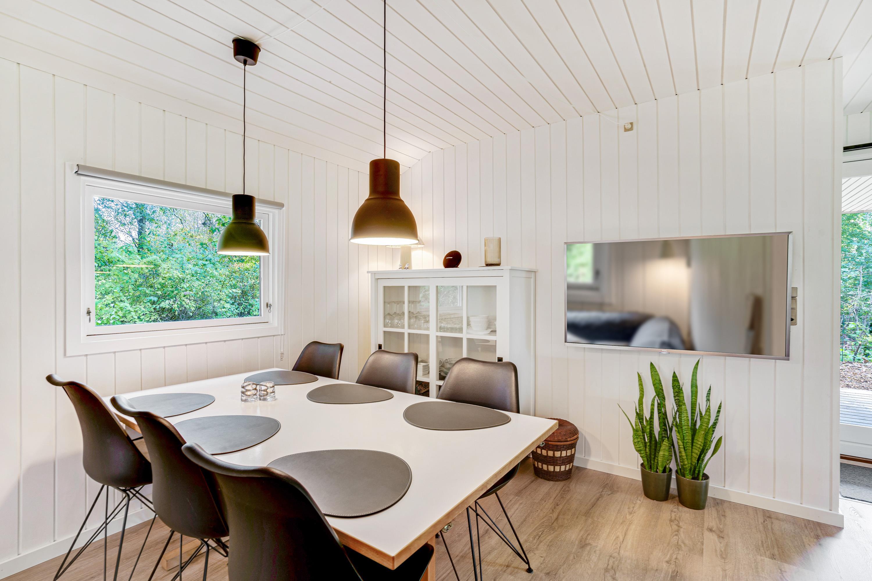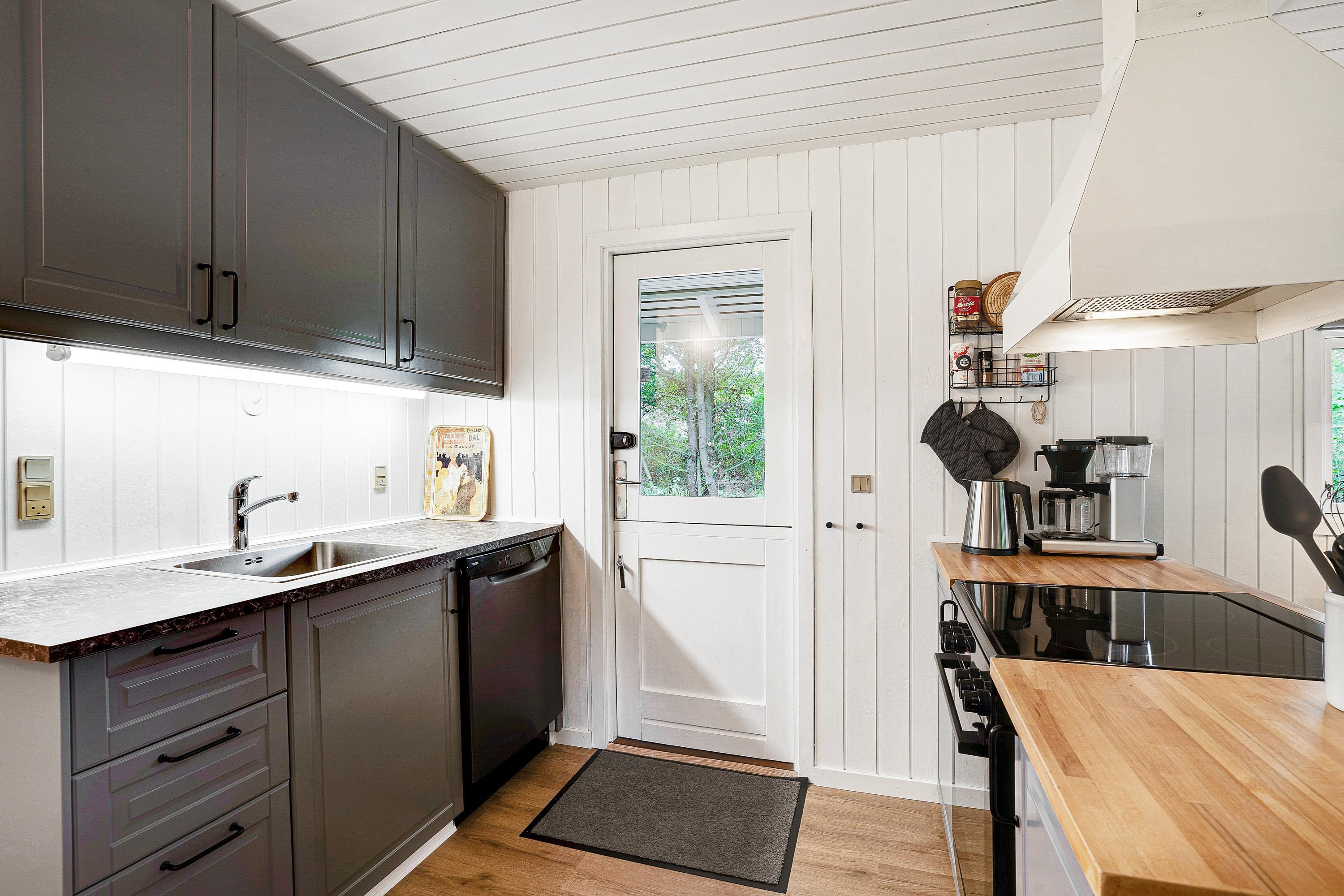 Den åbne planløsning kombinerer stue og spiseområde, hvor familien kan samles omkring bordet til måltider og brætspil. Køkkenet er fuldt udstyret med alle moderne faciliteter, herunder en opvaskemaskine, der gør madlavningen til en fornøjelse. Stuen er centrum for huset med dens varme brændeovn, som indbyder til hyggelige aftener på sofaen med en god bog eller en film.