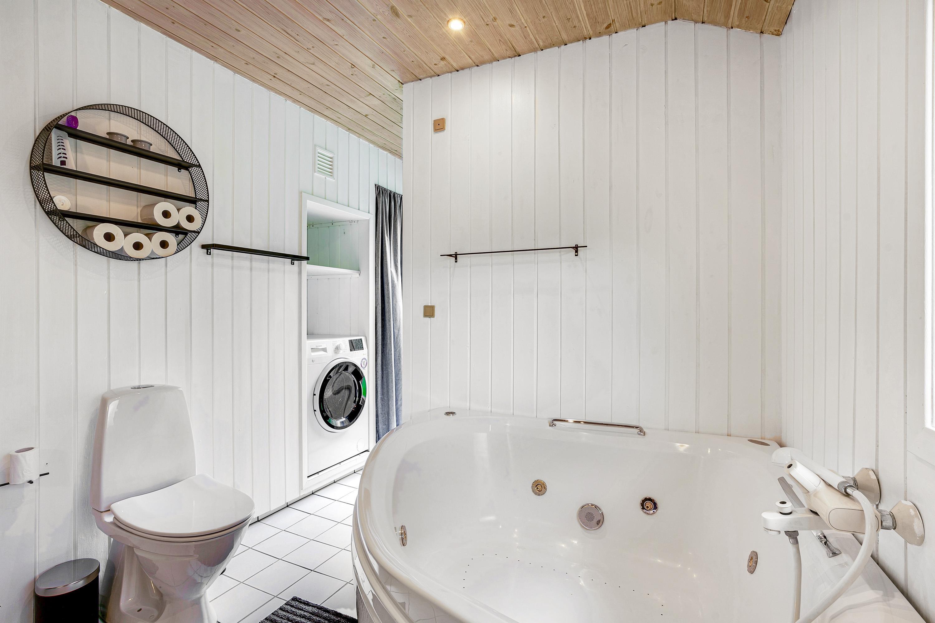 Huset indeholder også et lækkert badeværelse med både sauna og tømmespa, som sikrer, at I kan forkæle jer selv efter dagens eventyr.