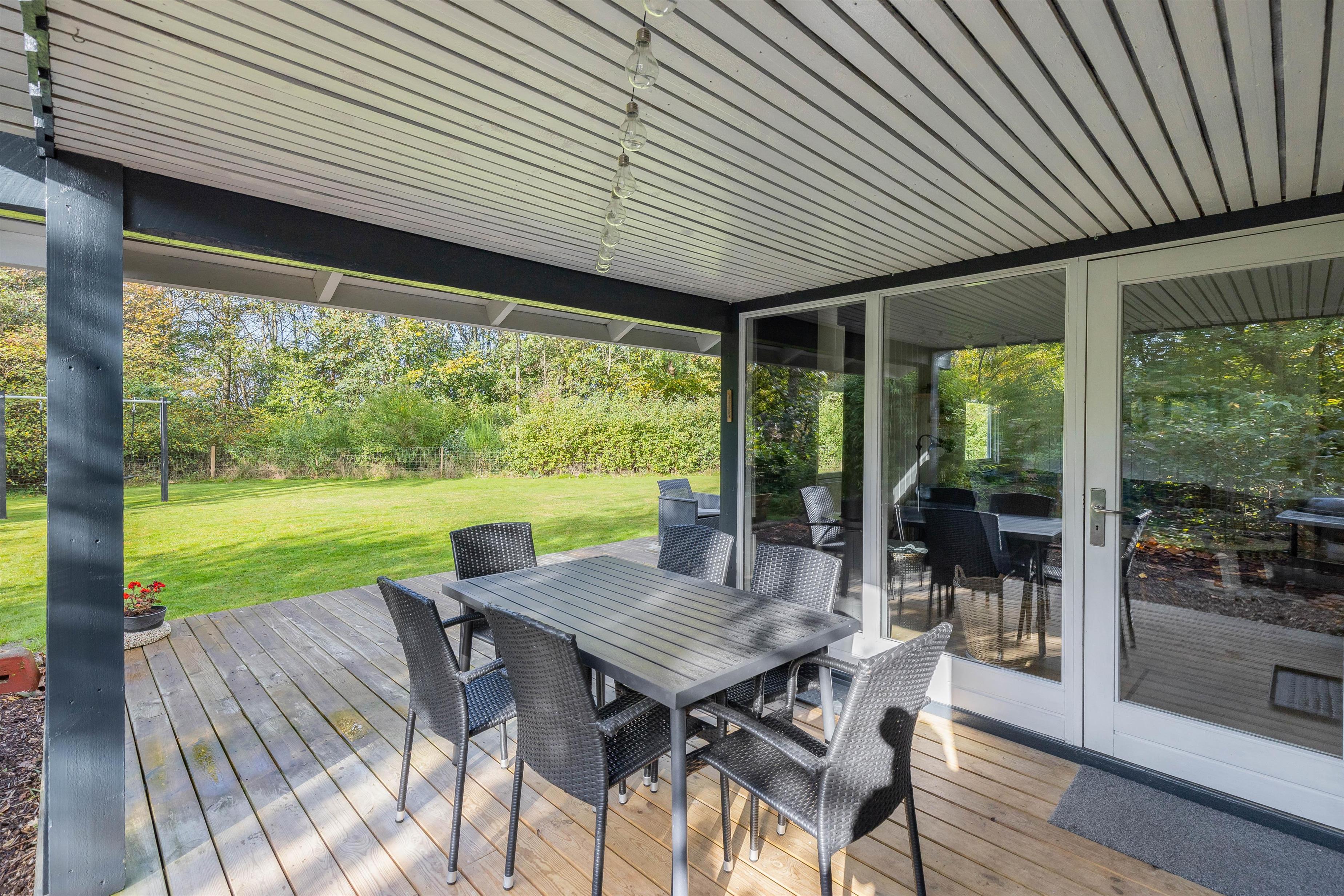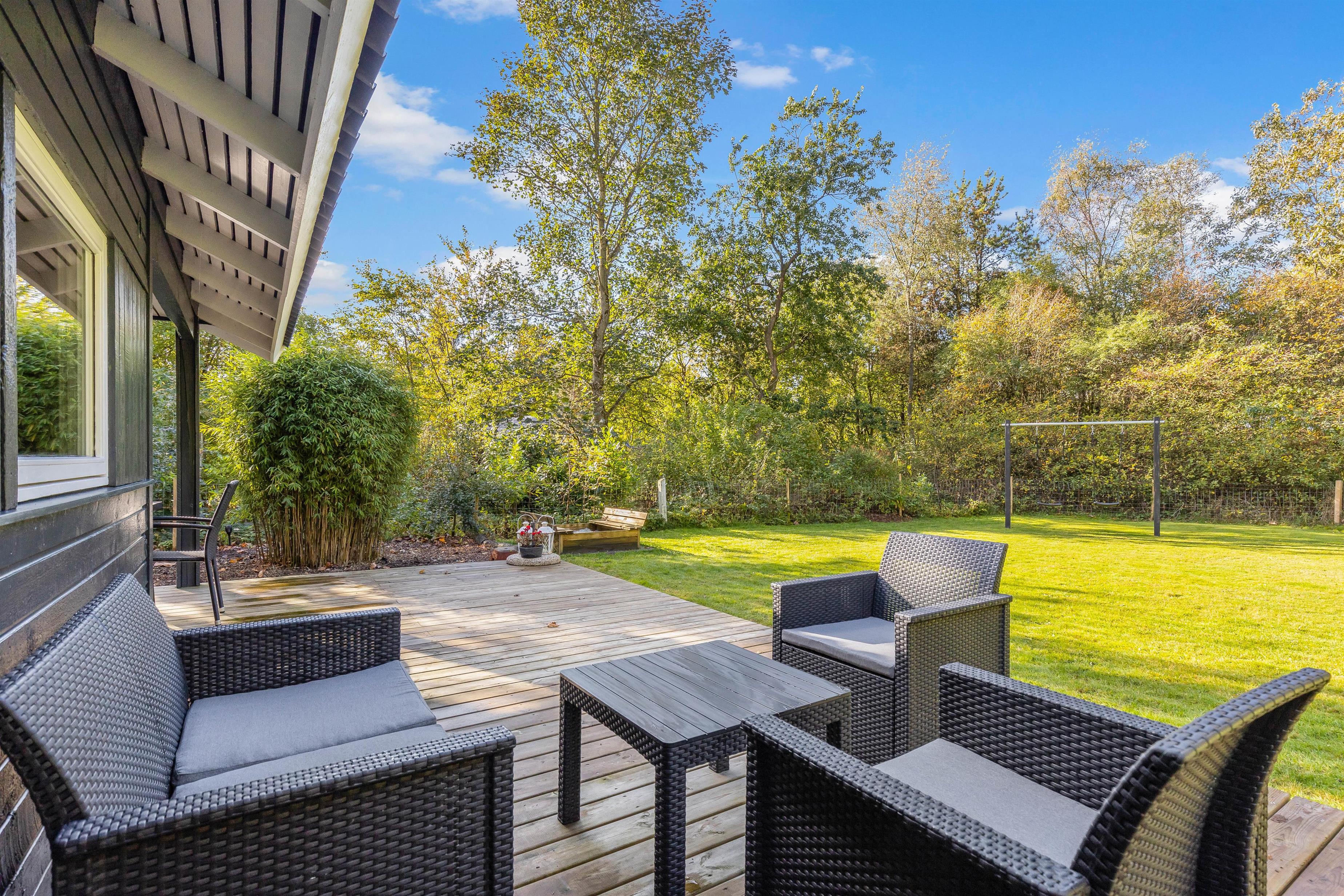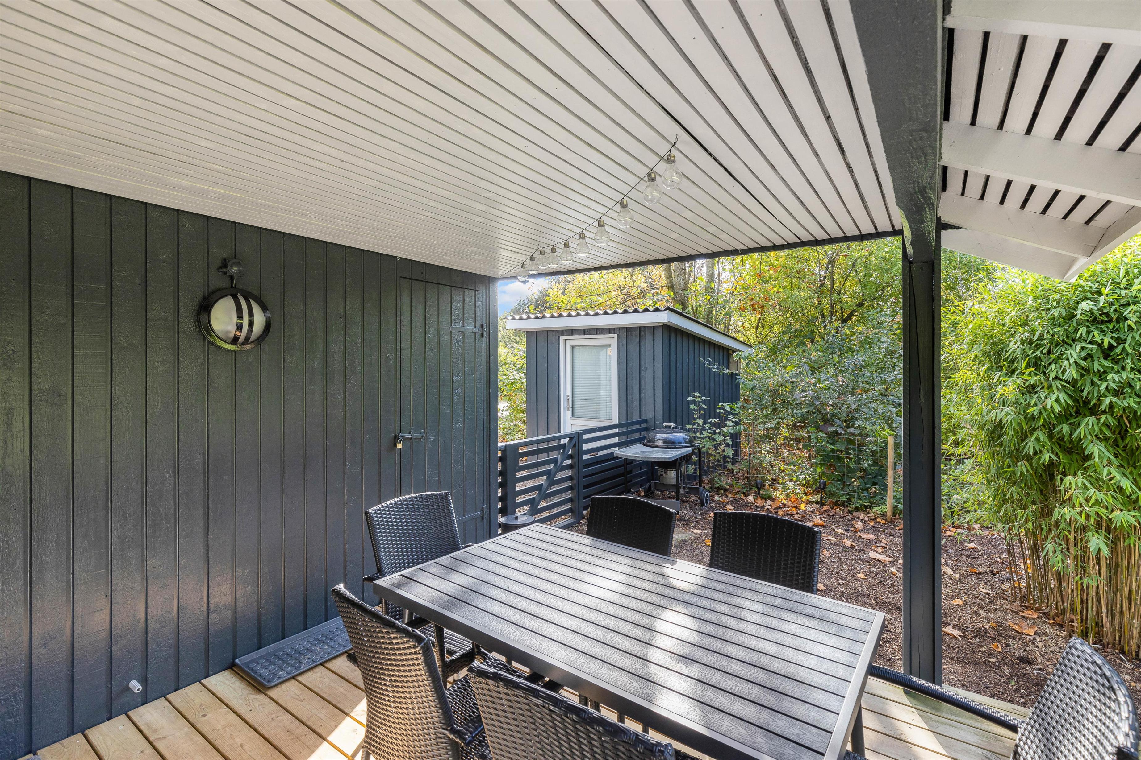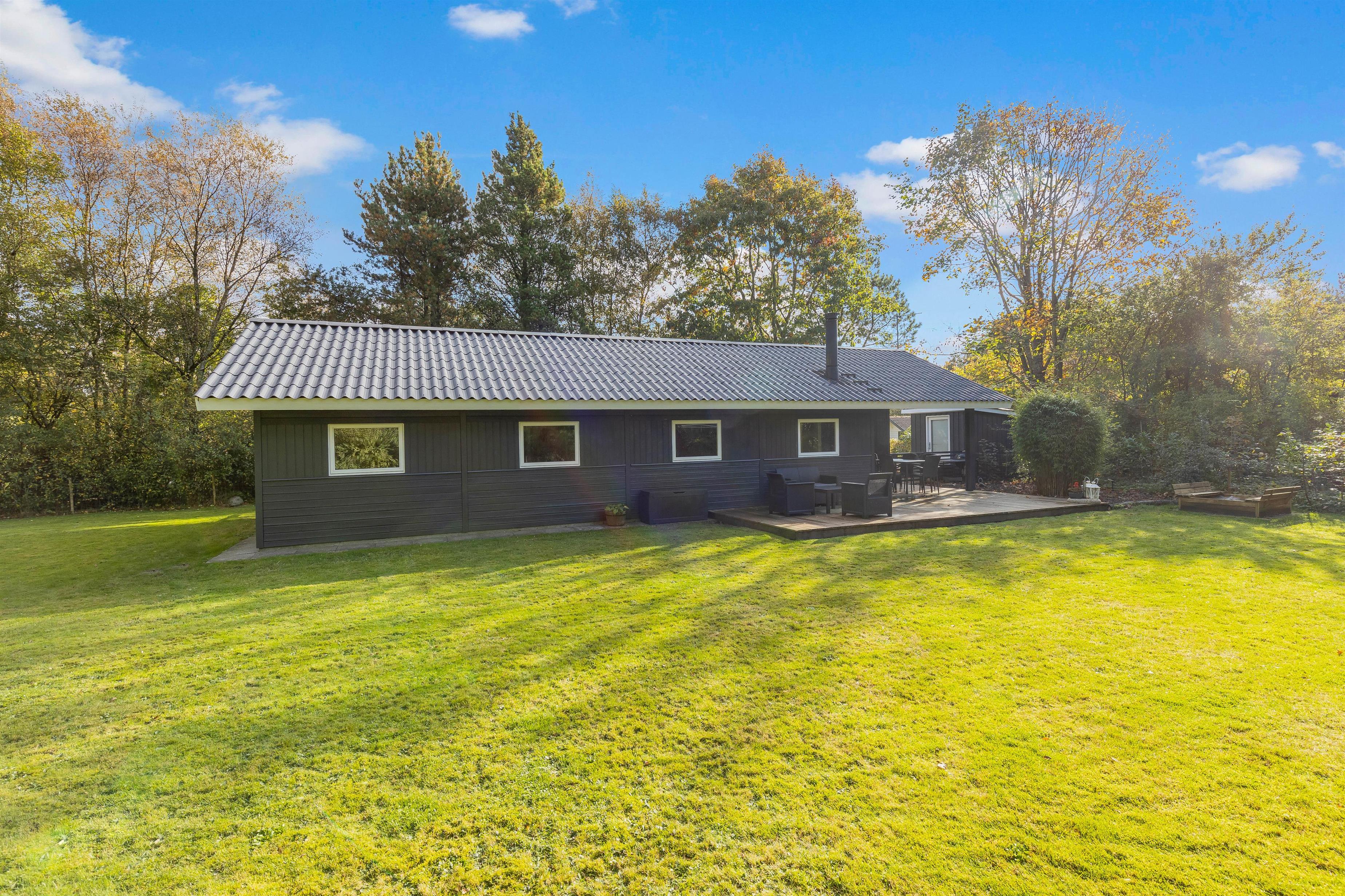Husets terrasse er delvist overdækket og udstyret med grill, havemøbler og liggestole. Så uanset om I helst opholder jer i den brændende sol, eller trækker jer tilbage i skyggen, er der plads til det her. Den lækre frokost eller middag kan tilberedes på grillen i sommerhuset, og nydes i shelteren mens I lytter til fuglenes kvidren.