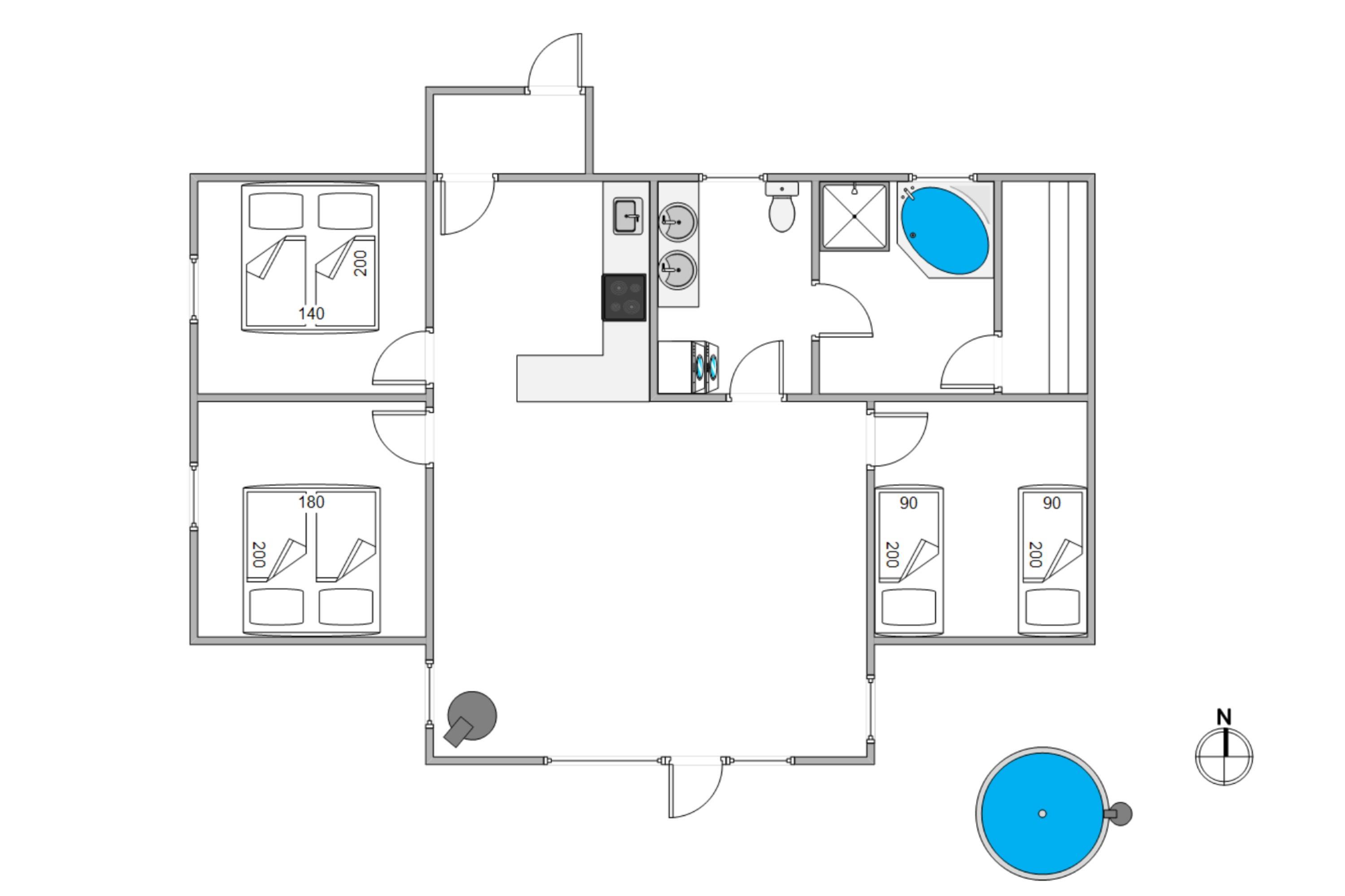 På sommerhusets badeværelse står den skønne spa klar til at forkæle jer med afslappende stunder i det dejlige, boblende vand. Desuden byder sommerhuset på en skøn sauna, hvor I kan blive varmet godt igennem. Har I været på en frisk gåtur i området eller været en tur i Vesterhavet, er det skønt med en efterfølgende tur i saunaen, så I kan få varmen igen.