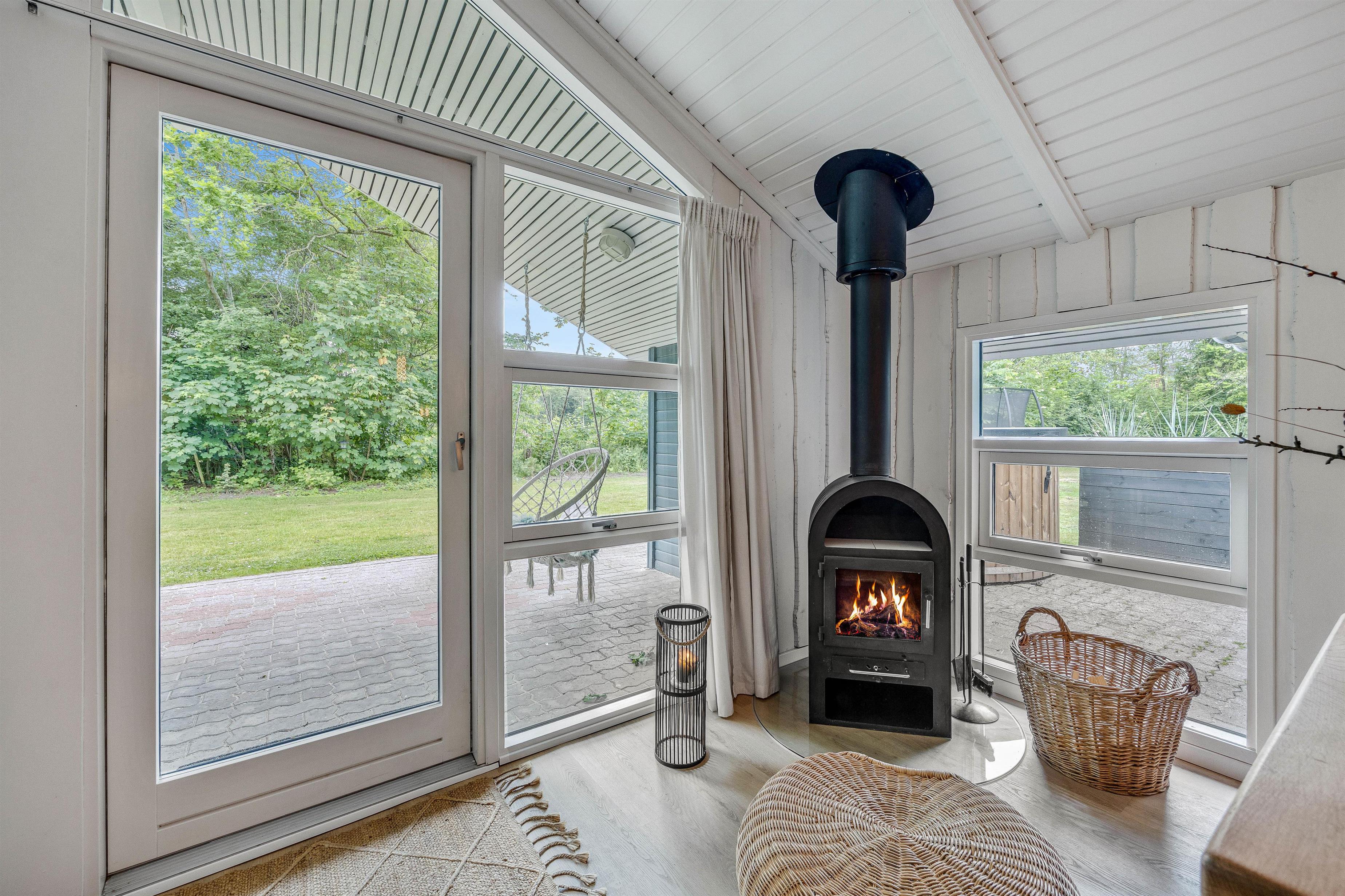 Hjertet og det store samlingspunkt i feriehuset er alrummet, der forener køkken, stue og spiseplads. Alrummet danner rammen om mange hyggelige stunder på jeres ferie, og brændeovnens knitrende flammer sætter prikken over i’et.