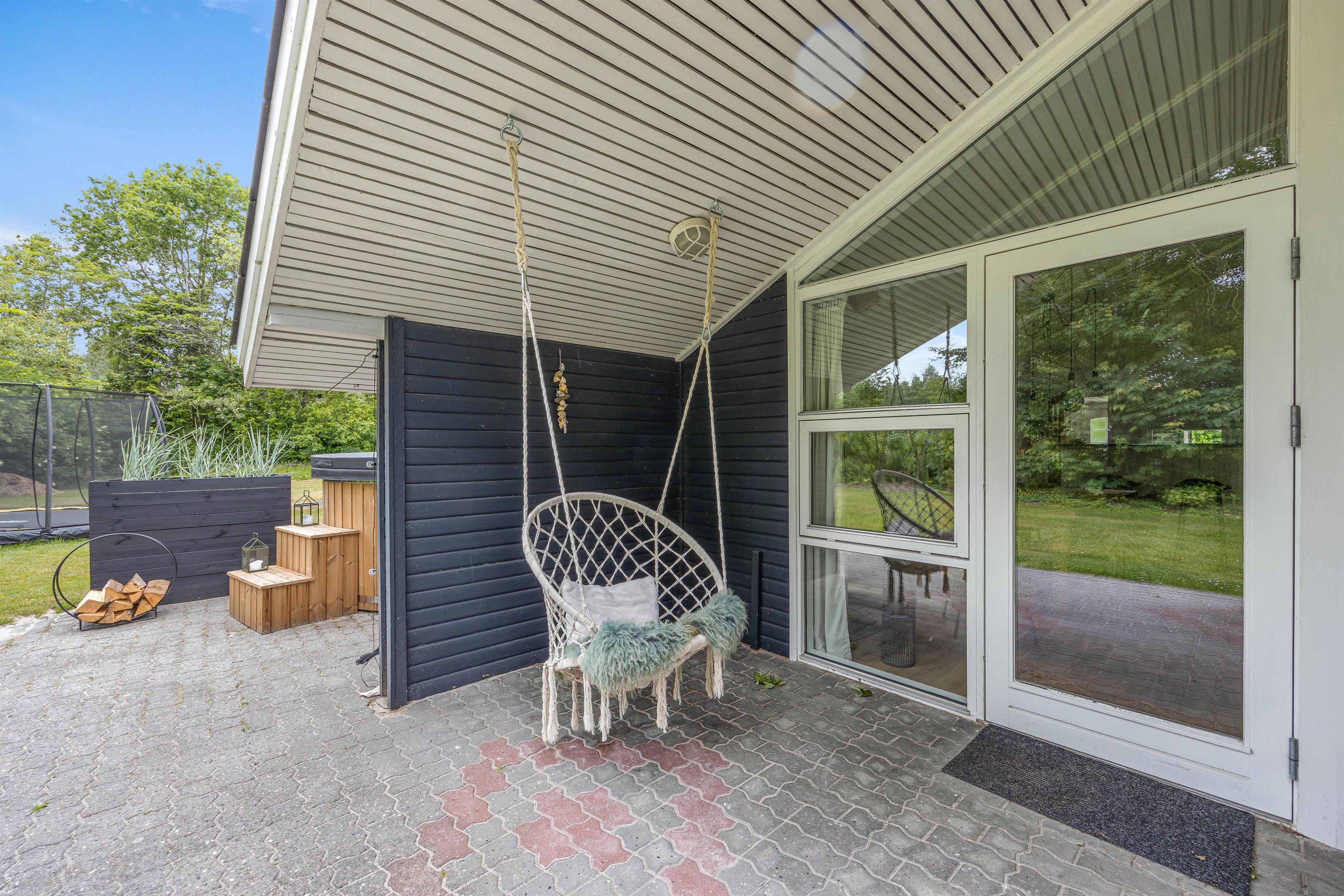 Sommerhusets udendørsarealer tilbyder en oase af afslapning og hygge. Her kan I synke ned i vildmarksbadet og lade jer indhylle af den friske luft, mens stjernerne blinker over jer ved aftenstide. De små kan boltre sig i haven og lege i sandkassen, hvor de kan skabe fantastiske sandslotte.