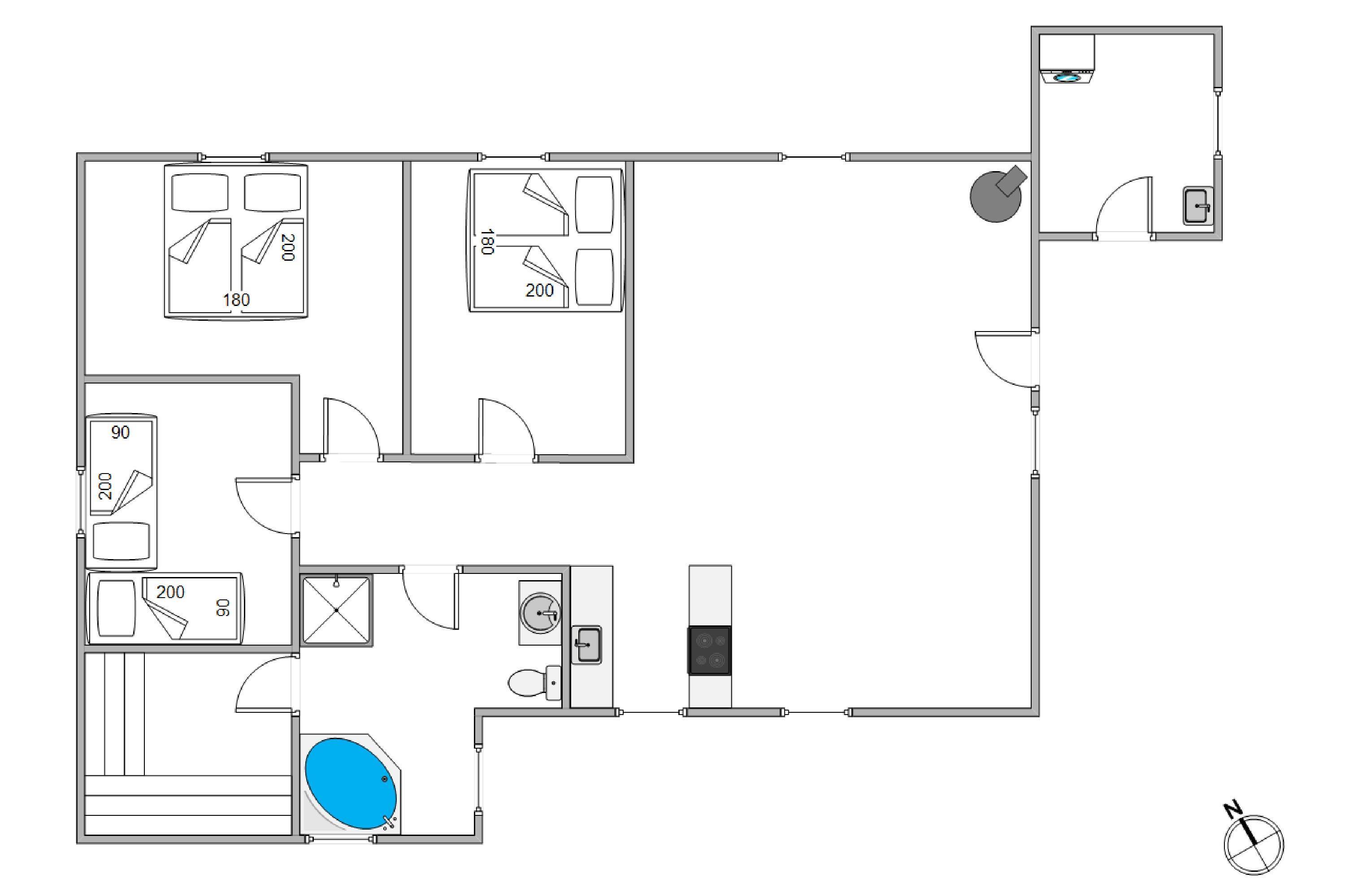 Dette sommerhus er designet med fokus på at kombinere komfort med praktiske løsninger. Indendørs finder I 3 rummelige soveværelser, der skaber de optimale betingelser for en afslappende nattesøvn, så I kan starte hver dag frisk og udhvilet. Køkkenet er godt udstyret, inklusive en opvaskemaskine, der gør det nemt for jer at håndtere de daglige gøremål, uden at skulle bruge unødig tid på rengøring. I den hyggelige stue, der er udstyret med en brændeovn og en effektiv luft-til-luft varmepumpe, kan du slappe af og nyde varmen uanset årstiden.