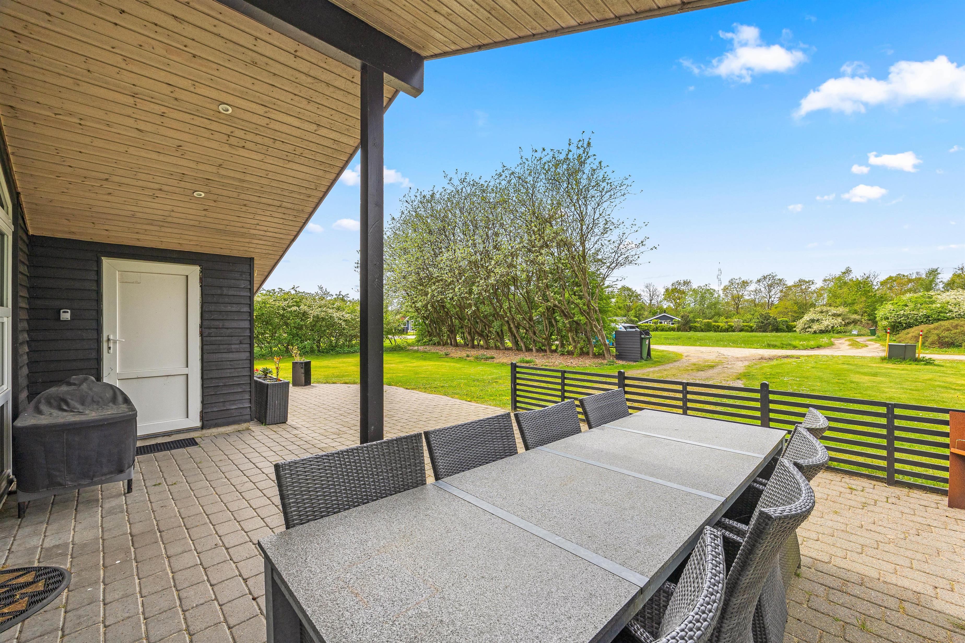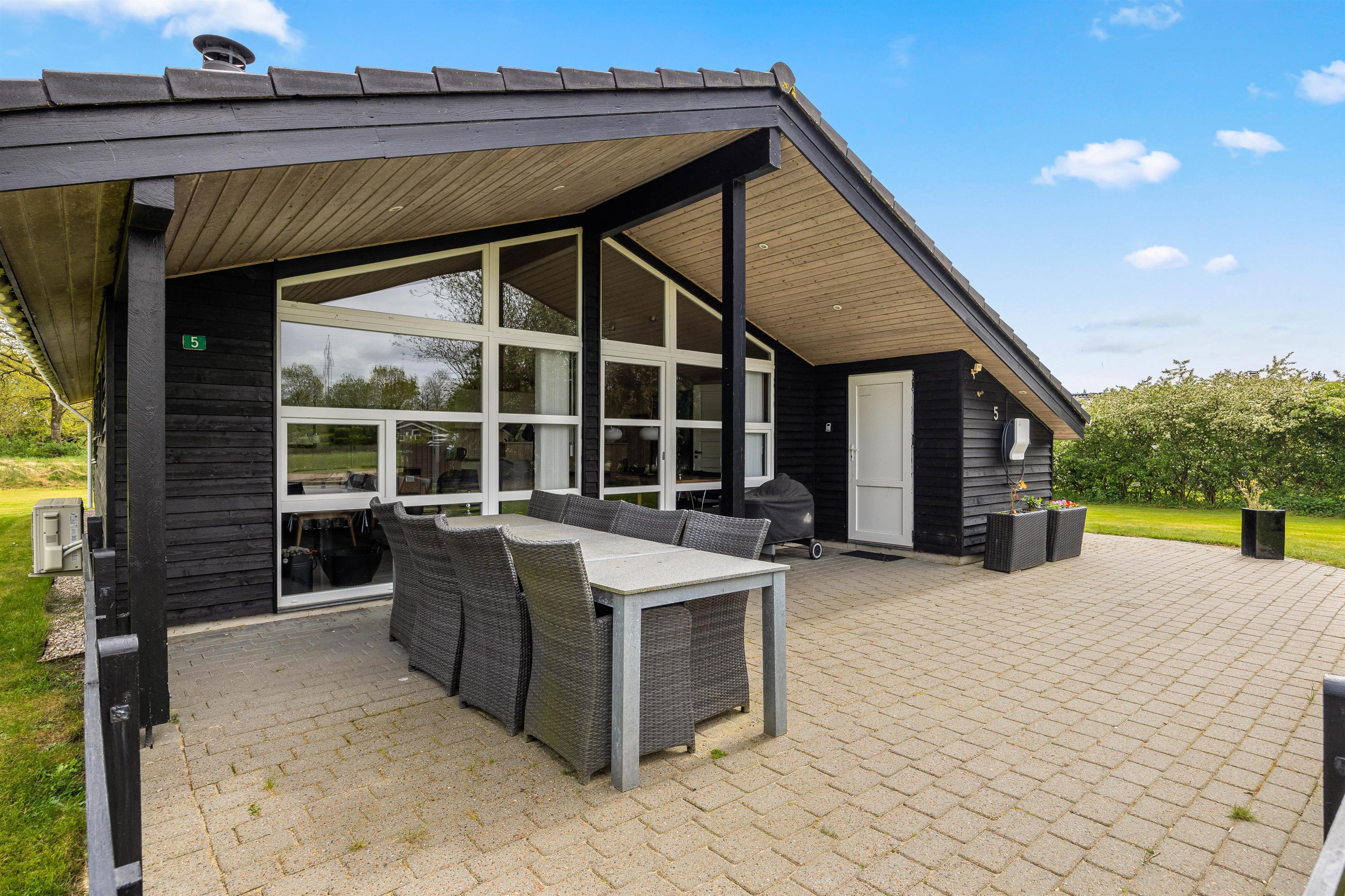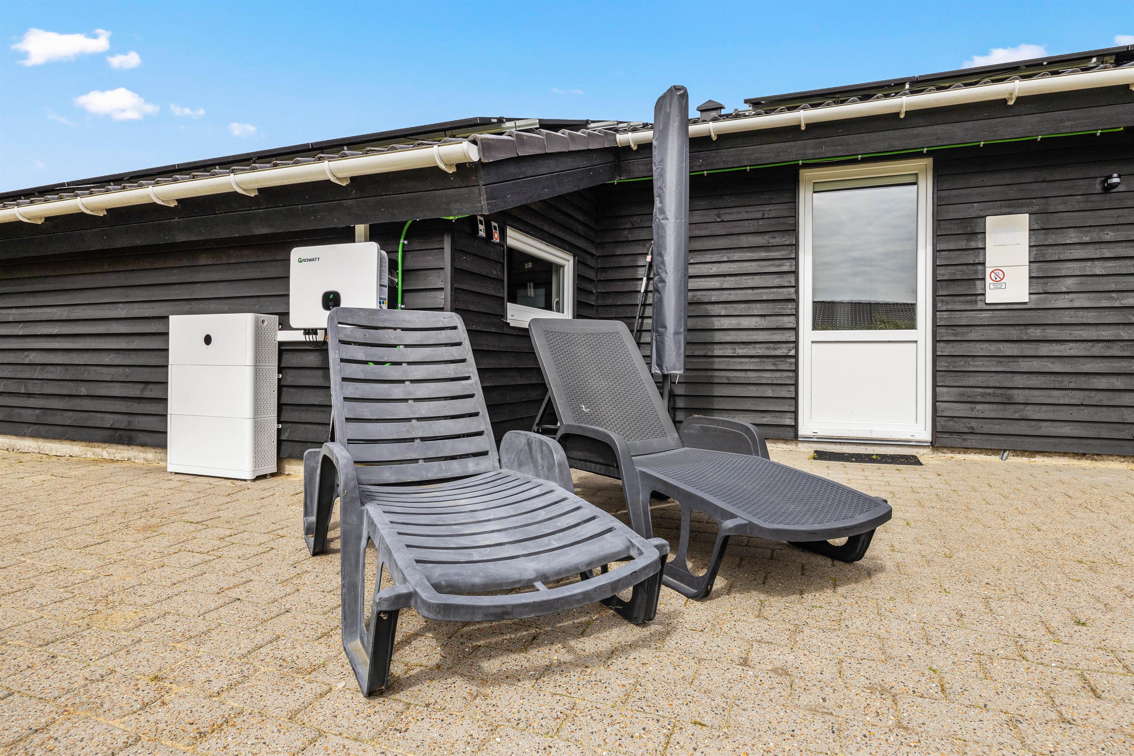 Efter en spændende dyst kan I slappe af på den delvist afskærmede og overdækkede terrasse. Uanset solens position og vindens retning kan I altid finde et hyggeligt spot her. Som afslutning på en god feriedag kan I tænde op i grillen og lave et lækkert måltid, og nyde en lækker grillaften med familien.