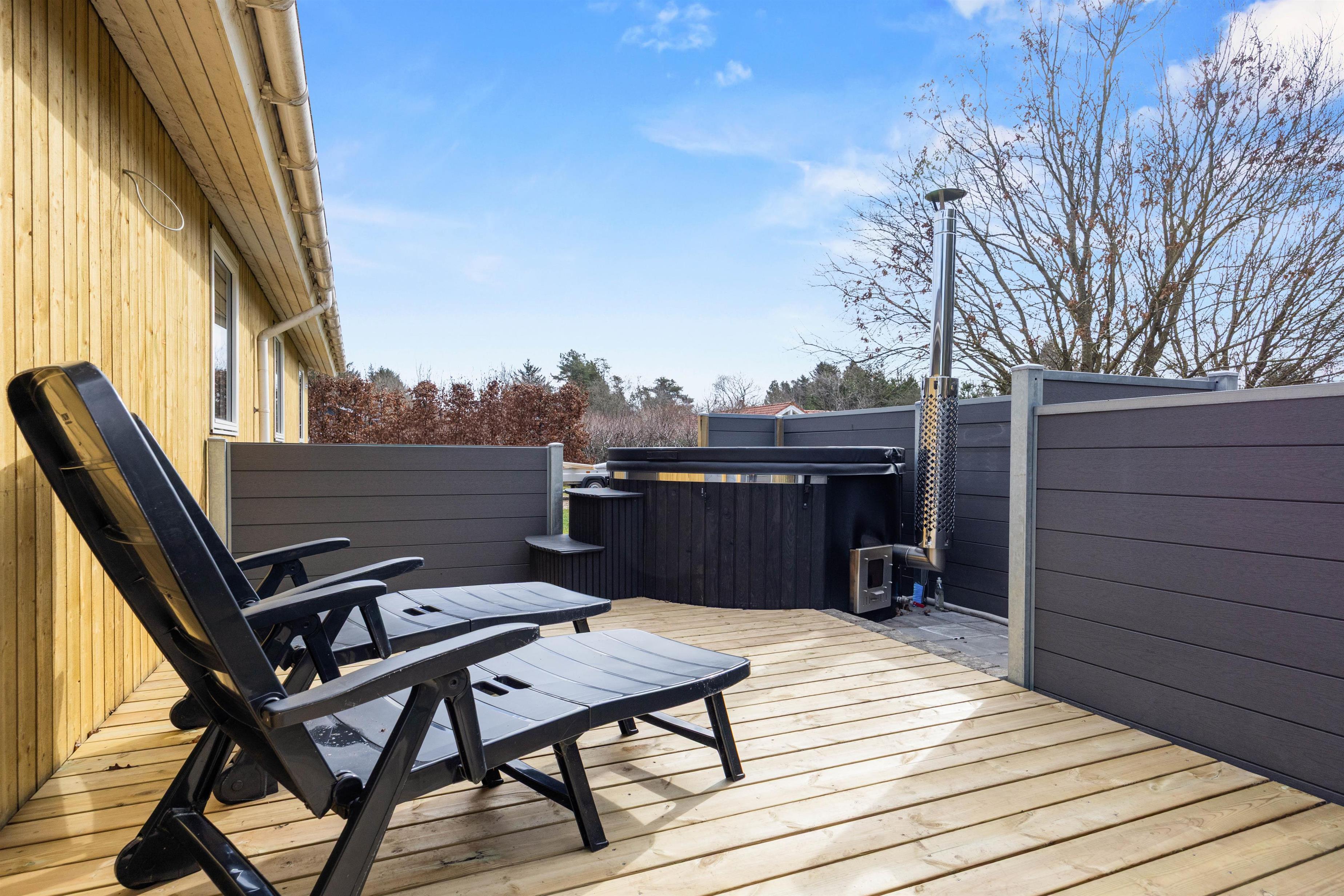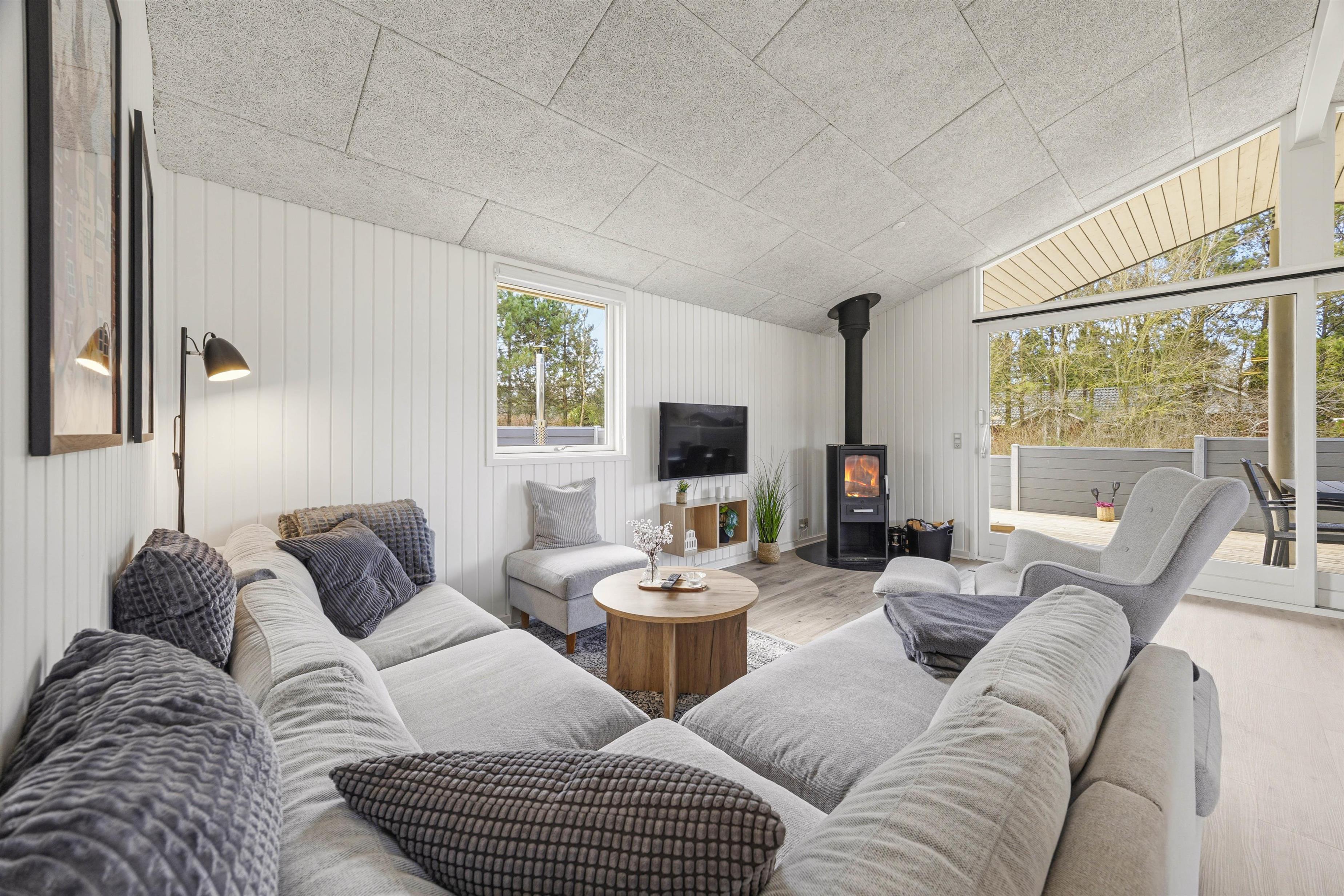 Inde i sommerhuset sørger en luft-til-luft varmepumpe for et behageligt indeklima, mens brændeovnen giver ekstra hygge på de køligere dage. Som prikken over i’et kan du læne dig tilbage i et vildmarksbad og gøre ferien til noget helt særligt – uanset om du vil starte dagen roligt eller runde aftenen af under åben himmel.