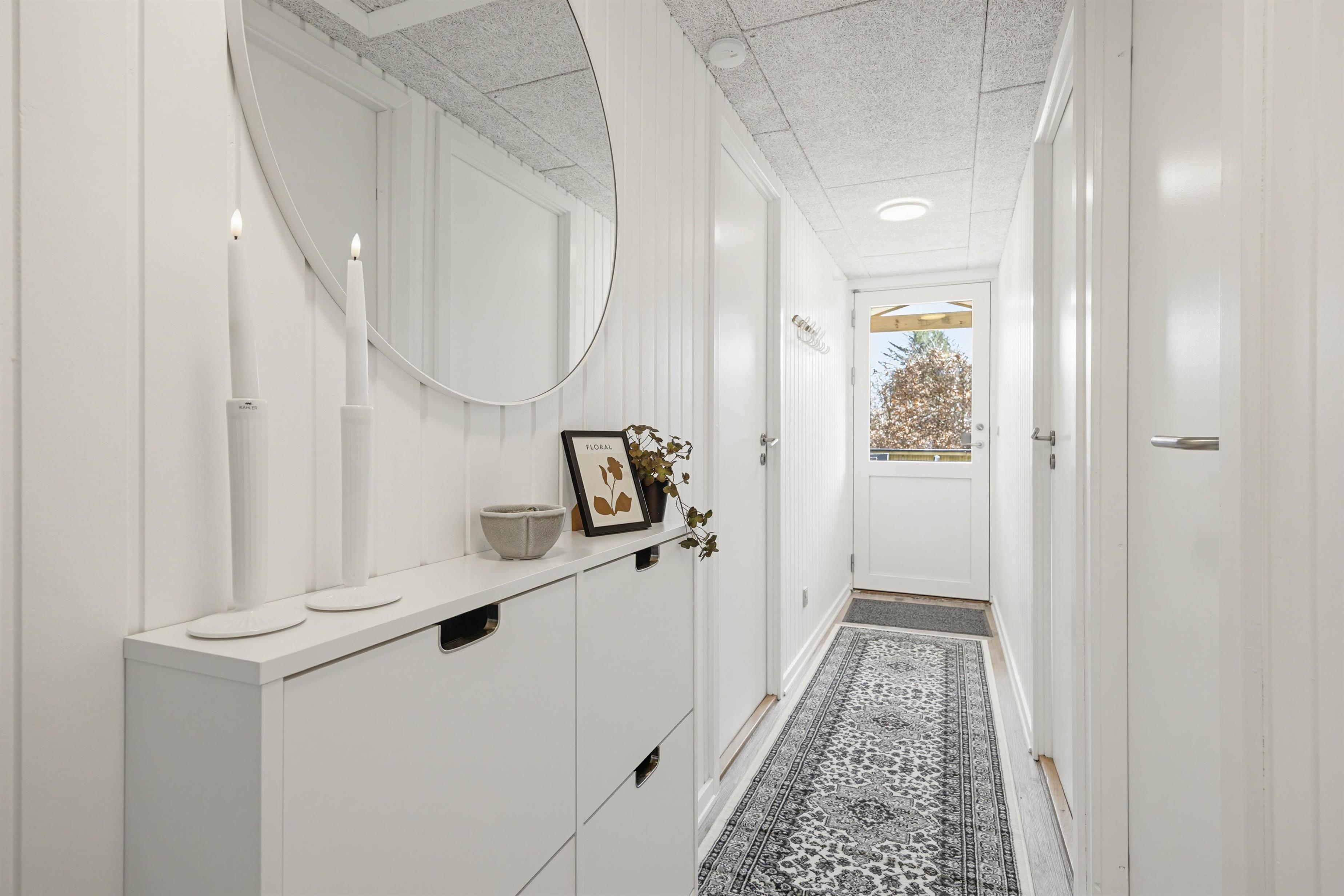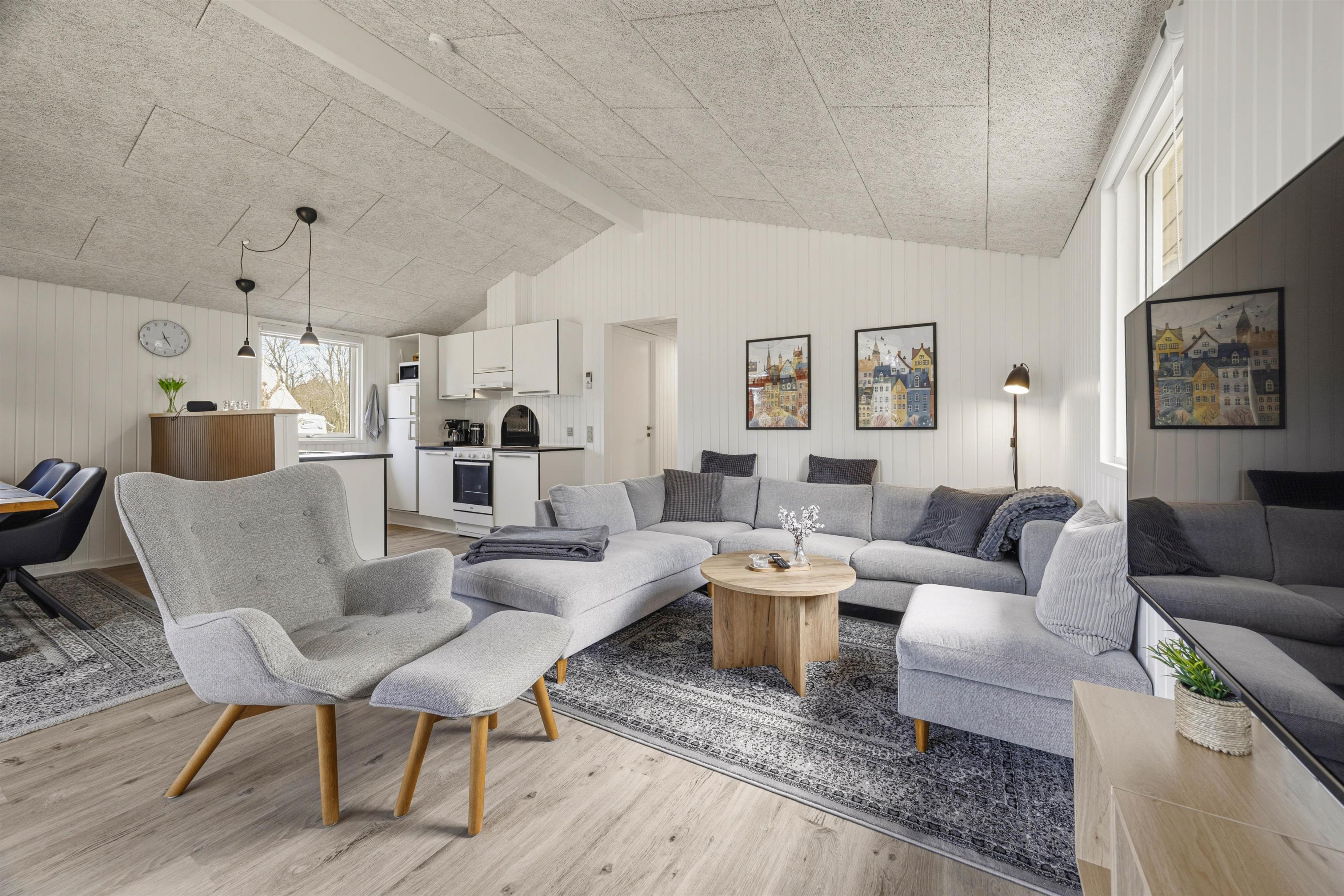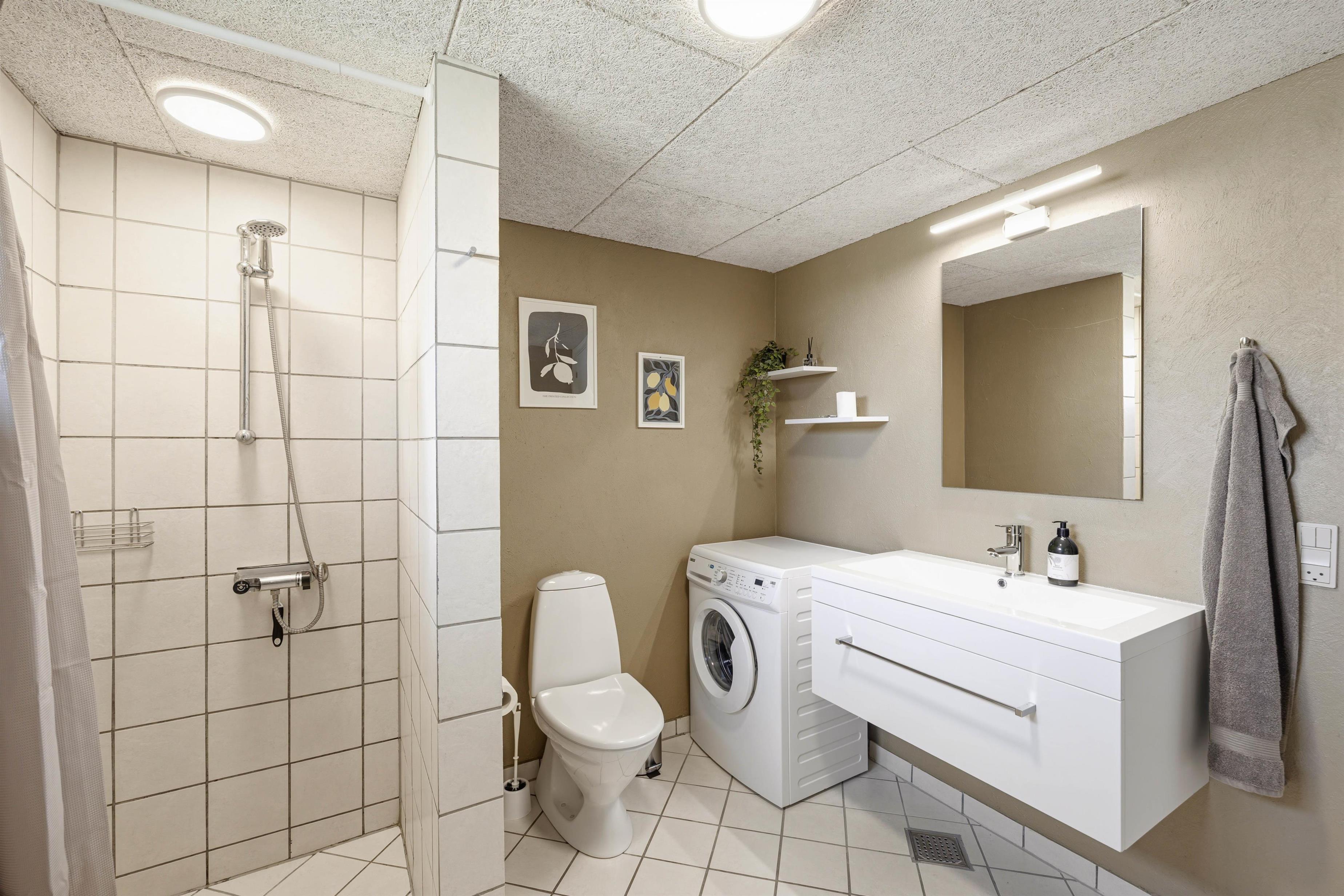 Indearealet er skabt til feriehygge og praktisk komfort, hvor en varm brændeovn samler jer på kølige aftener, mens opvaskemaskinen gør oprydningen til en leg, så I kan fokusere på det, der virkelig betyder noget. Sommerhuset har ét badeværelse med gulvvarme, der giver en behagelig start på dagen – selv når temperaturen udenfor er kølig.