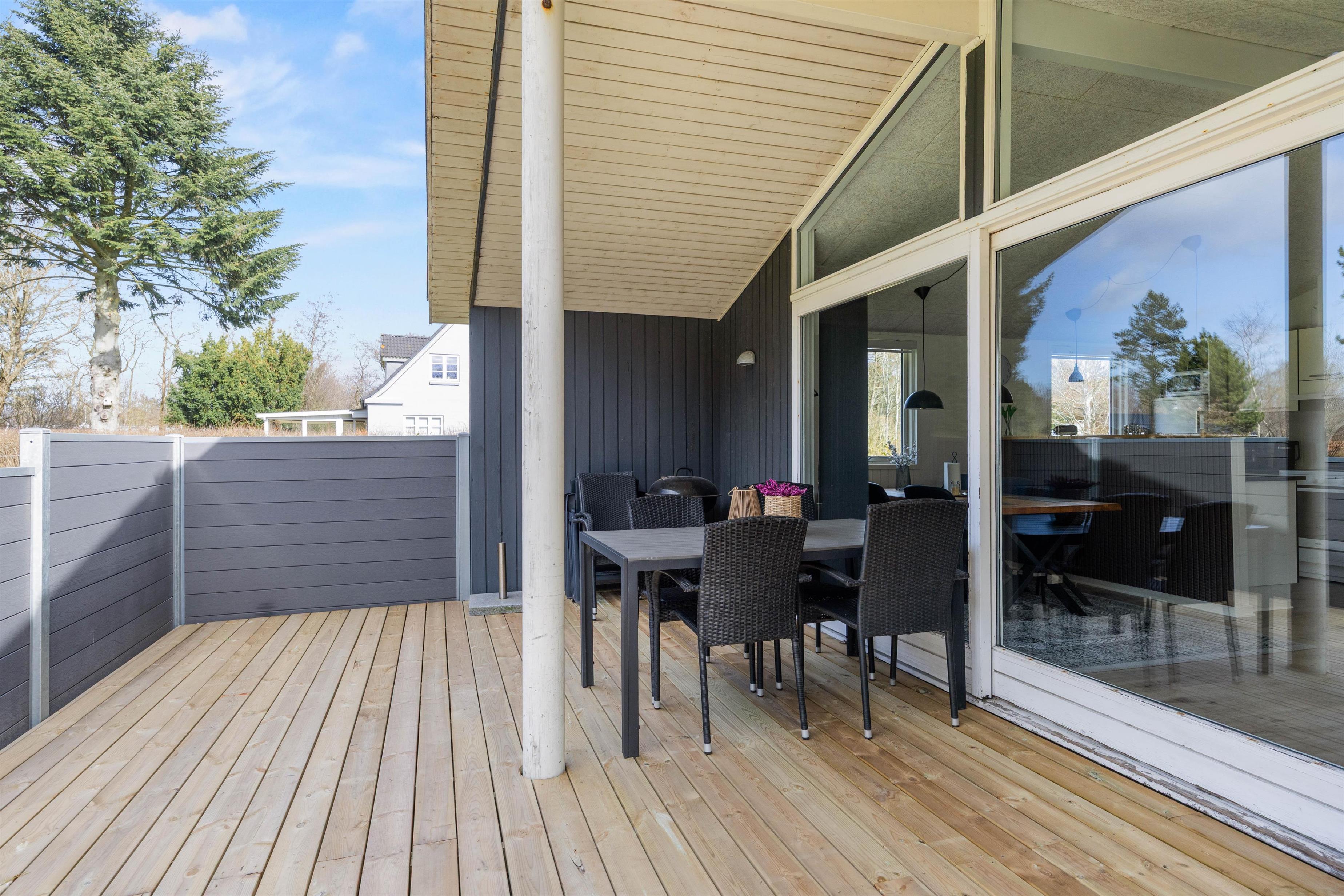 Udearealet giver dig masser af plads til feriedage under åben himmel på en 1521 m2 stor plænegrund, hvor der er god mulighed for leg og afslapning. Du kan tænde op i grillen og samle familien til lange måltider på terrassen, som både har et åbent område til solskinsdage og en overdækket del, når du gerne vil sidde i læ eller forlænge aftenen.
