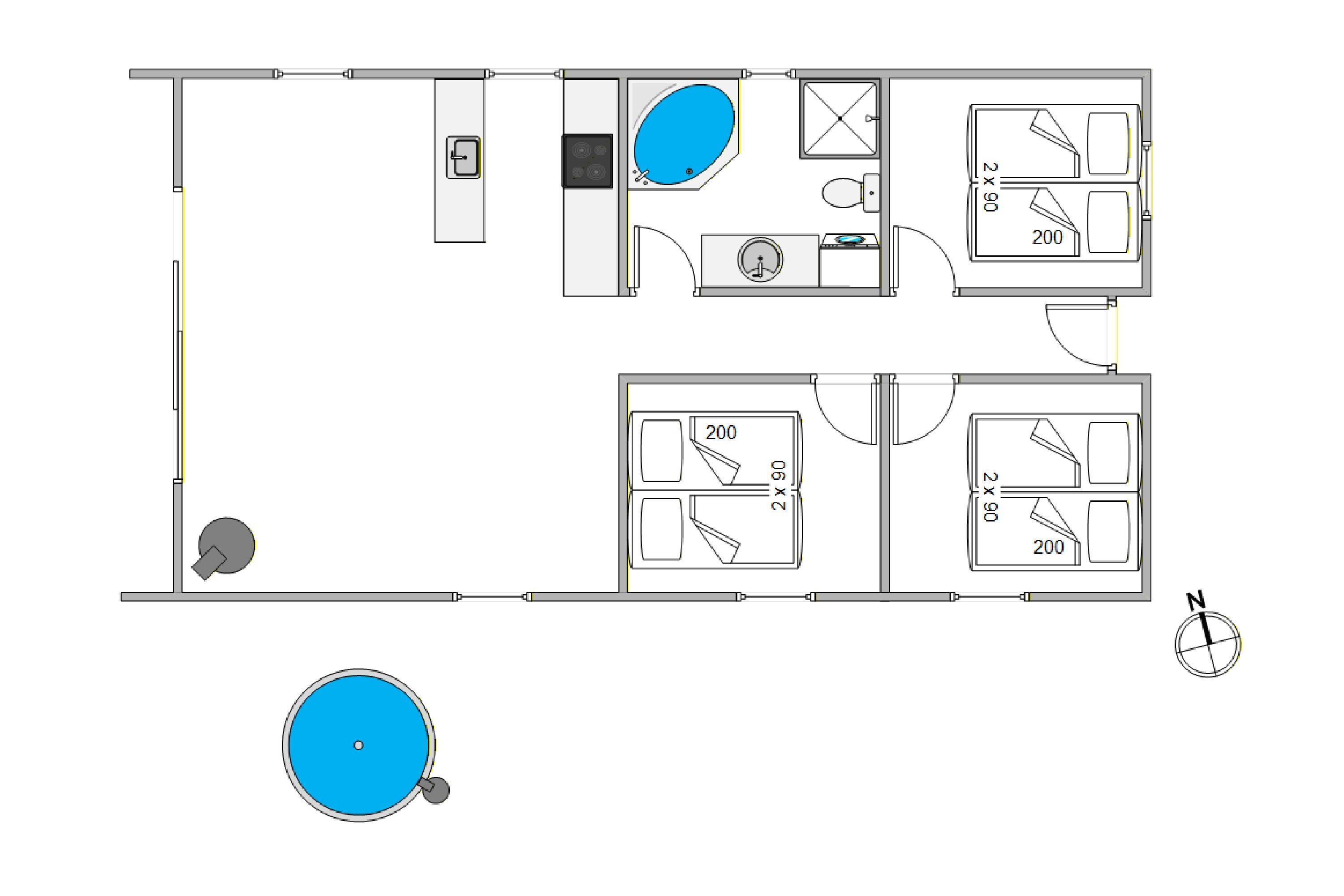 Brombærvangen 4 i Jegum Ferieland er bygget i 2005 og renoveret i 2026, så du får en frisk og indbydende ramme til ferien. Med 75 m2 er der god plads til 6 personer, og du kan tage 1 hund med, så hele familien kan komme afsted samlet.
