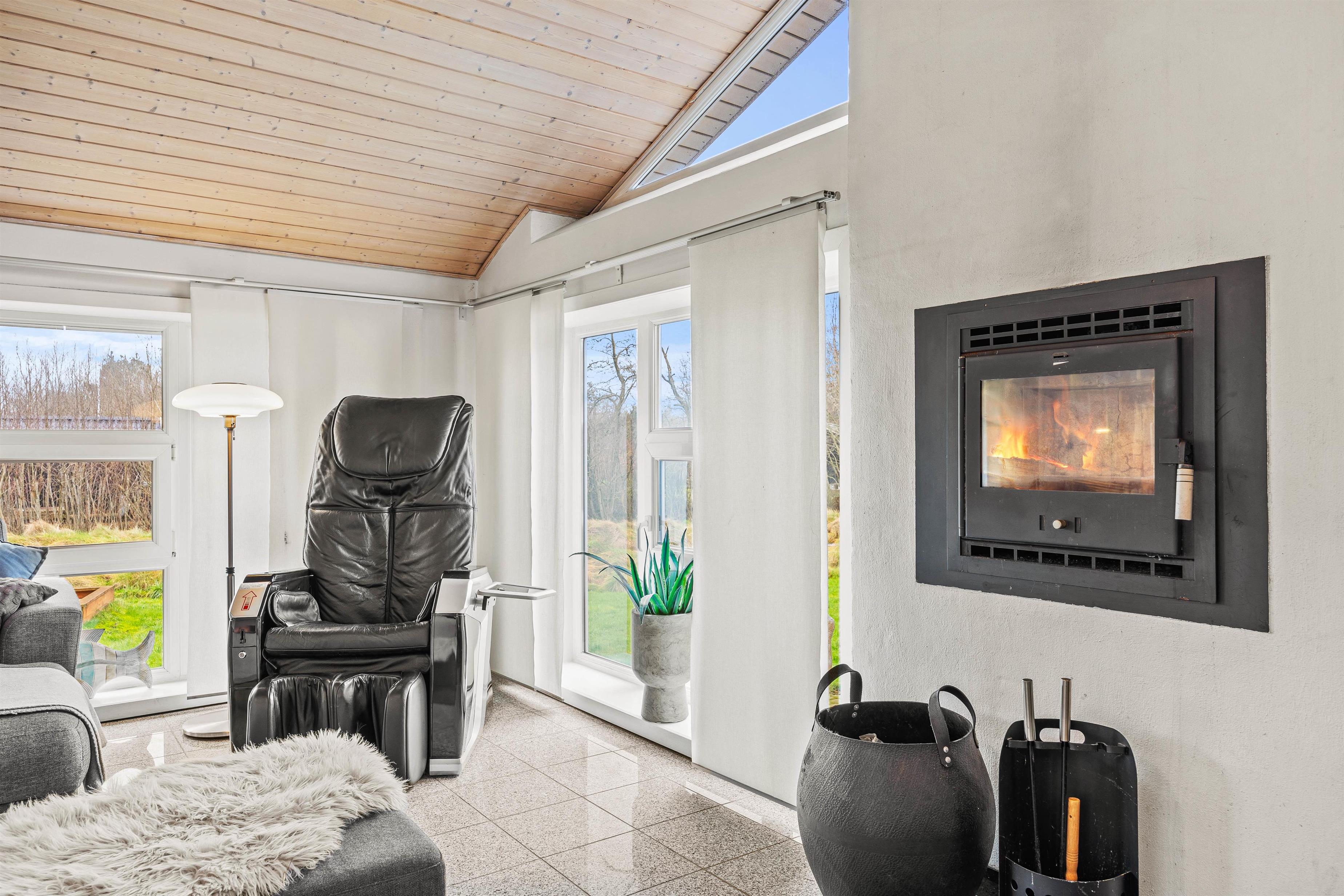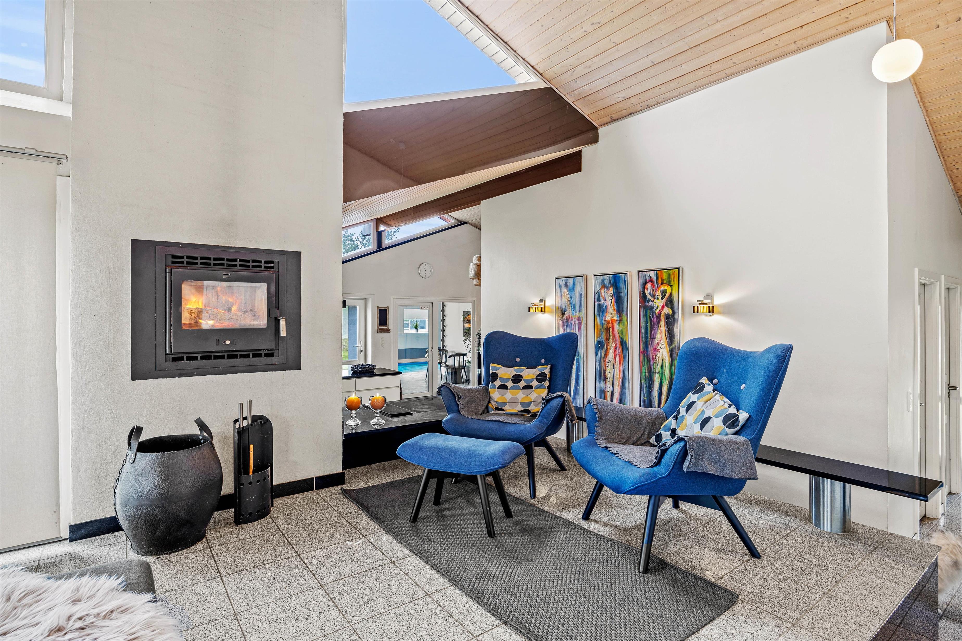Bevæger man sig videre ind i de bløde sofamøbler, omfavnes man af den varme brændeovn der især på kølige aftener indbyder til hygge over en kop varm kakao og et spil kort. I har også mulighed for at forkæle jer selv i husets sauna efter en dag fuld af oplevelser. Hvis I trænger til at få pulsen op, kan I tage en forfriskende svømmetur i den indendørs pool, der virkelig sætter prikken over i’et i jeres ferieoplevelse, eller tage et spil billard i det store aktivitetsrum. Poolen opvarmes af en luft til vand varmepump, som både sikrer en lækker temperatur på 28-30 grader og er energivenlig så I sparer penge.