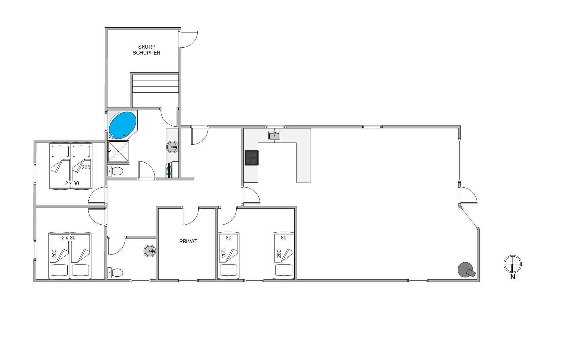 Lige ved køkkenet og stuen finder I 3 soveværelser. De har 2 dobbeltsenge og 2 enkeltsenge, hvilket giver rigelig plads til op til 6 personer, så alle kan få en god nats søvn og vågne friske til kommende aktiviteter.