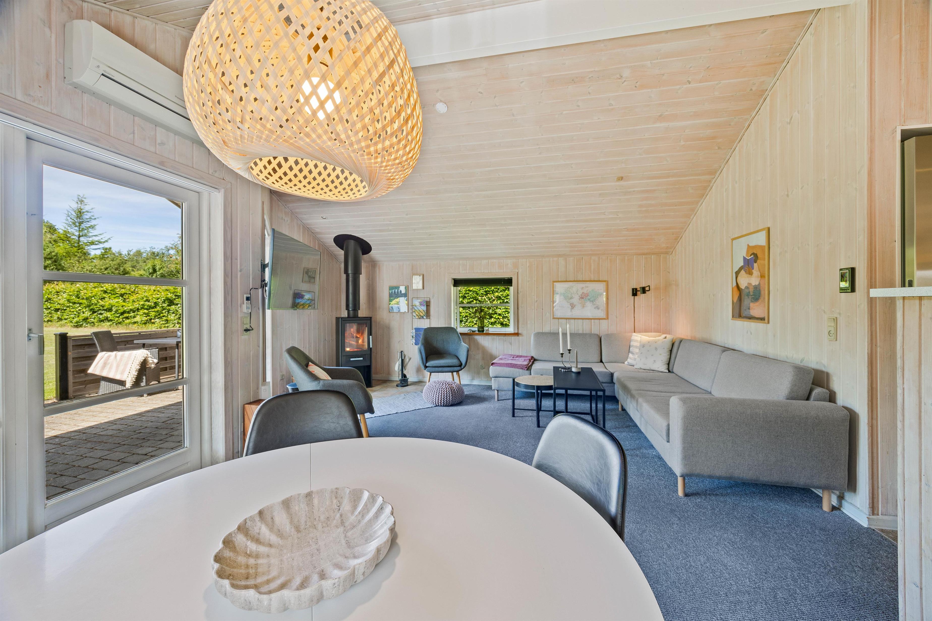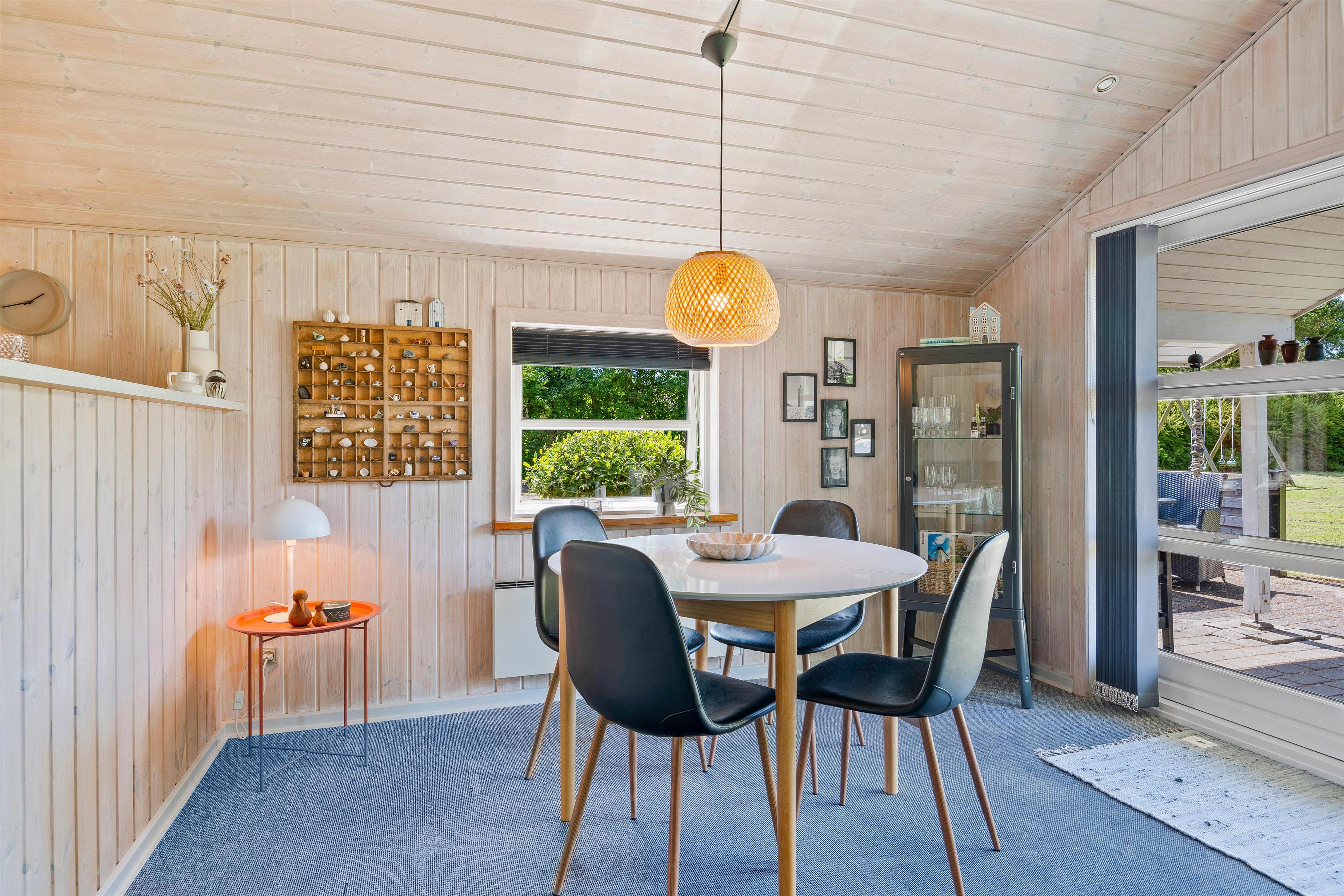 Sommerhuset er indbydende indrettet og sikrer et skønt ophold. Det lyse køkken er udstyret med en opvaskemaskine, som tager sig af opvasken, så I nemt og hurtigt kan komme tilbage til hyggen eller ud på næste eventyr. I kan nyde jeres måltider ved spisebordet, og fortsætte hyggen over i den store sofa, som er perfekt til afslapning, hvor I kan se film eller spille spil sammen.