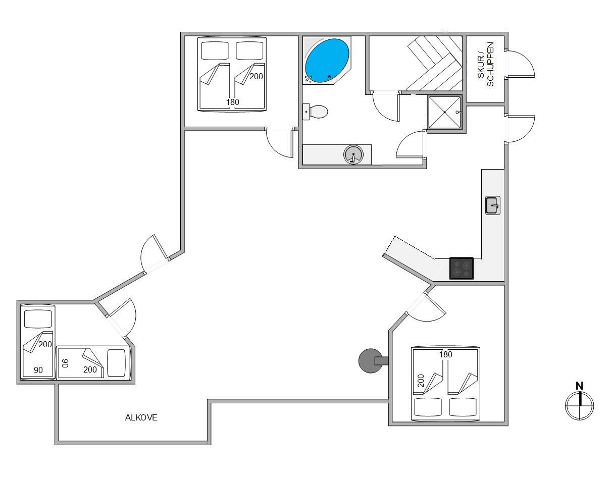 Sommerhuset har i alt 3 soveværelser, 1 badeværelse med gulvvarme samt sauna og boblebad. Du kan nemt planlægge en wellness-dag og forkæle dig selv med timevis af afslapning og selvforkælelse.