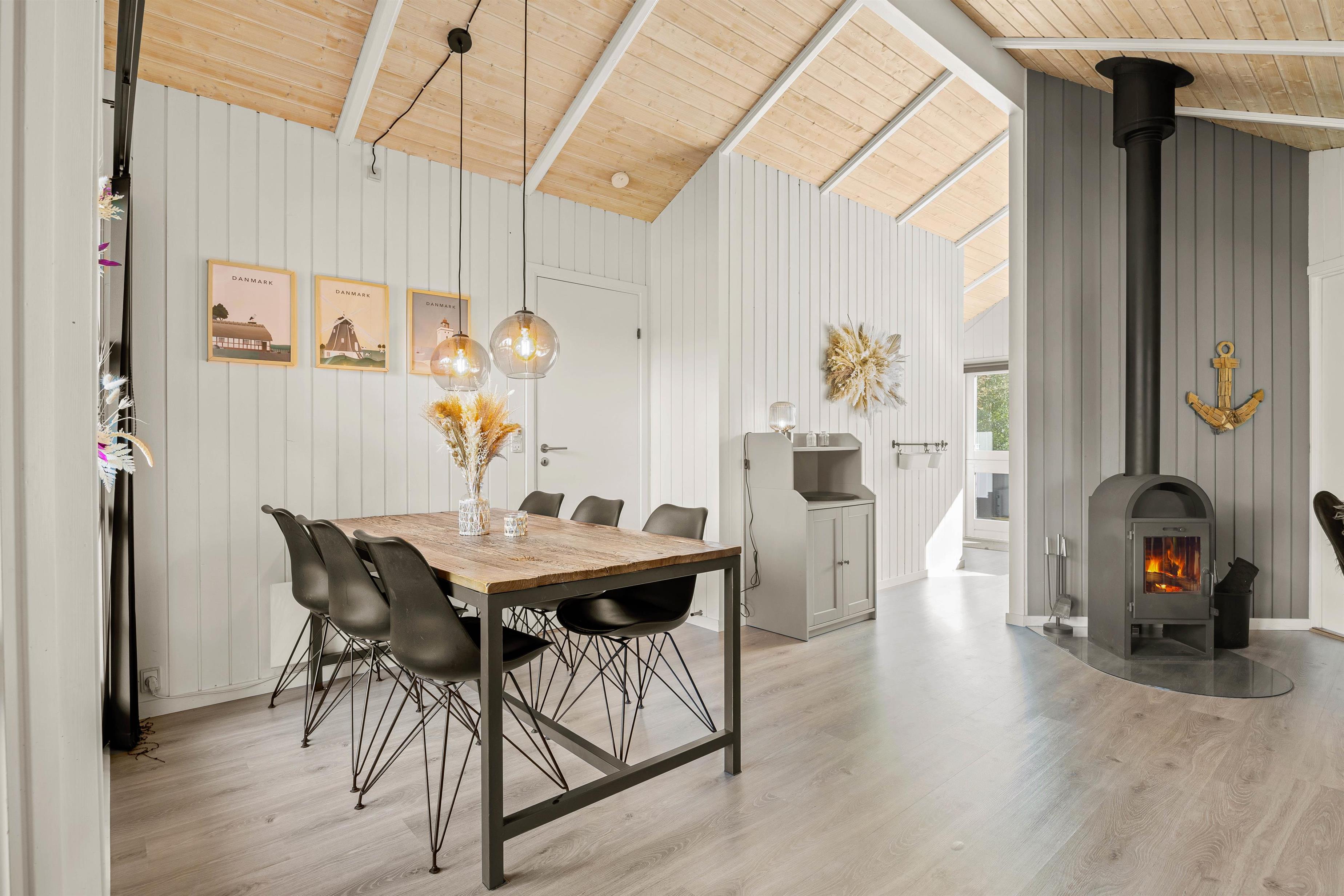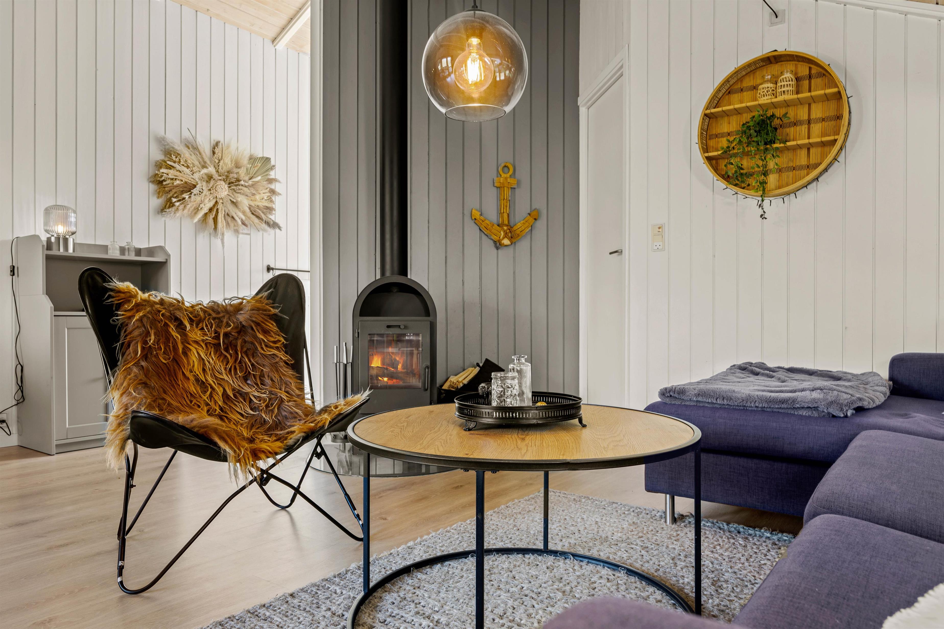 Midt i sommerhuset ligger stuen, som er feriehusets midtpunkt. Her kan I spise og slappe af sammen. Hvis I får lyst, kan I tænde op i brændeovnen, som giver den perfekte ferieatmosfære med knitrende flammer.