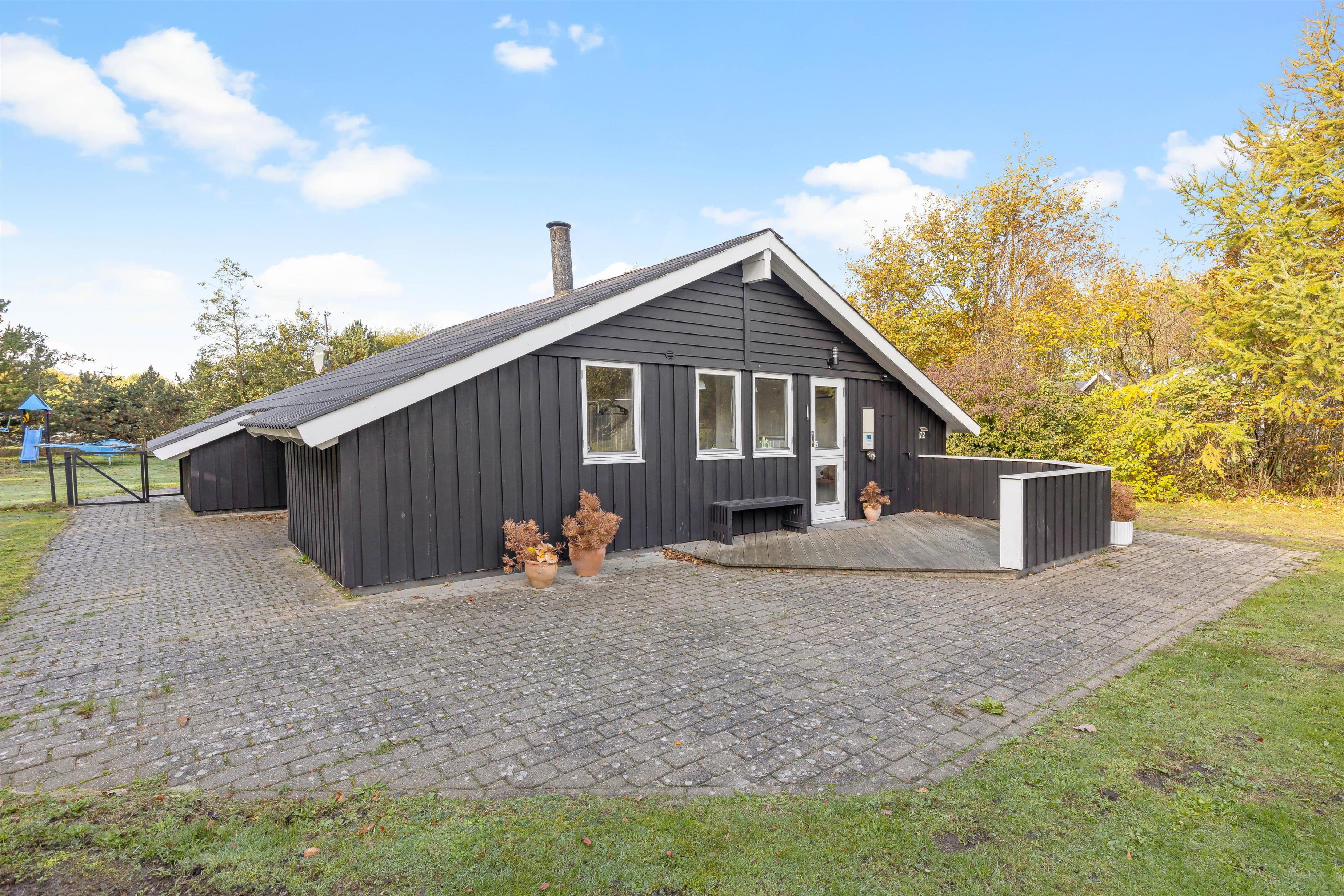 Det tilhørende udendørsområde på Blomstervangen 72 er også ganske imponerende. Dette sommerhus er virkelig et godt valg, især hvis I kan lide at være ude i den friske luft og børnene har brug for at brænde deres overskydende energi af. En gynge, en sandkasse og endda en trampolin giver underholdning, leg og sjov for de yngste.