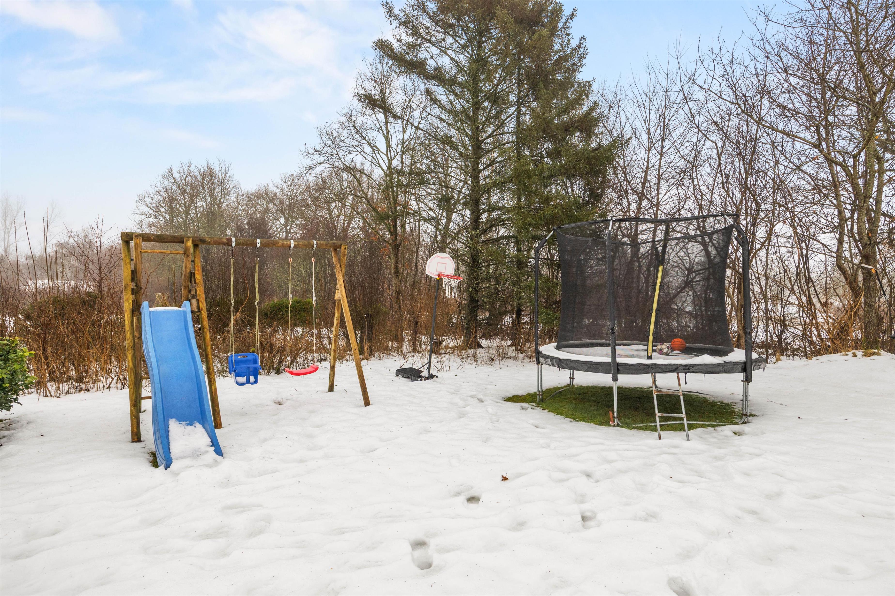 Den store åbne terrasse indbyder til at nyde den friske luft og tilbringe afslappende timer under åben himmel. For de små gæster byder haven med den store græsplæne på masser af muligheder: trampolin, gynge, rutsjebane og basketballkurv. Børnene kan boltre sig efter hjertets lyst, mens I slapper af og ser på.
