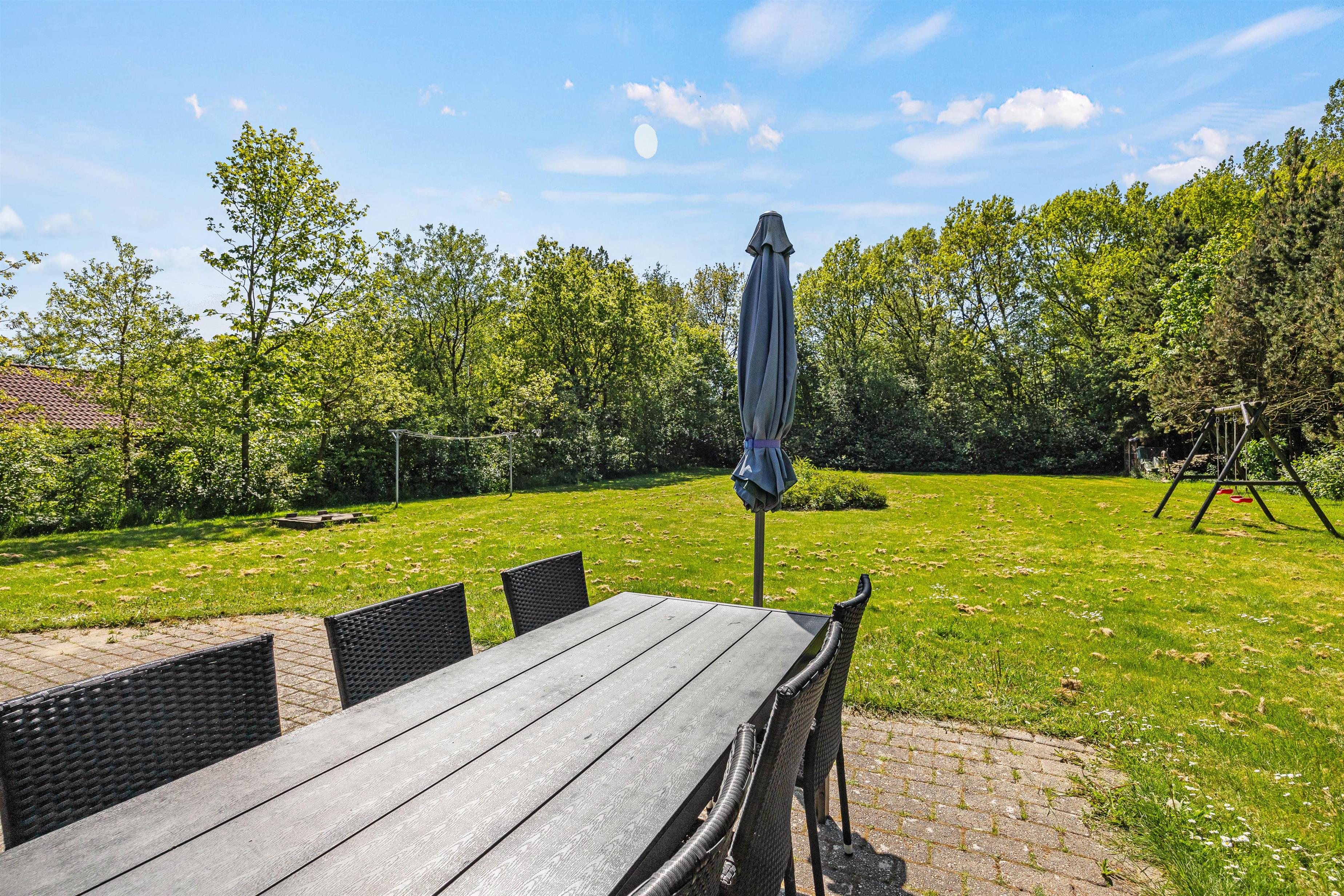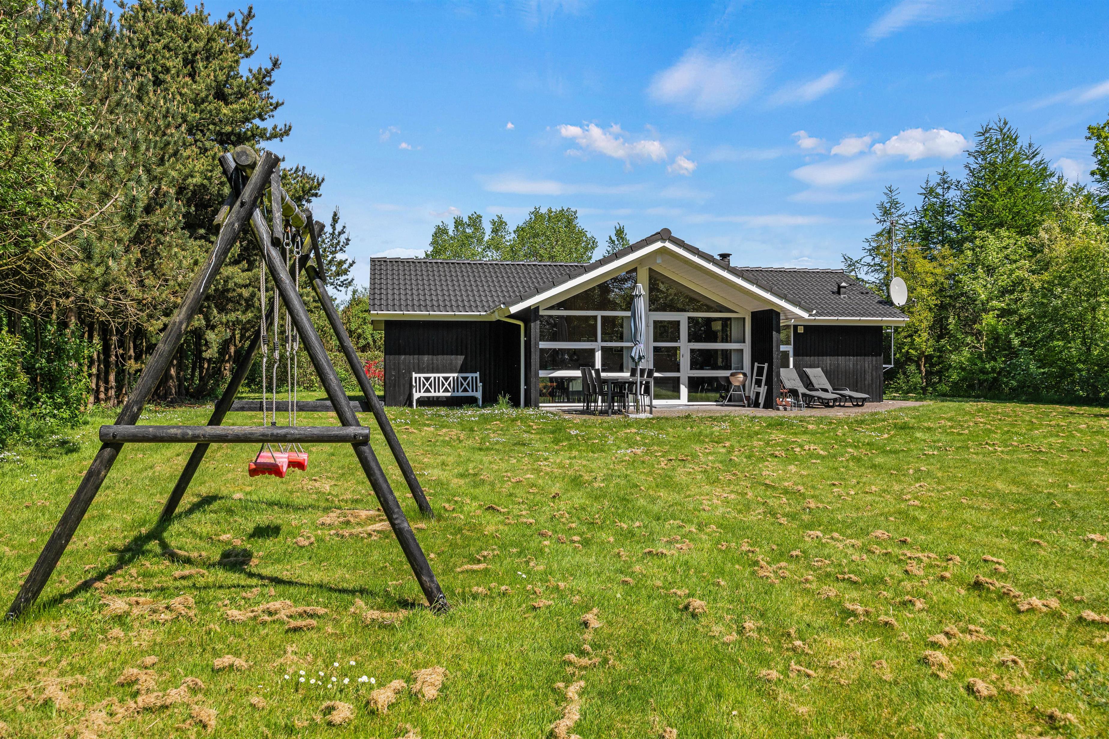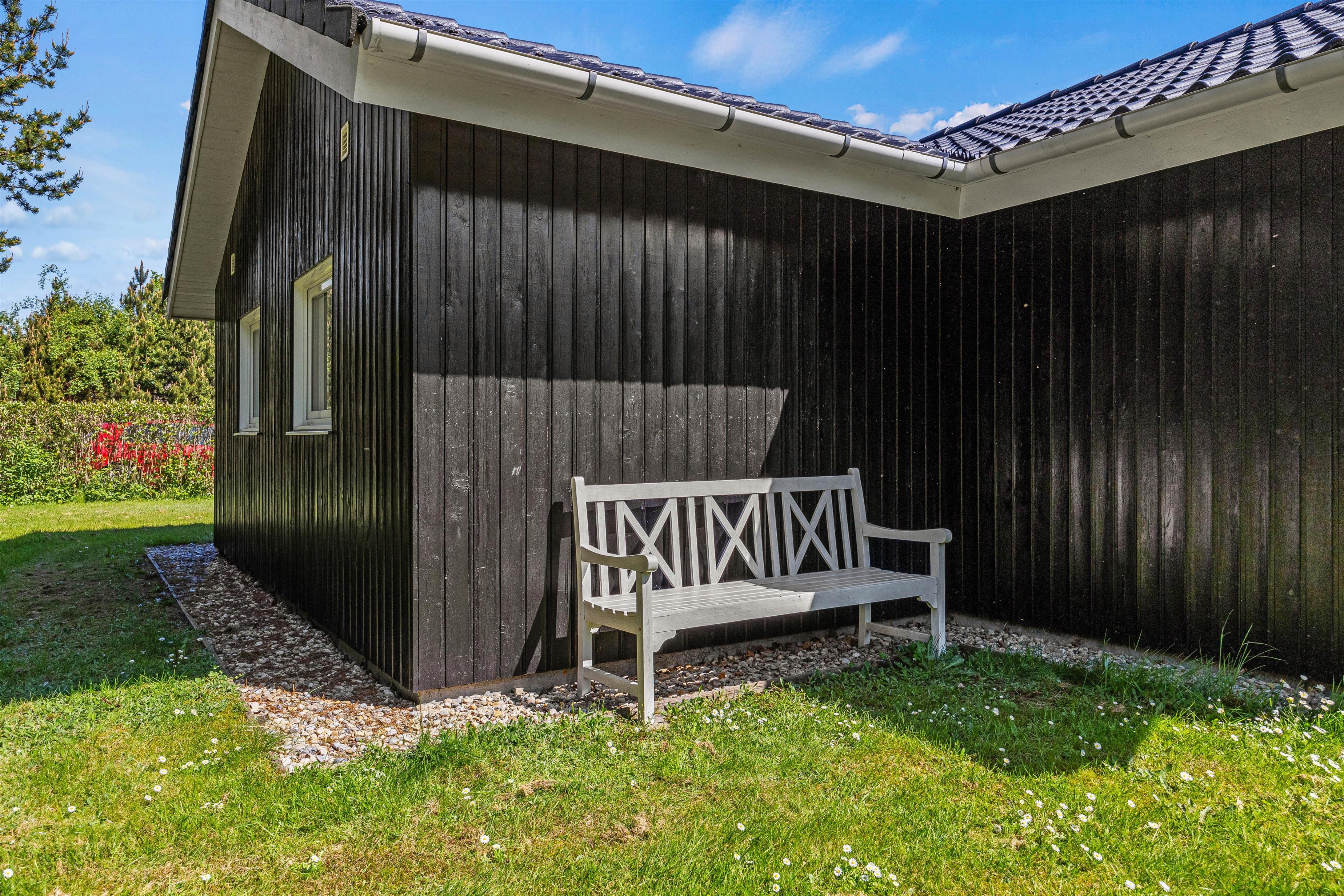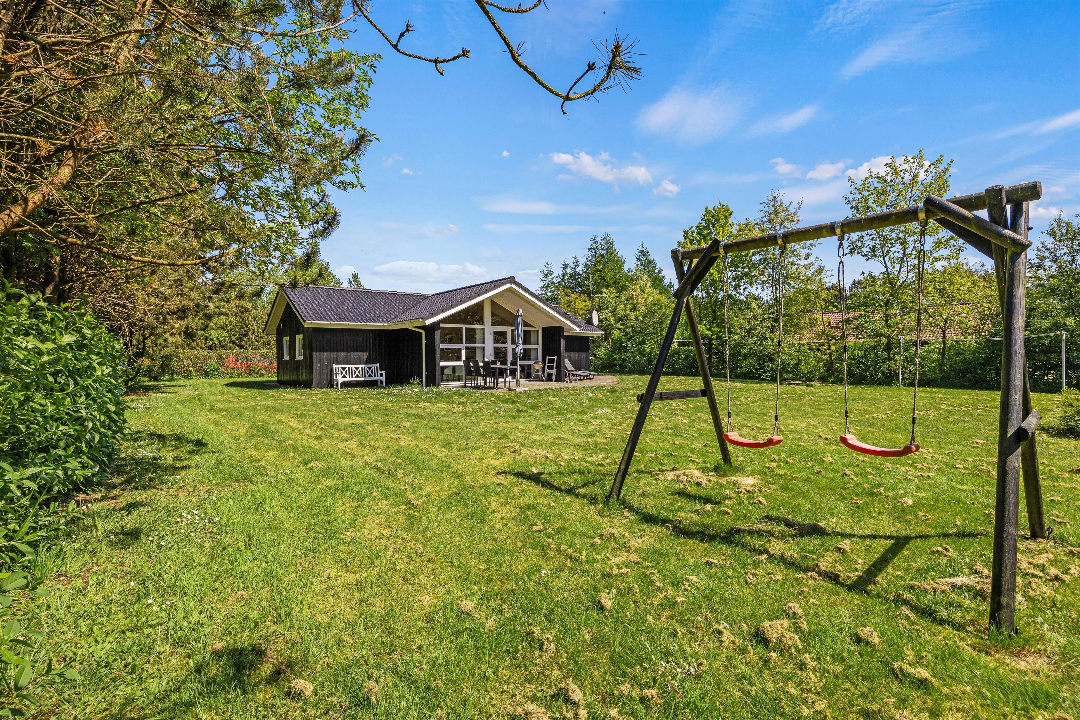 Terrassen fører ud til den 1500m2 store naturgrund, hvor der er masser af plads til spil og leg. Her finder I også en sandkasse og en gynge, som vil give jeres børn utallige timer af sjov og kreativ leg. Når I nyder en afslappende aften på terrassen, kan I samtidig oplade bilen ved husets ladestander, hvor I selv skal medbringe ladekabel, så den er klar til de næste eventyr langs Vestkysten.