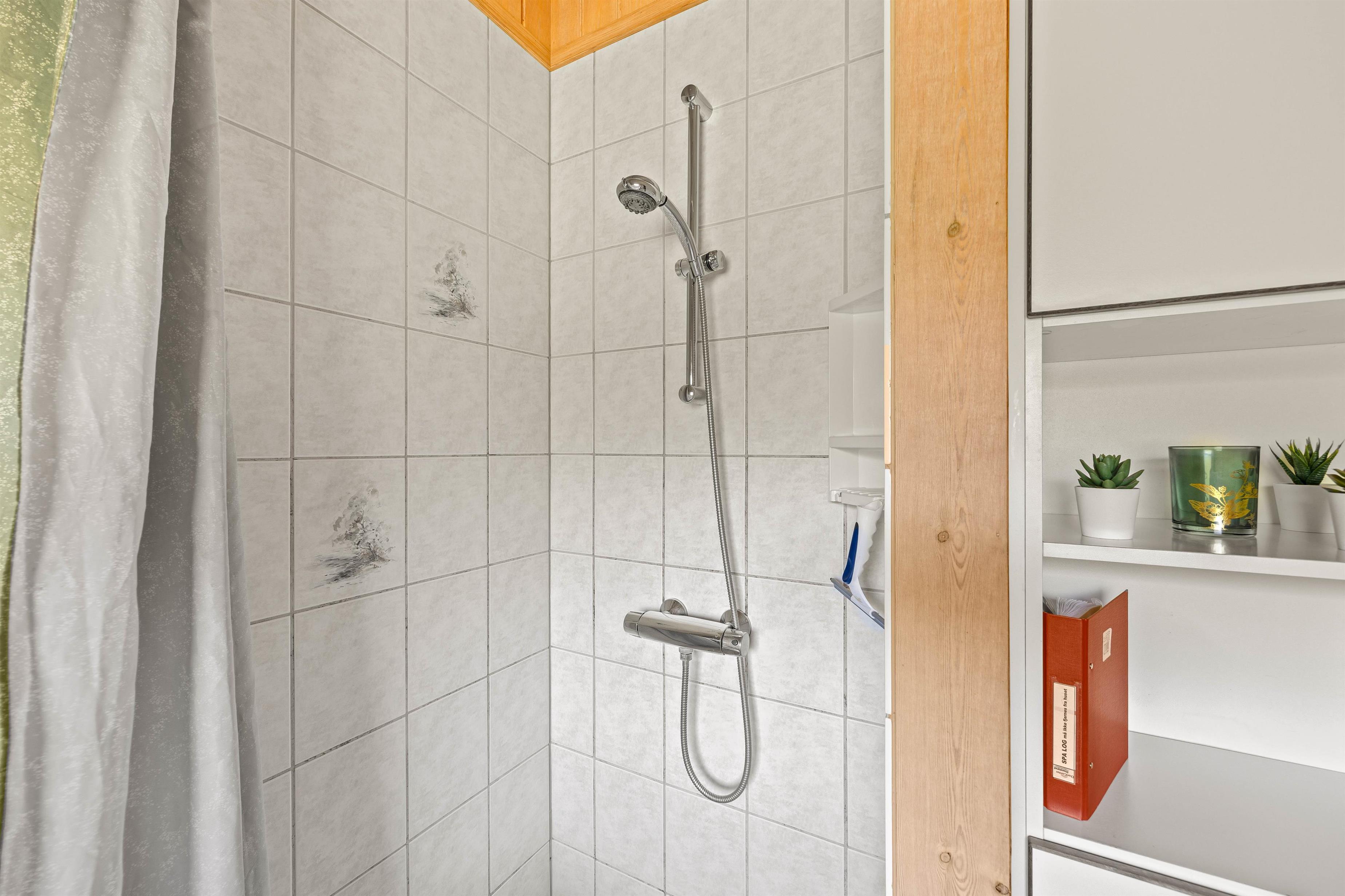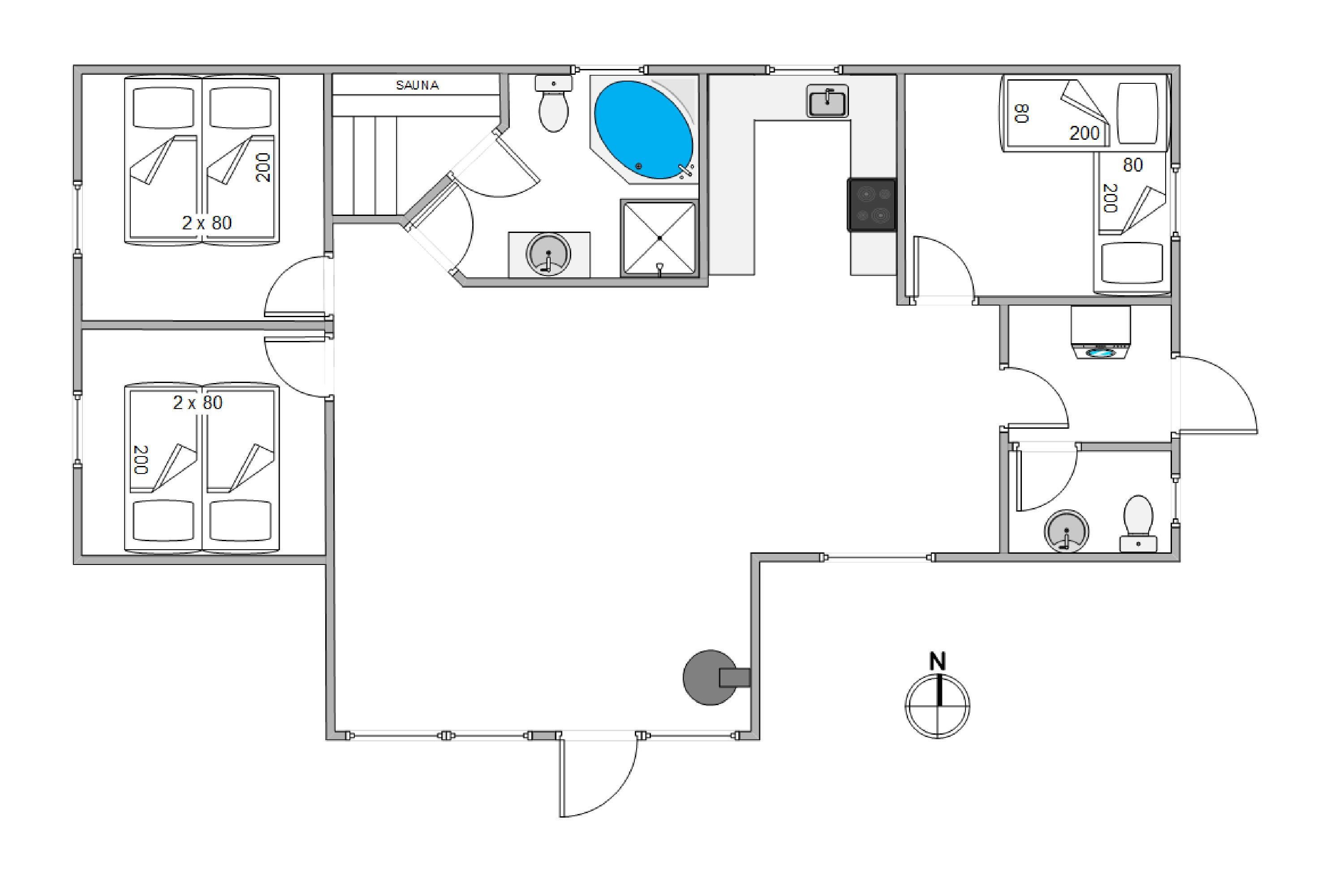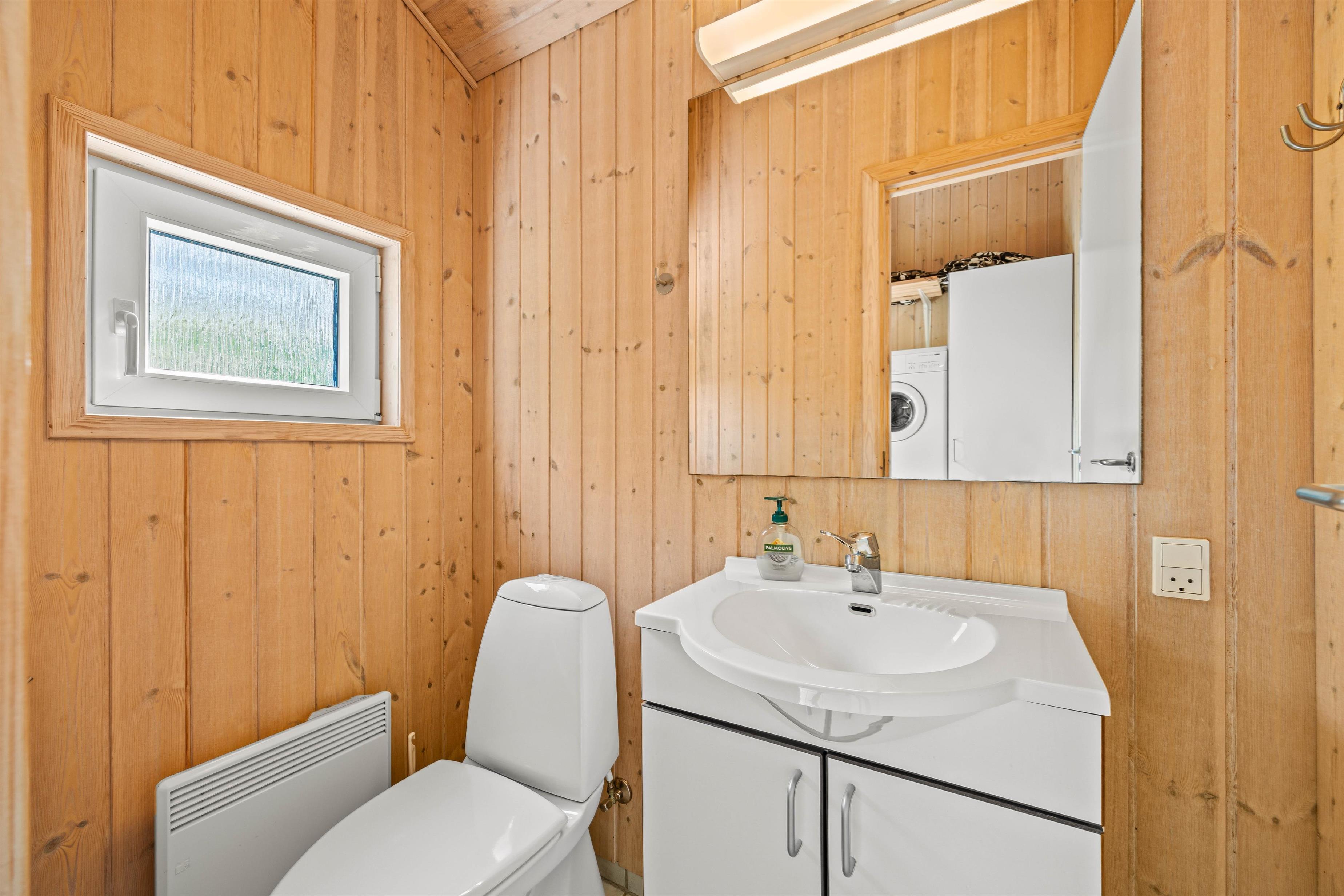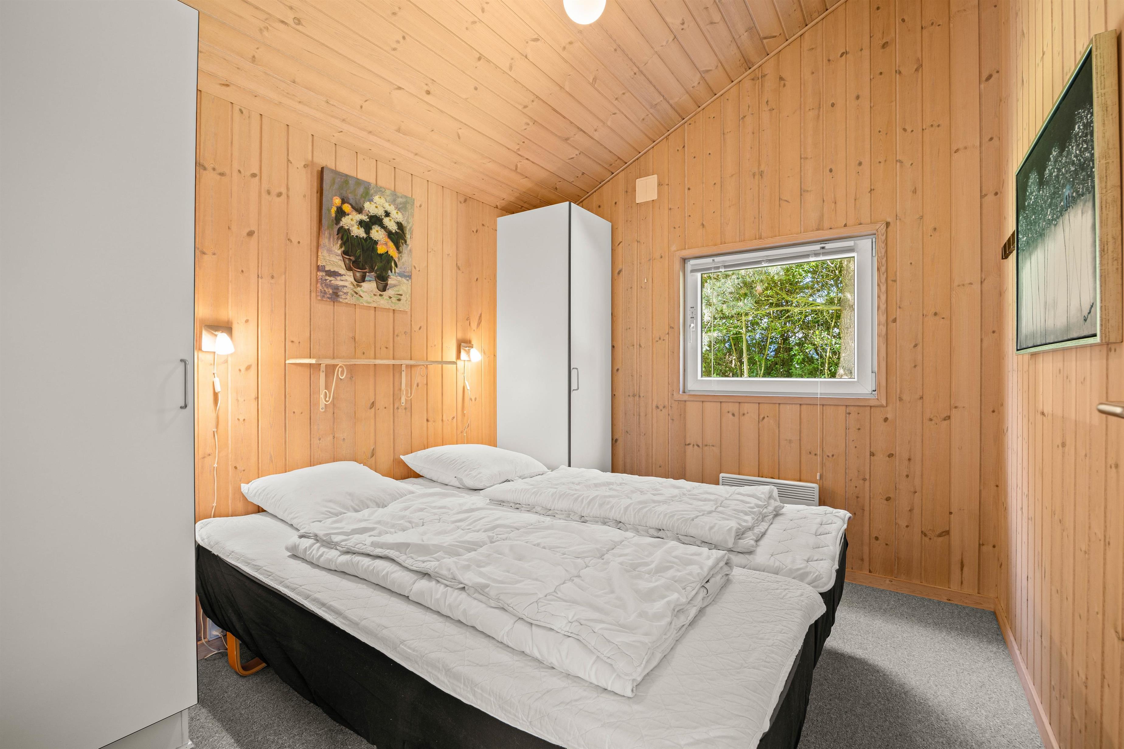 Der er 3 soveværelser i sommerhuset: 2 soveværelser med hver en dobbeltseng og det sidste soveværelse er med en køjeseng, hvilket gør det ideelt til både familier og vennegrupper. Sommerhuset byder også på et badeværelse og et gæstetoilet, begge med gulvvarme. Badeværelset er perfekt til afslapning, takket være saunaen og spaen, der har plads til 2 personer, hvor I kan slappe af efter en dag fyldt med aktiviteter. Desuden er der både vaskemaskine og tørretumbler, så I nemt kan holde styr på jeres tøj under hele opholdet.