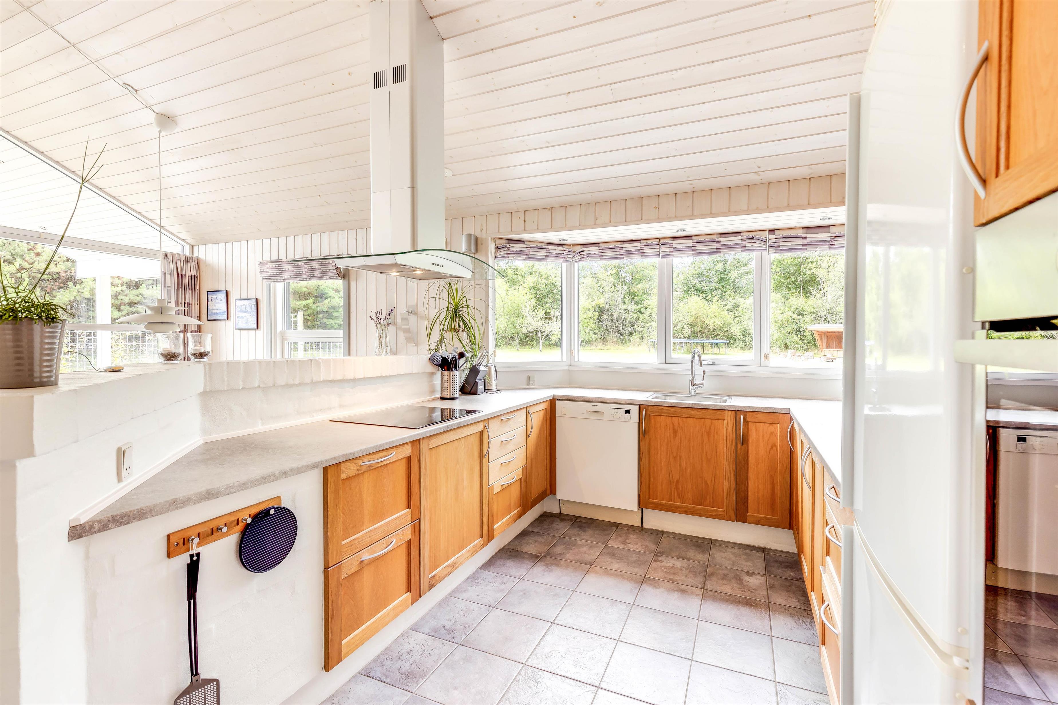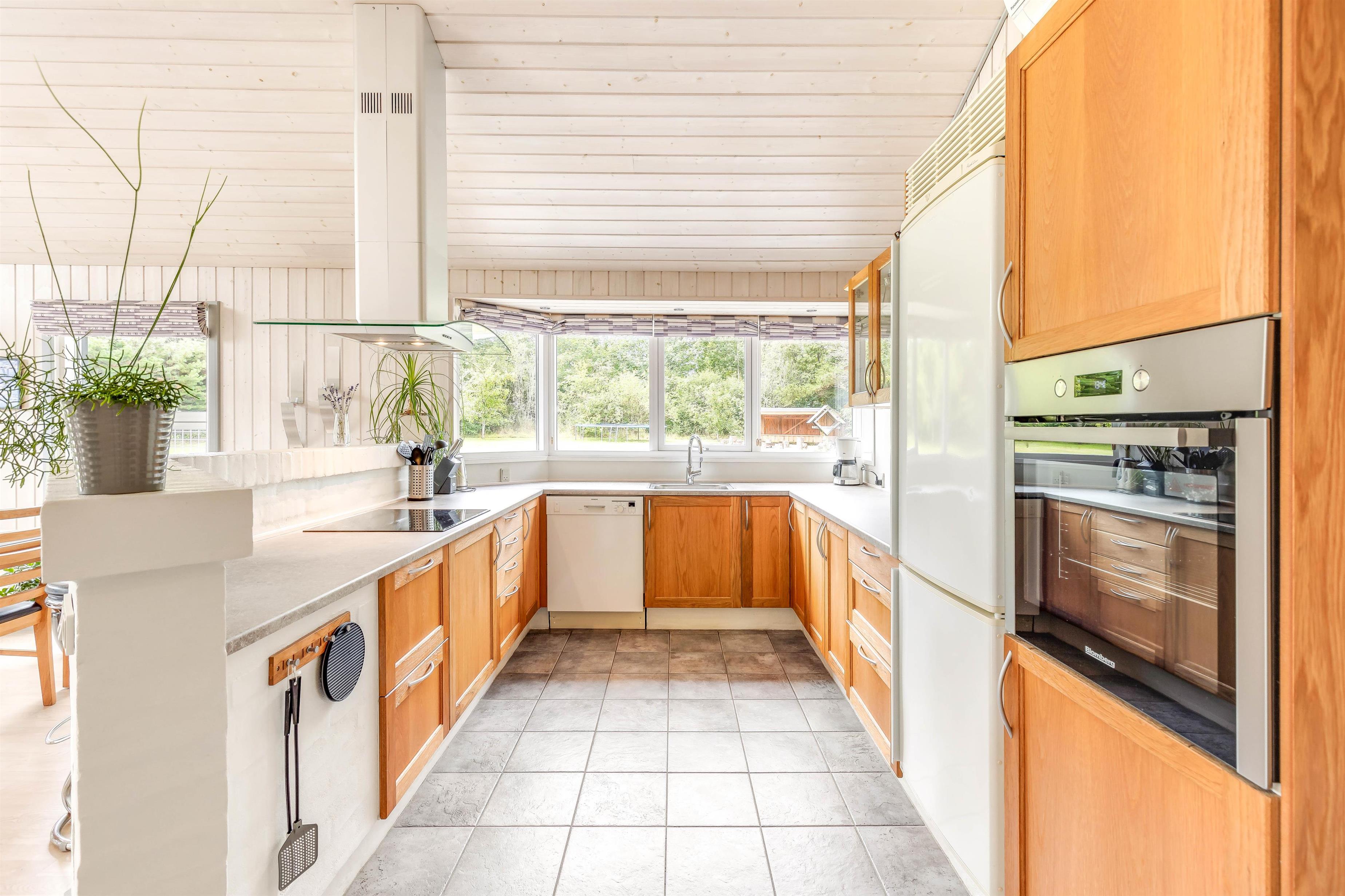 Sommerhuset byder på en lys og indbydende indretning, der gør det nemt for hele familien at føle sig hjemme. Den åbne planløsning skaber den perfekte ramme for fælles aktiviteter og hyggeligt samvær. I køkkenet kan I nemt tilberede jeres yndlingsretter, som kan nydes i den tilstødende spisestue, og med god hjælp fra opvaskemaskinen kan I hurtig komme tilbage til hyggen eller ud på næste eventyr.