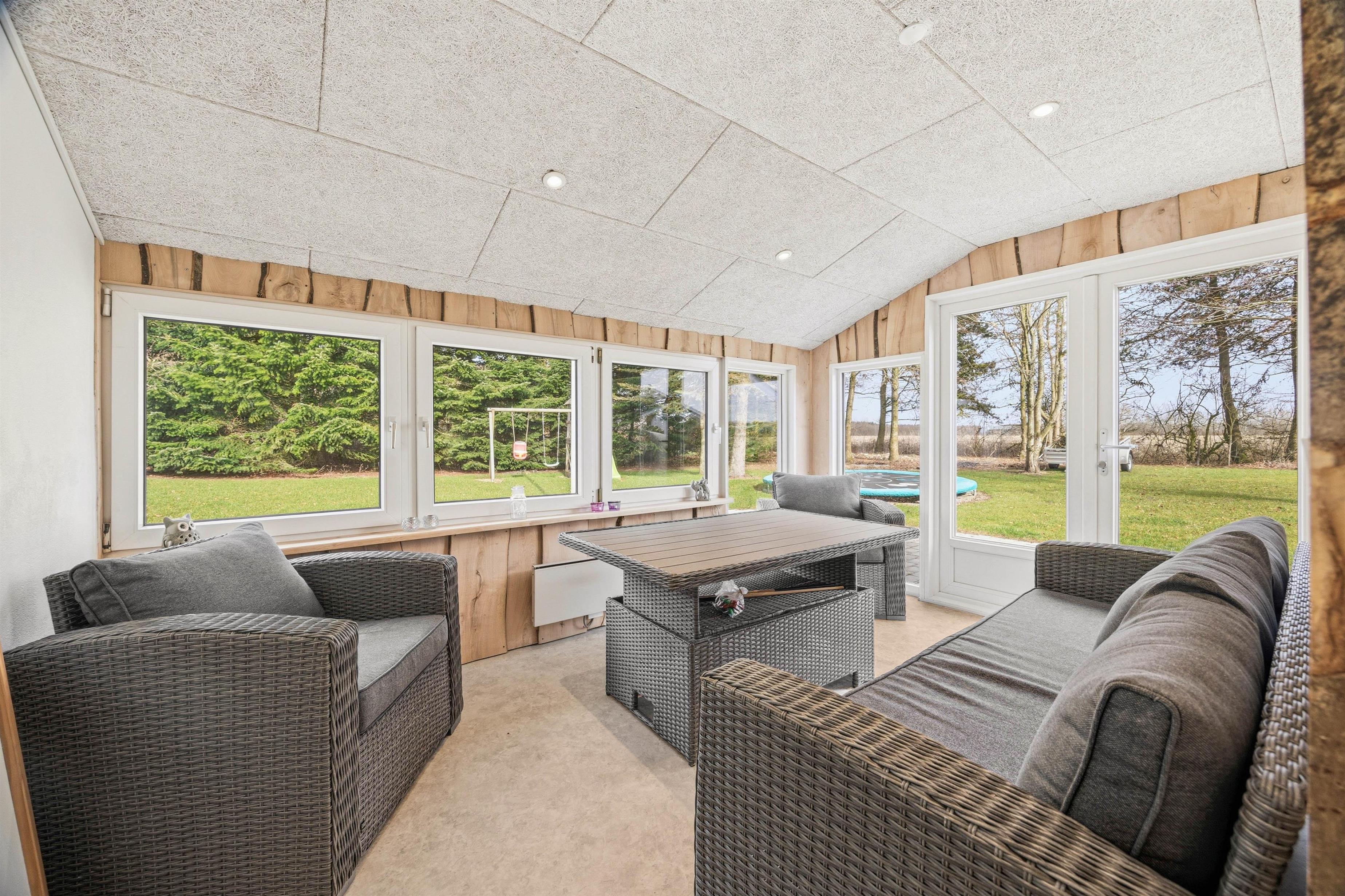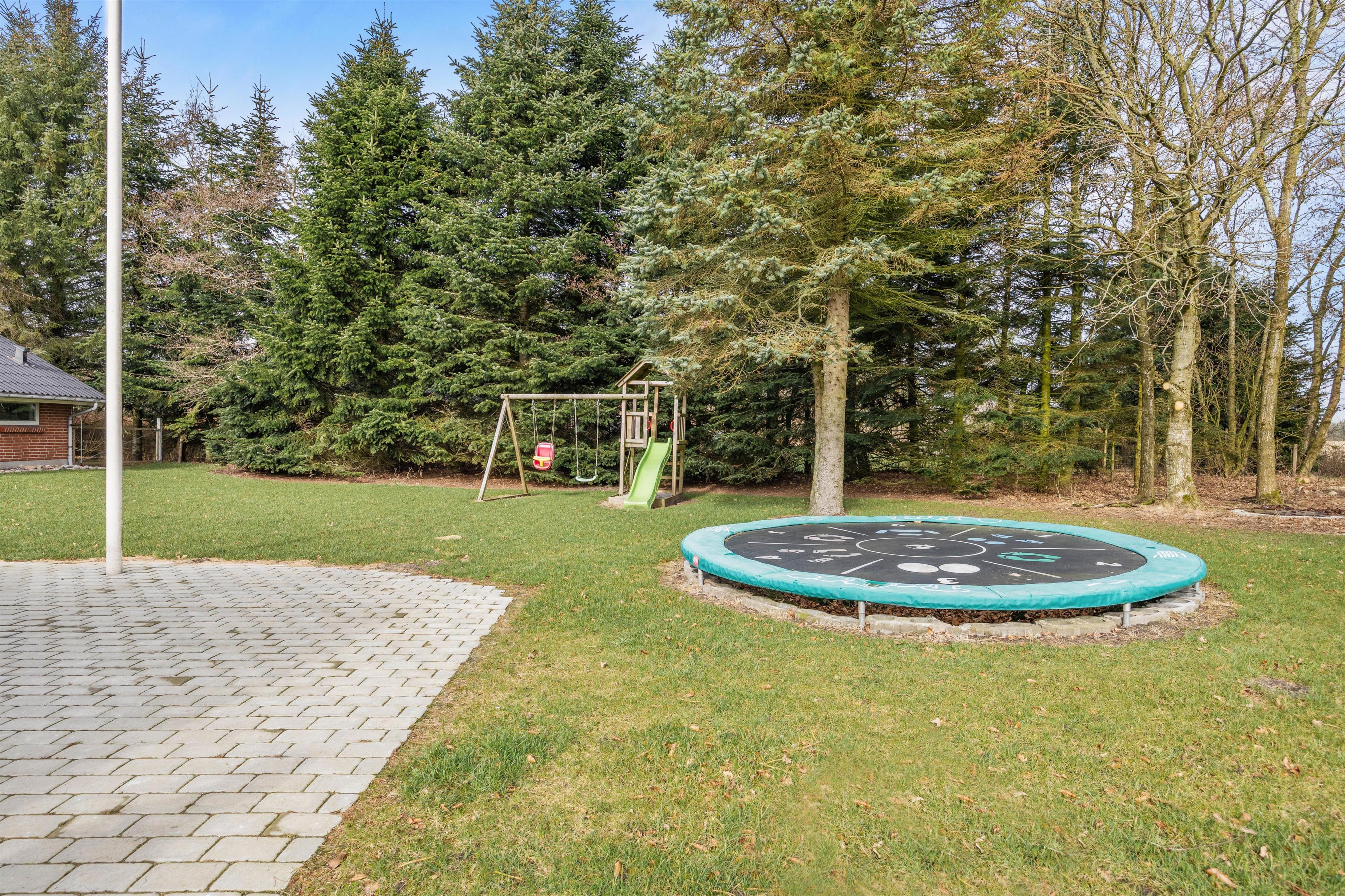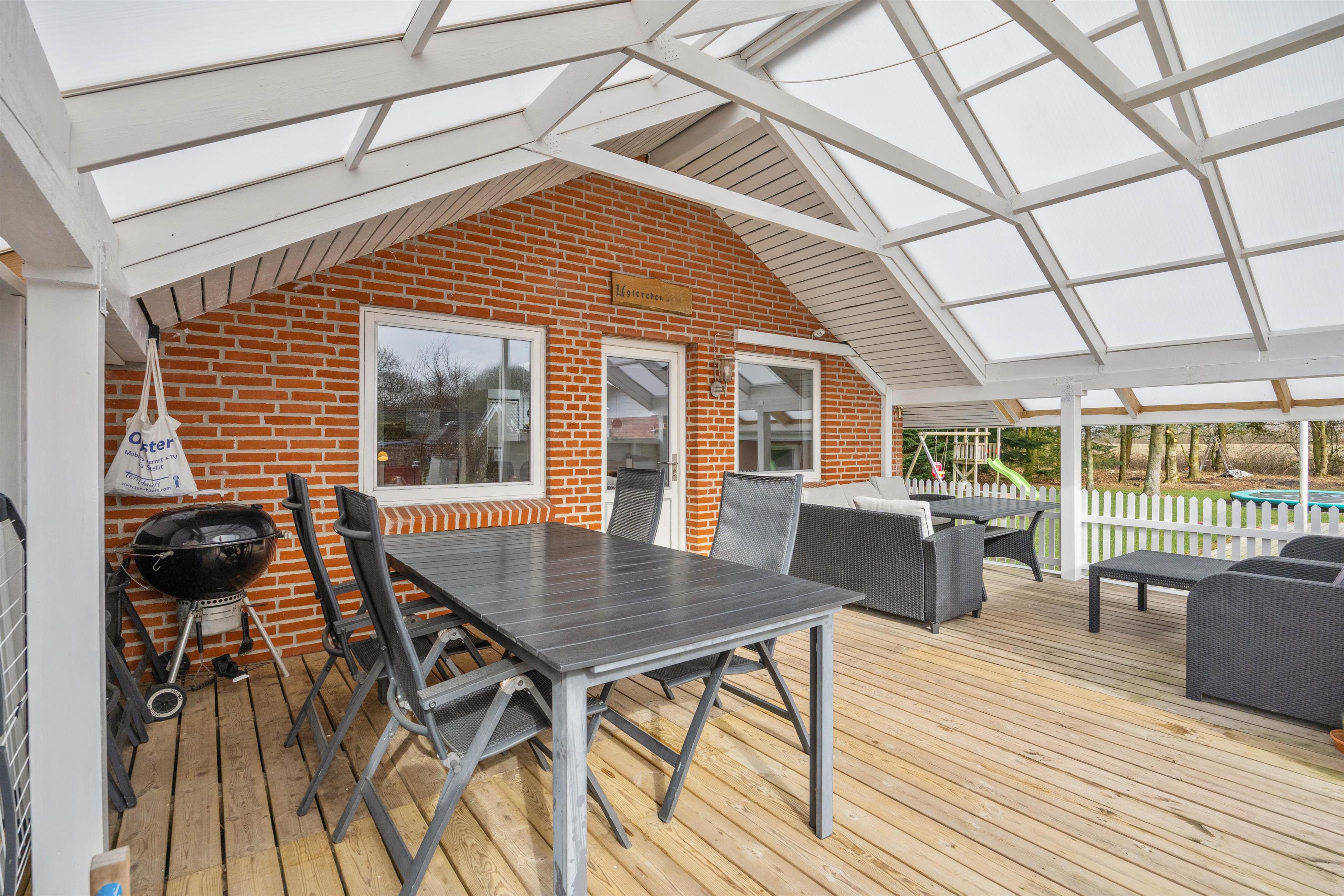 Udearealet giver dig masser af plads til at nyde ferien i det fri på den store 1622 m2 plænegrund, hvor både leg og afslapning kan fylde dagen. Du kan vælge mellem flere skønne terrassemiljøer, da sommerhuset har både åben, afskærmet, lukket og overdækket terrasse, så du altid kan finde læ, sol eller skygge alt efter vejr og humør. Den indhegnede grund gør det ekstra trygt, hvis du har børn eller hund med, og der er rig mulighed for at aktivere familiens mindste med sandkasse og gynge. Trampolinen indbyder til timevis af sjov og bevægelse, mens du selv kan sænke tempoet og forkæle dig med en tur i udespaen, der har plads til 6 personer og er oplagt til afslapning både dag og aften.