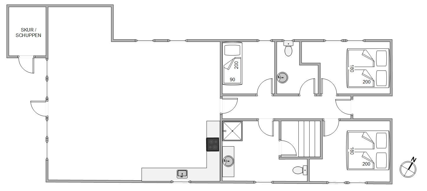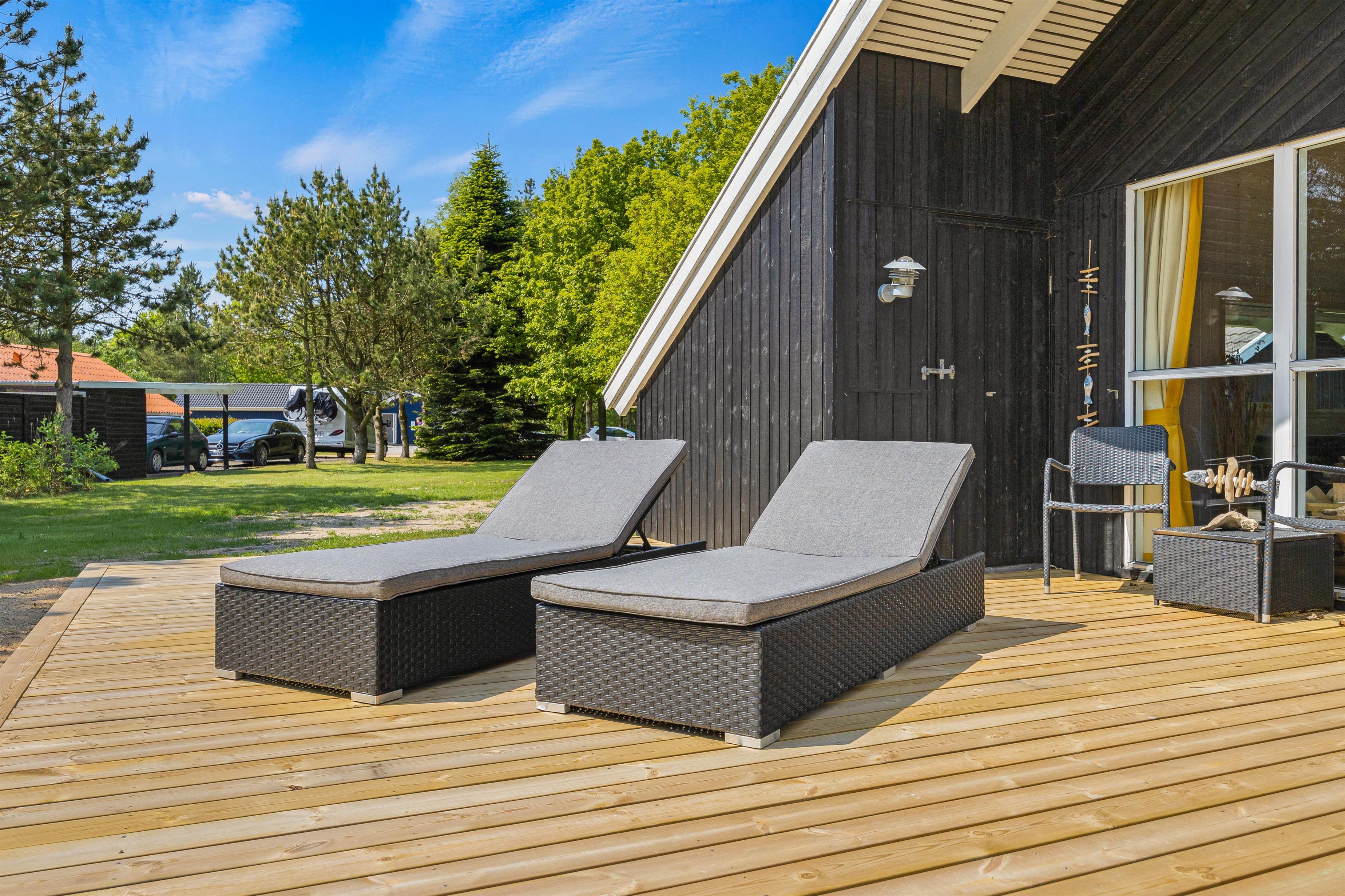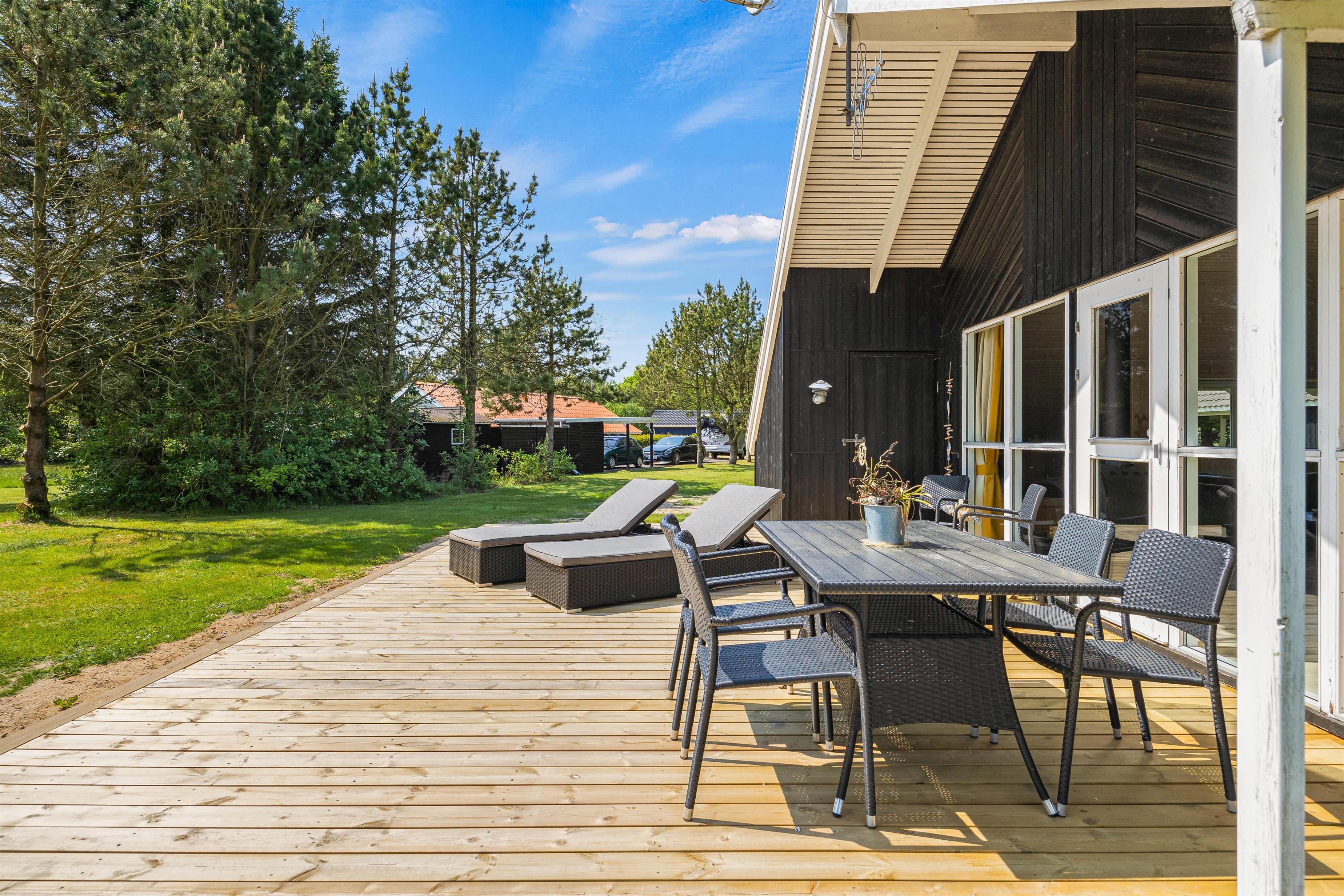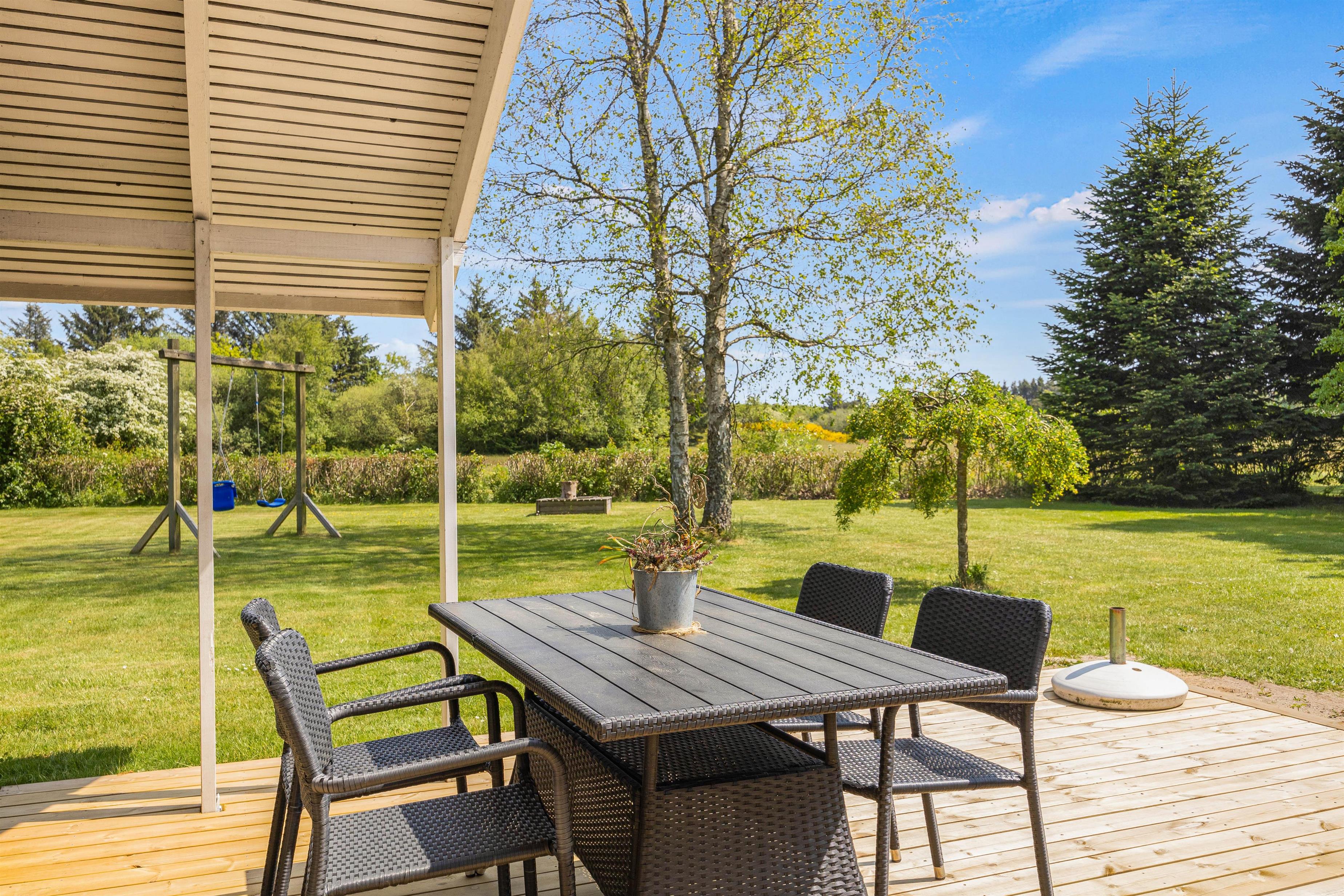 Sommerhusets store grund på 1758 m2 tilbyder mange muligheder for både aktivitet og afslapning. Den store plæne er perfekt til boldspil og leg, og terrassen, der både er overdækket, åben og afskærmet, sikrer fleksibilitet uanset vejret. Her kan I nyde måltider, solbade eller søge skygge efter behov.