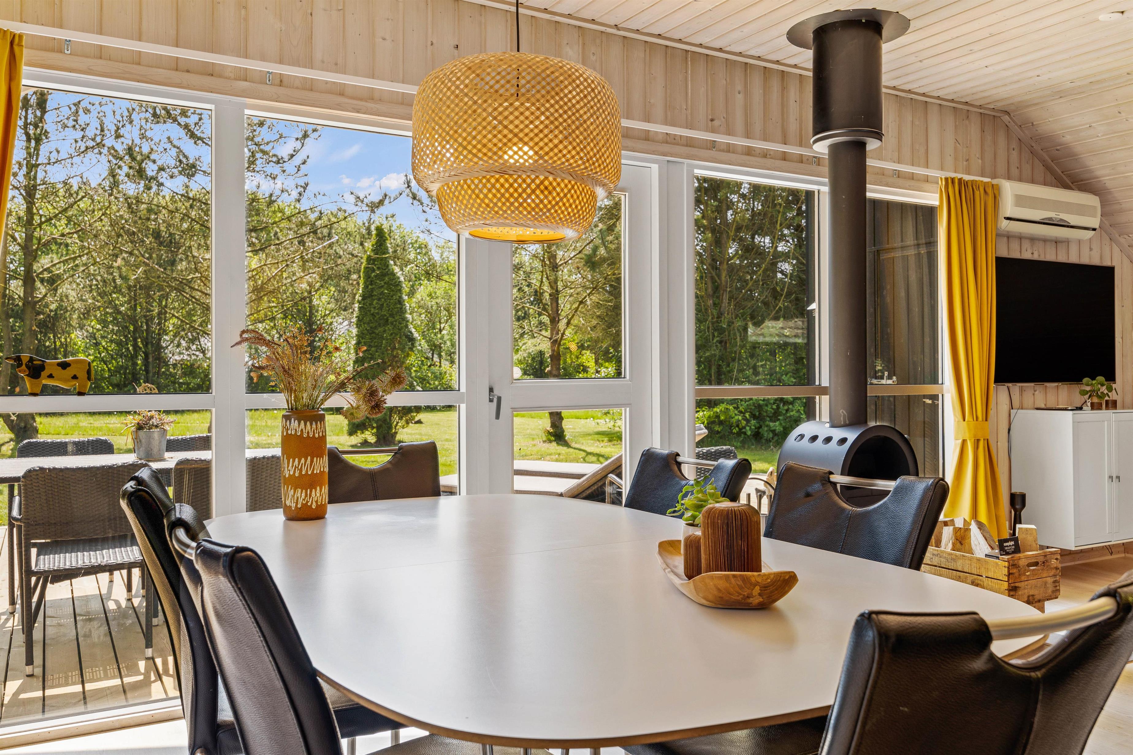 Dette velholdte og godt udstyrede sommerhus på Hybenvangen 8 har plads til en familie med op til 5 personer og 1 hund. Det ligger i Jegum Ferieland, hvor der er en offentlig legeplads, midt i et område med masser af natur, kun 10 minutters kørsel fra det brusende Vesterhav. Sommerhuset egner sig især godt til familier med børn, men også par, der nyder lange gåture i naturen eller bare vil nyde livet på terrassen fuldt ud.