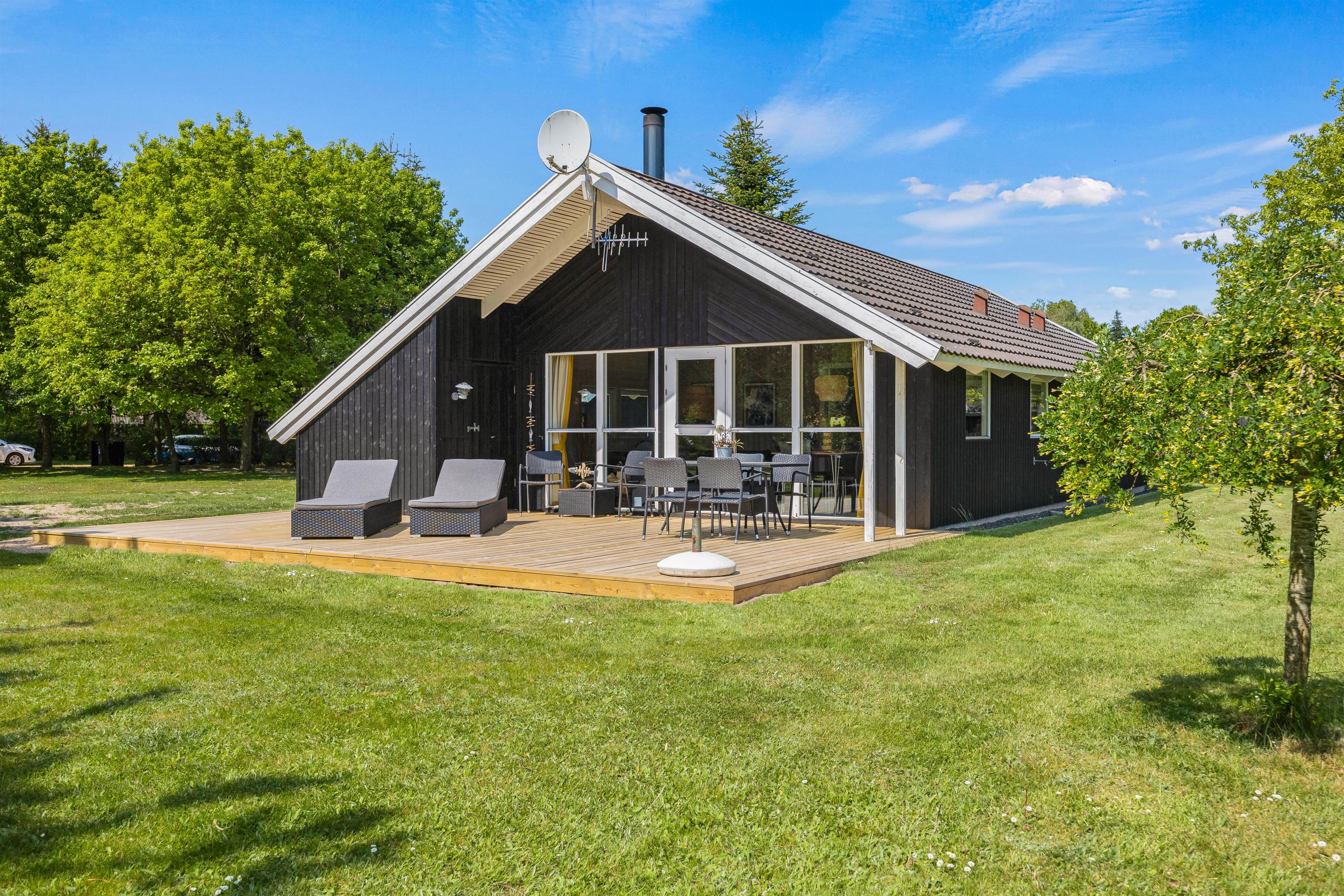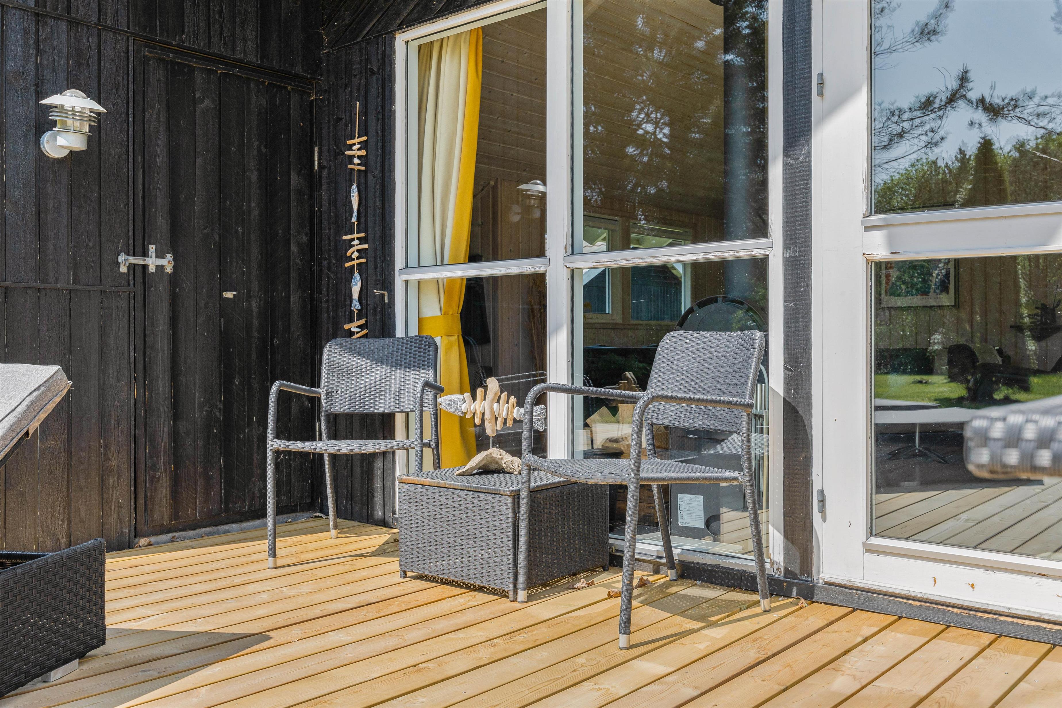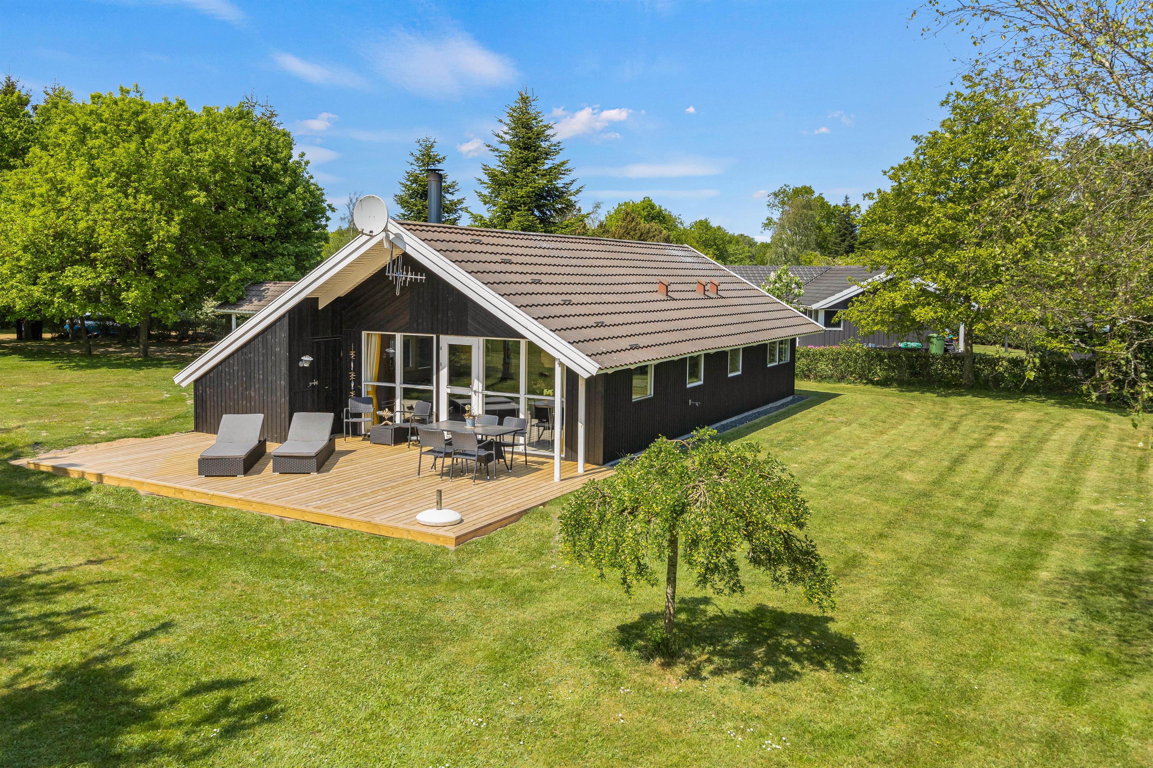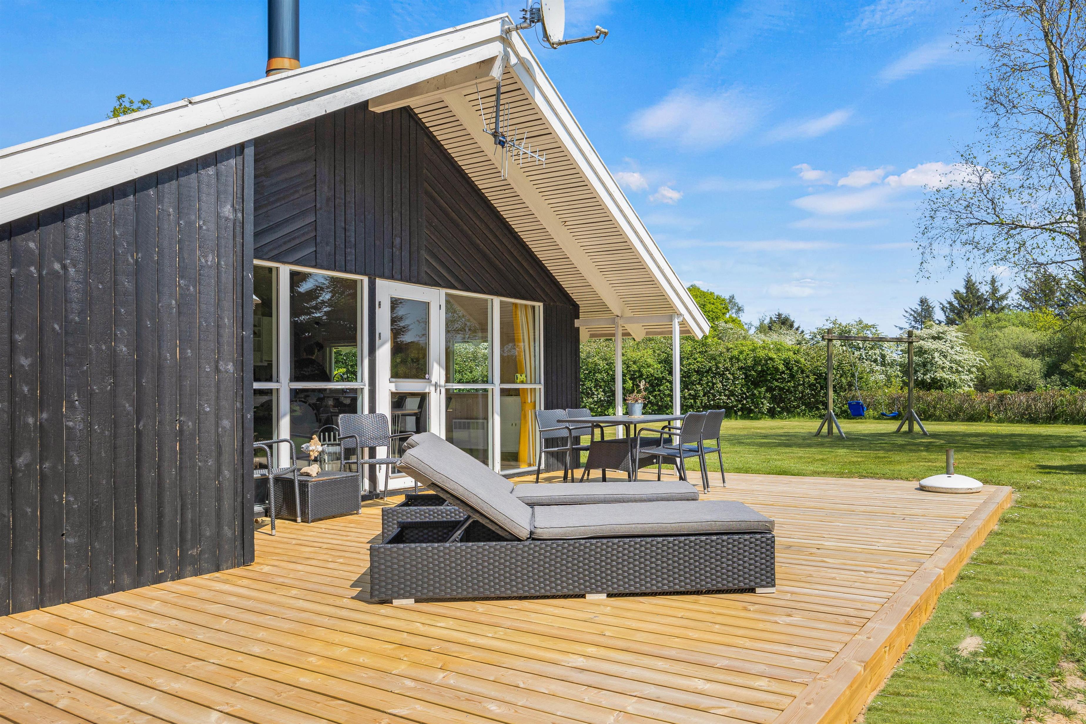Mens børnene render rundt i haven og bruger deres energi på gyngerne eller i sandkassen, kan du slappe af på feriehusets skønne terrasse. Din hund vil helt sikkert også finde spændende spor, for her bor du midt i naturen, hvor vilde dyr kommer forbi fra tid til anden.