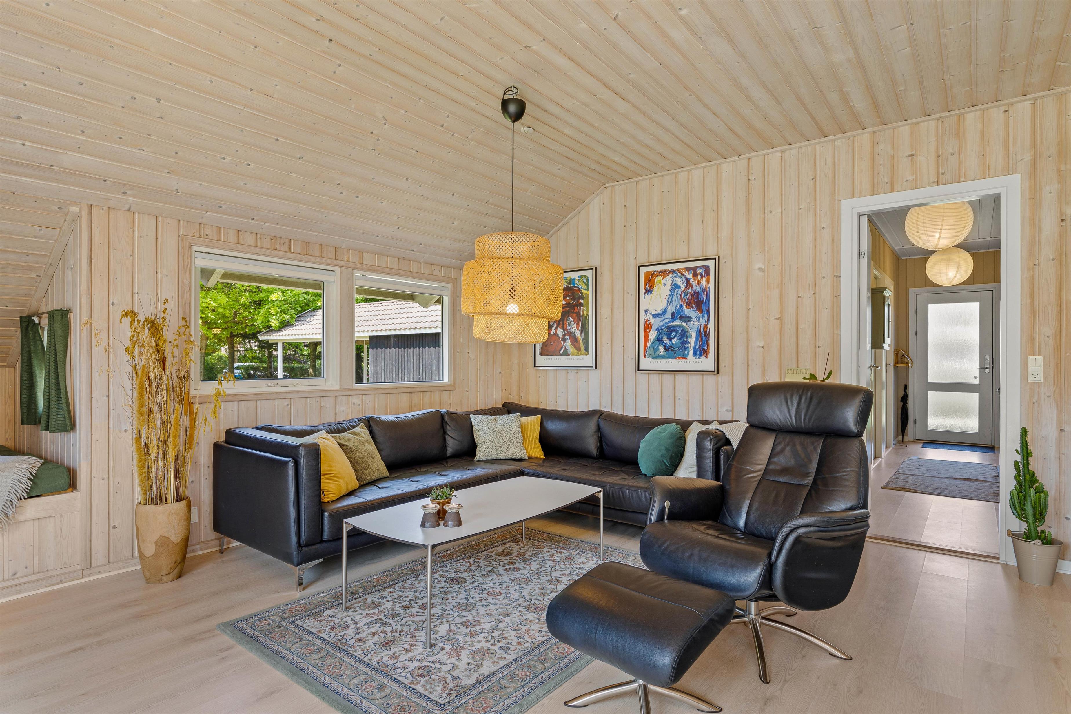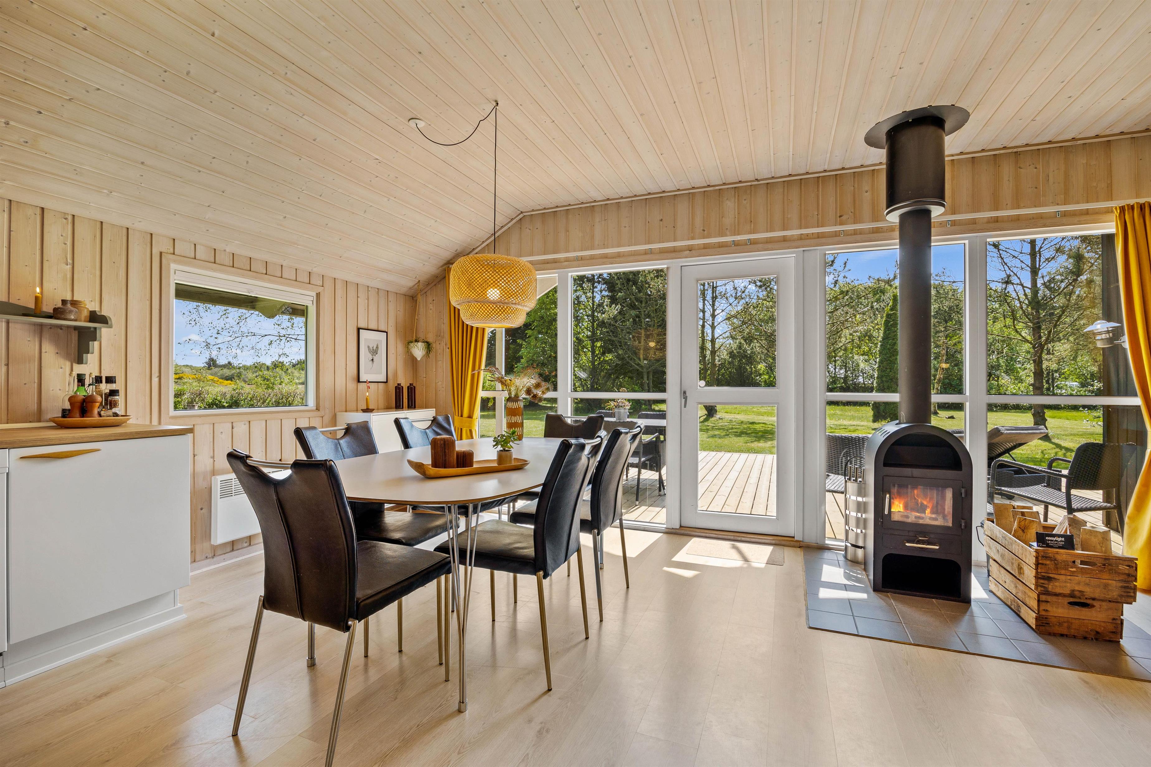 Komfortabel og hyggelig indretning med brændeovn