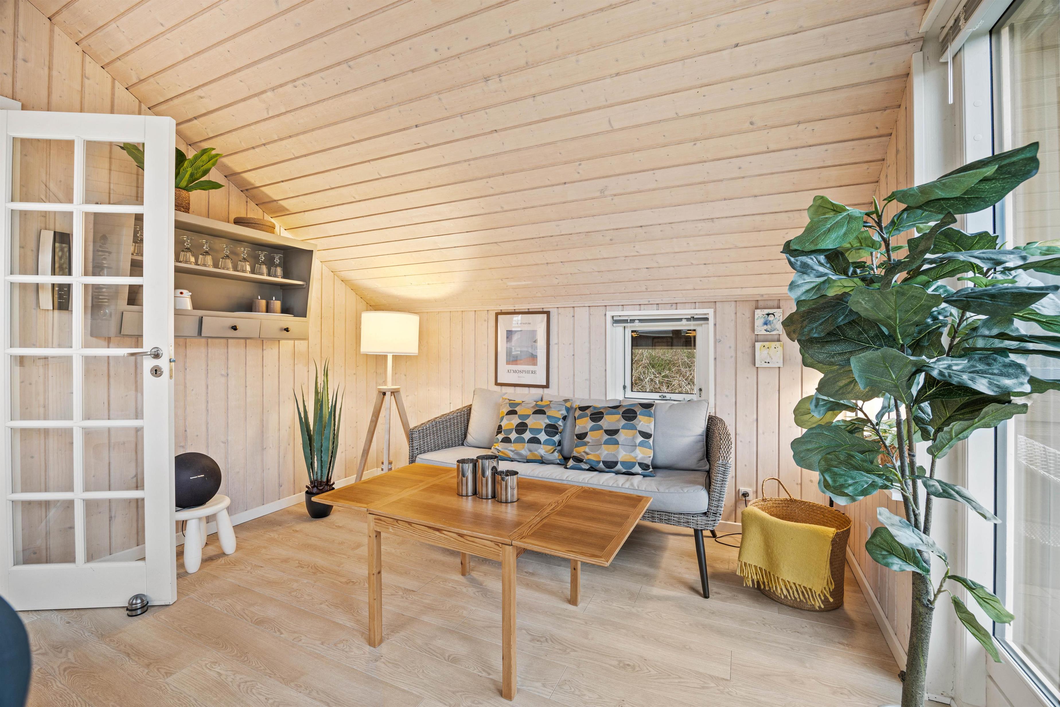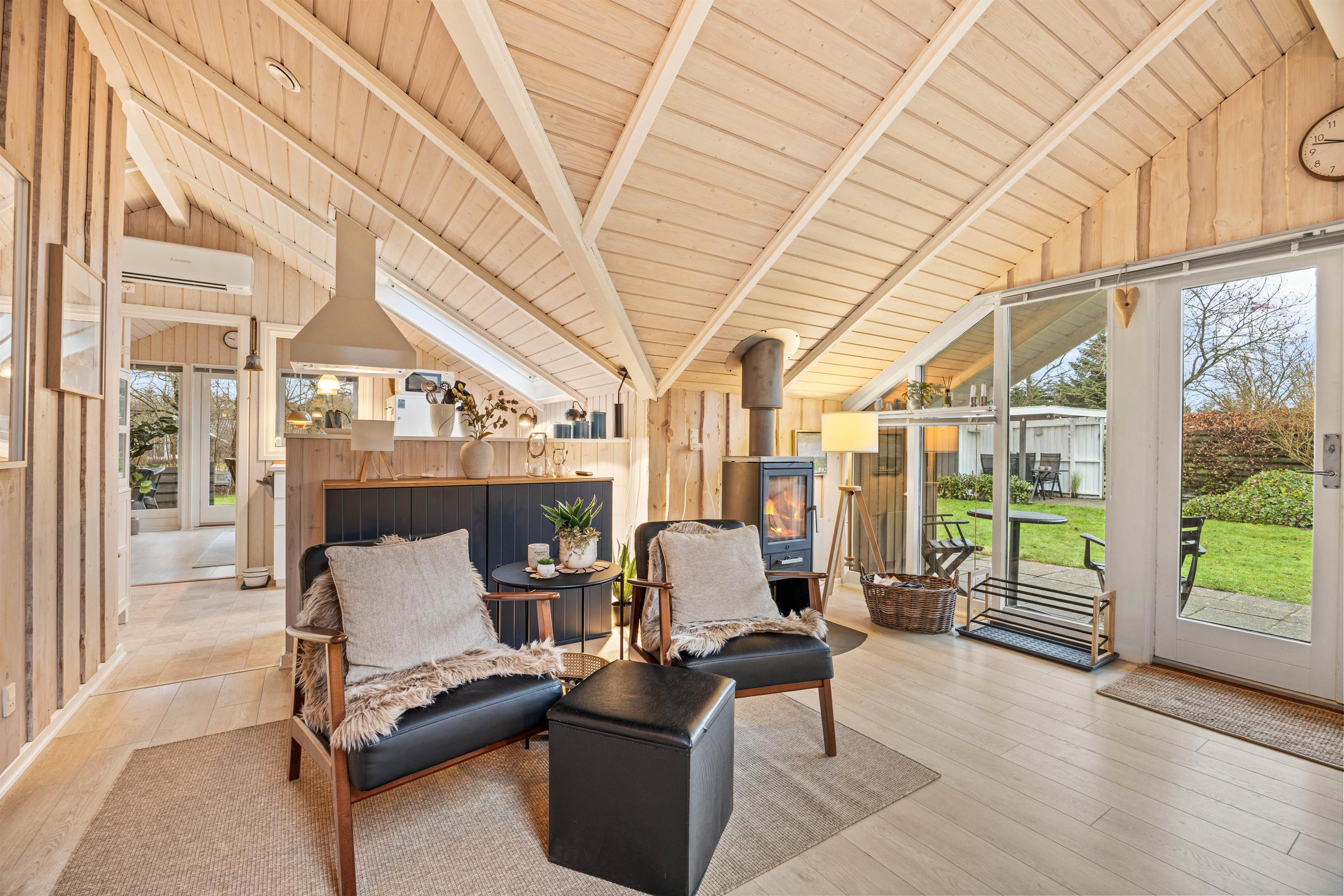 Indenfor byder sommerhuset jer velkommen med en varm og afslappet atmosfære, hvor alt er tænkt til at gøre ferien let og bekvem. Vaskemaskinen sørger for, at familiens tøj hurtigt kan klares, så I kan bruge tiden på at nyde ferien. I den hyggelige stue knitrer brændeovnen og spreder både varme og charme – perfekt til lange, rolige aftener med spil, bøger eller en god film. Badeværelset er moderne og udstyret med gulvvarme, så I kan starte dagen med lune fødder og en følelse af velvære.