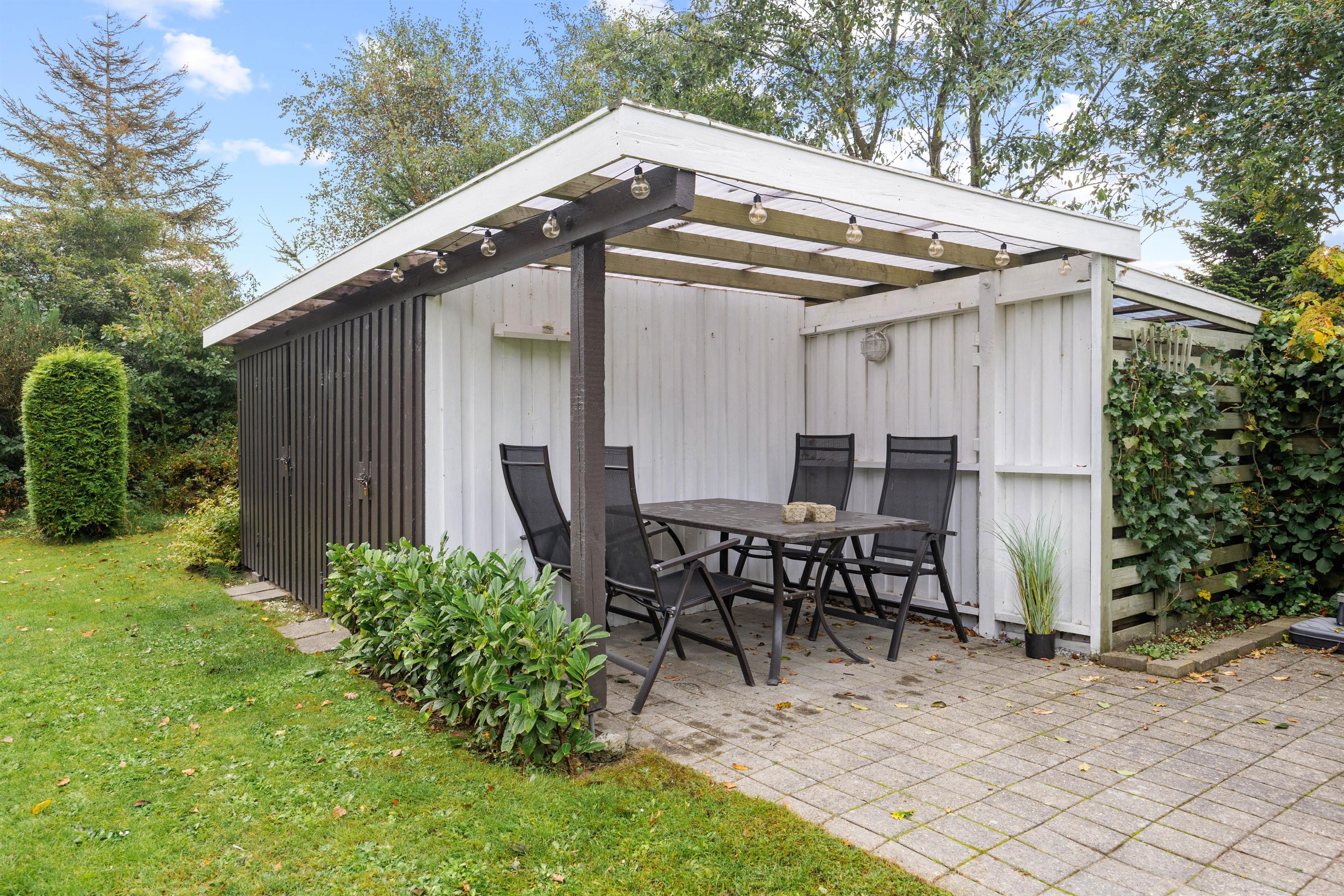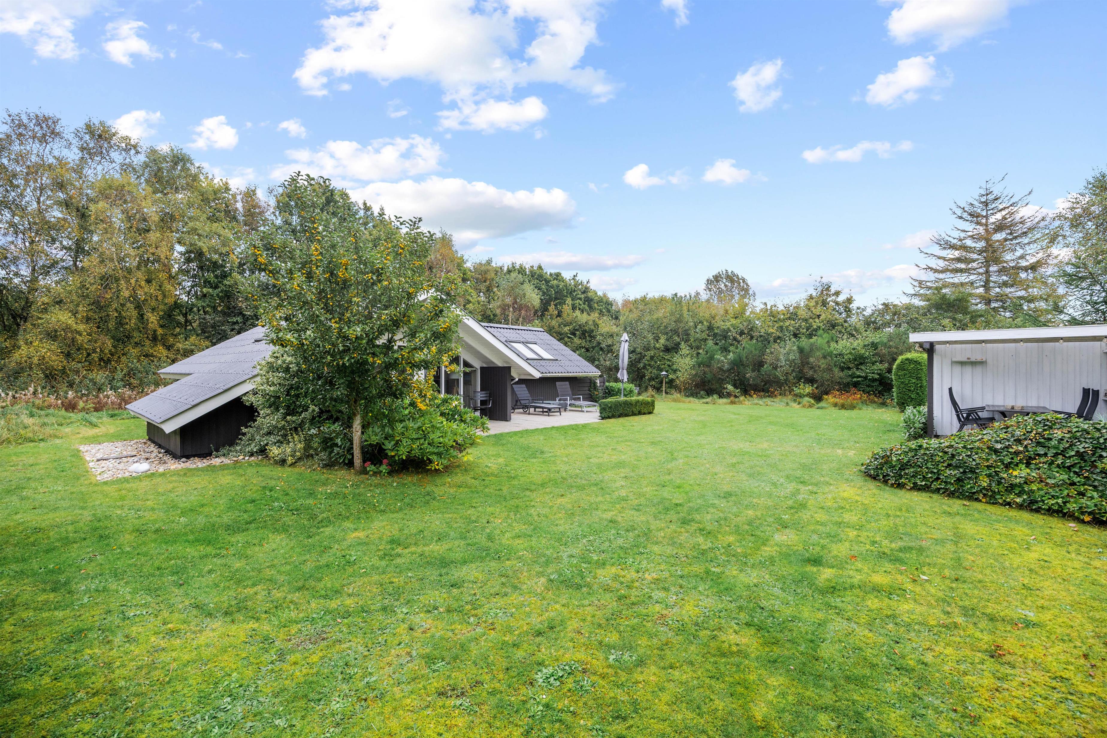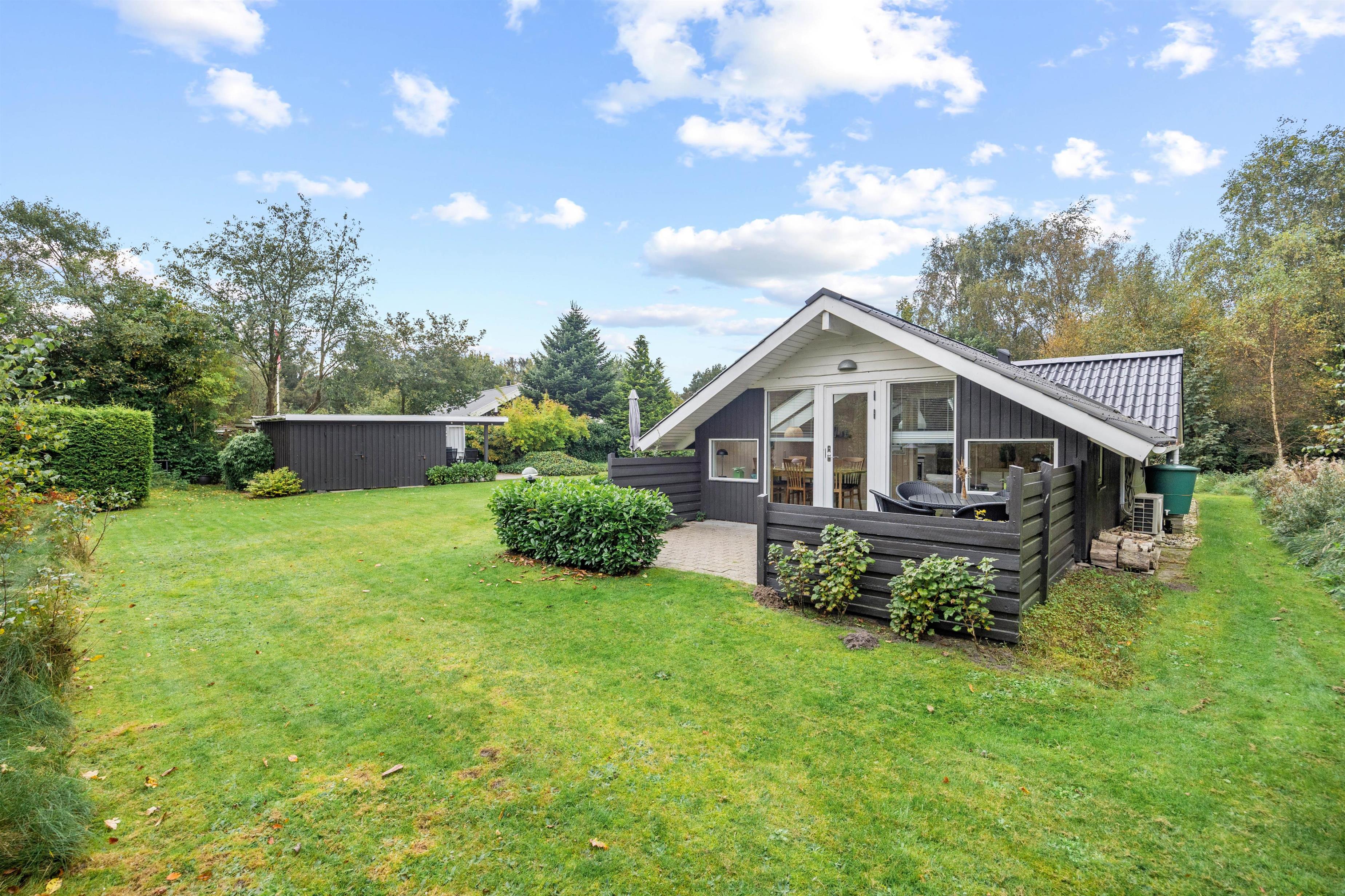 Sommerhusets udendørsareal er skabt til at gøre jeres ferie endnu mere fornøjelig. Den rummelige plænegrund giver masser af plads til leg og afslapning i det fri. Uanset om I ønsker at grille lækre måltider eller nyde morgenkaffen i solen, vil både den åbne og den overdækkede terrasse tilbyde de ideelle rammer. Her kan I samles til hyggelige grillmiddage og lade børnene lege frit, mens I nyder den friske luft. Den overdækkede terrasse sikrer, at I også kan være udendørs, selv hvis vejret viser sig fra en knap så solrig side. Så gør klar til uforglemmelige stunder i det indbydende udeareal.