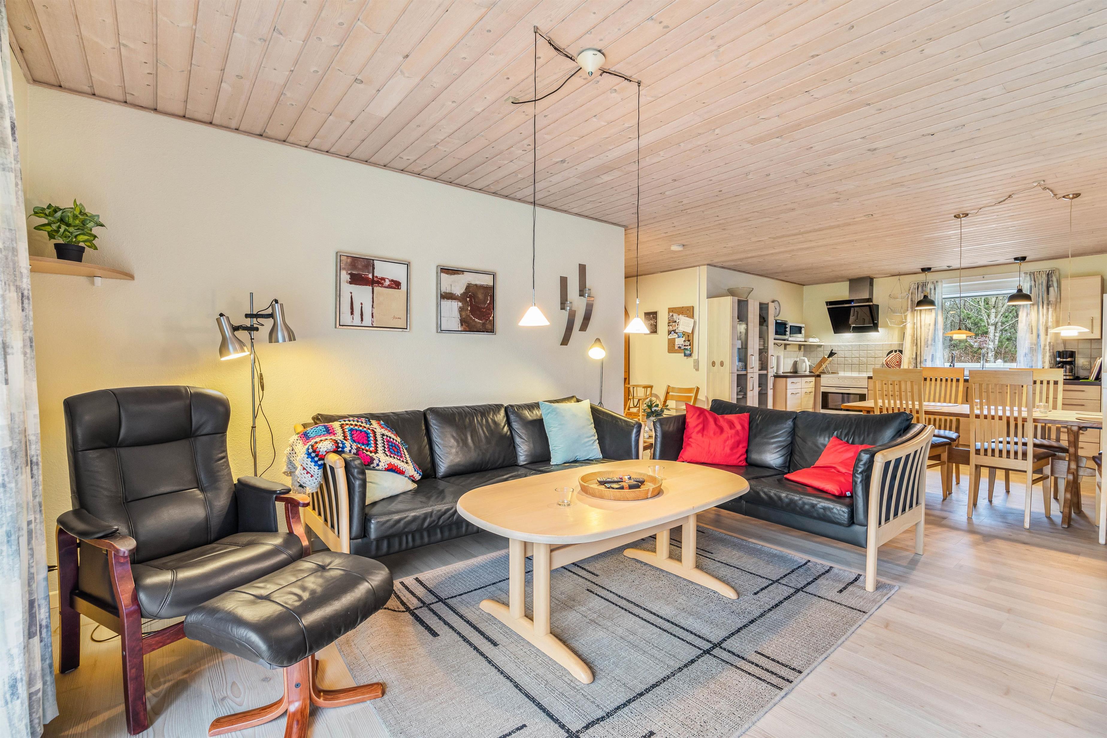 Dette sommerhus byder på en lys og indbydende atmosfære med fokus på hjemlig hygge. Med en åben planløsning, hvor køkken og stue er forenet, kan hele familien nyde kvalitetstid sammen.