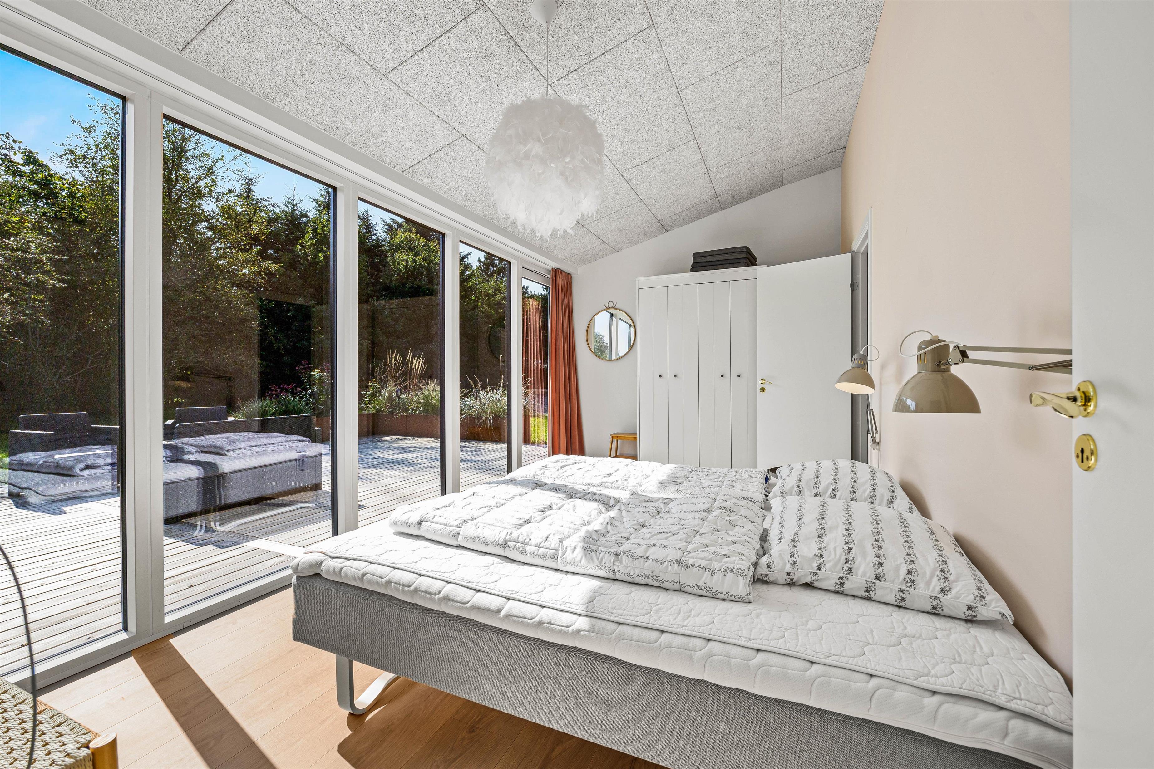 Både på badeværelserne, i soveværelserne og i stuen kan I få glæde af gulvvarme, så I helt slipper for at fryse jeres fødder på ferien. Desuden har sommerhuset en energivenlig varmepumpe.