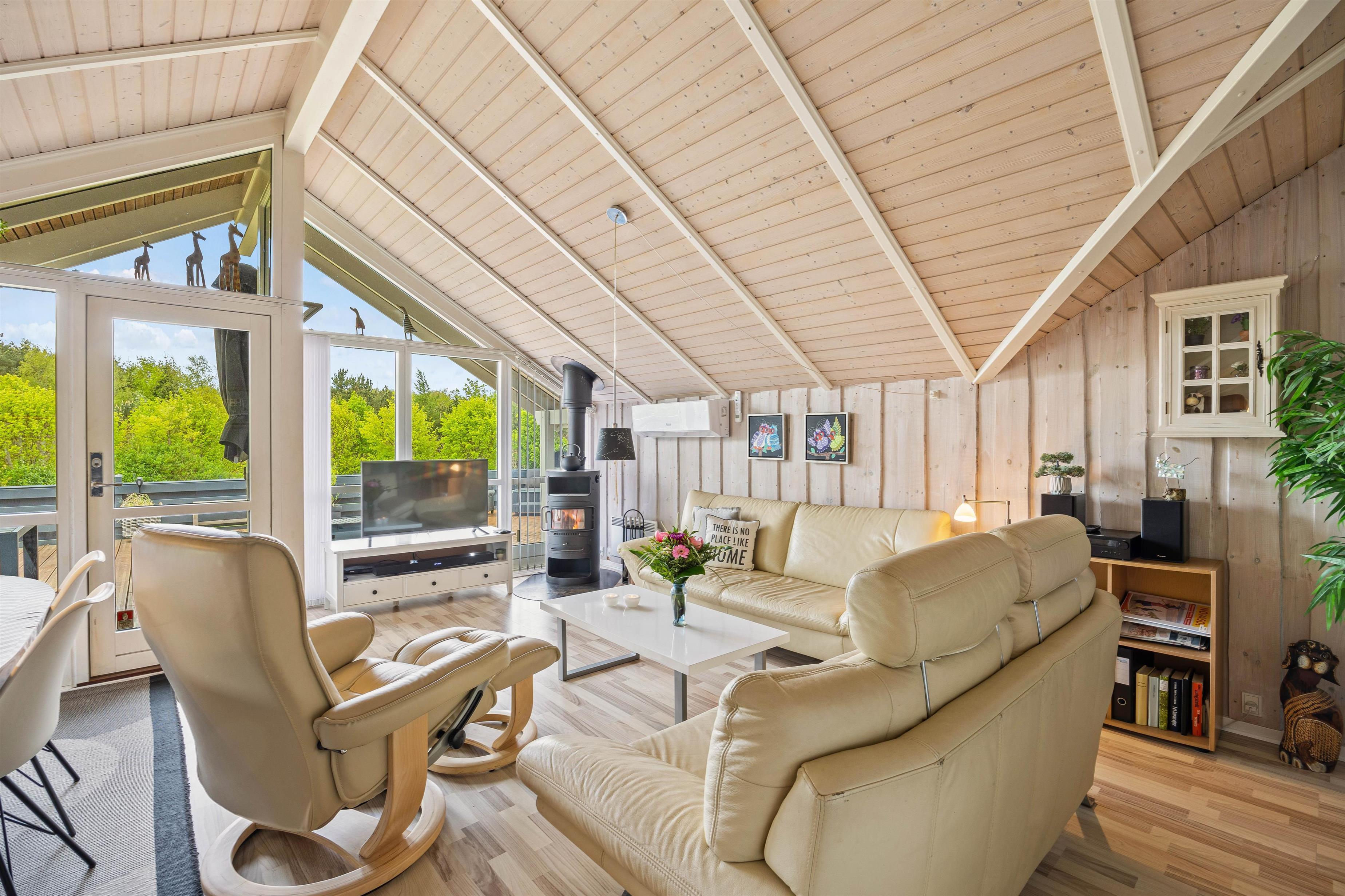 Straks når I træder ind i entreen, vil I mærke sommerhusstemningen. De lyse trævægge og store vinduer giver et dejligt, naturligt lys til hele ferieboligen. Det store opholdsrum er hjertet i sommerhuset. Her er stue, spiseplads og køkken samlet, så I kan nyde hinandens nærvær, mens nogle spiller et brætspil eller læser en god bog i sofaen og andre står i køkkenet og tryller lækkerier frem. Sommerhuset er udstyret med både opvaskemaskine, vaskemaskine og tørretumbler, som den perfekte hjælp til hverdagens pligter.