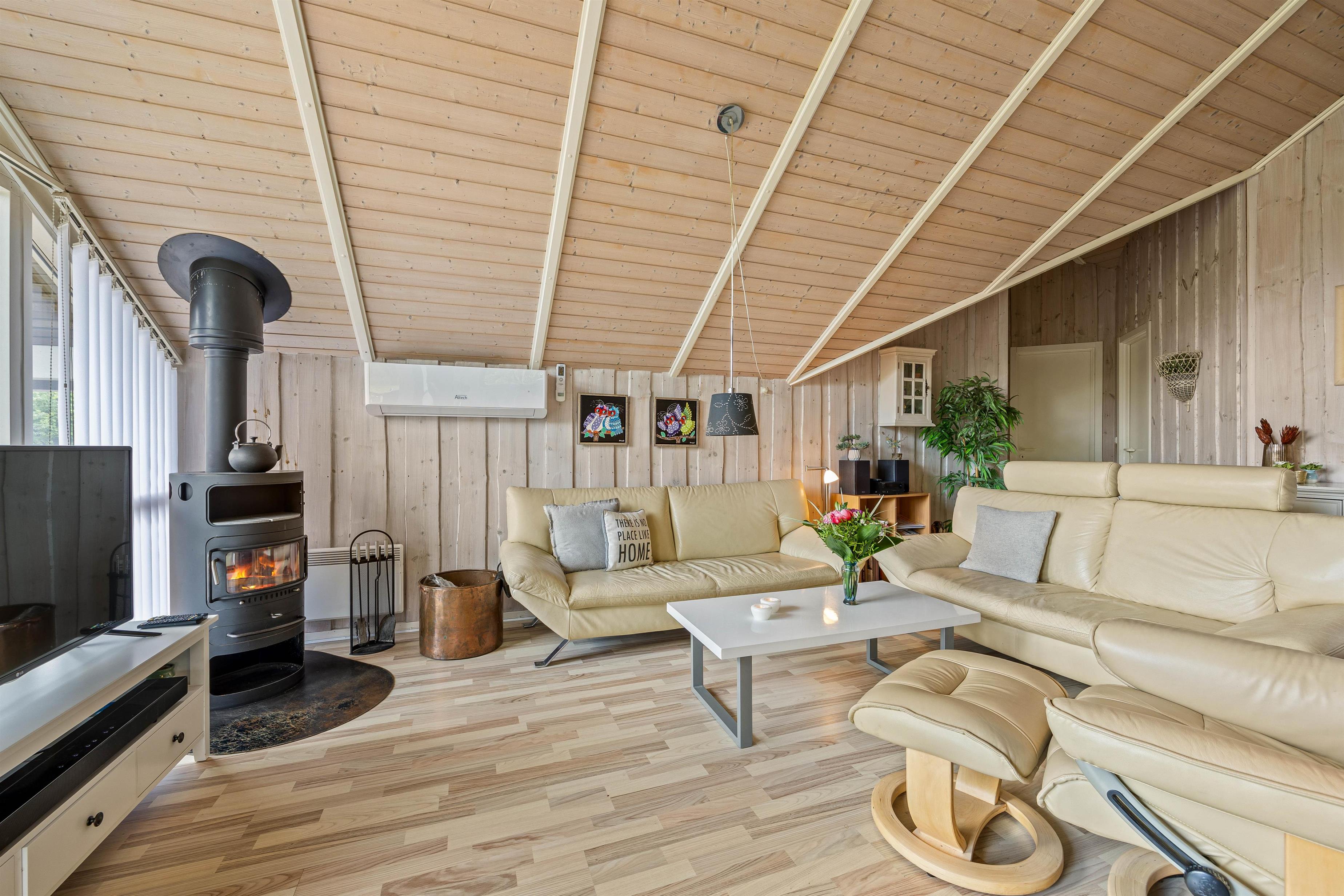 Brændeovnen sørger også for, at hyggen er i top. Varmen og de flotte flammer kan få enhver til at falde i staver og glemme tid og sted. I kan selvfølgelig også benytte jer af den energirigtige varmepumpe, der på kort tid varmer hele sommerhuset op.