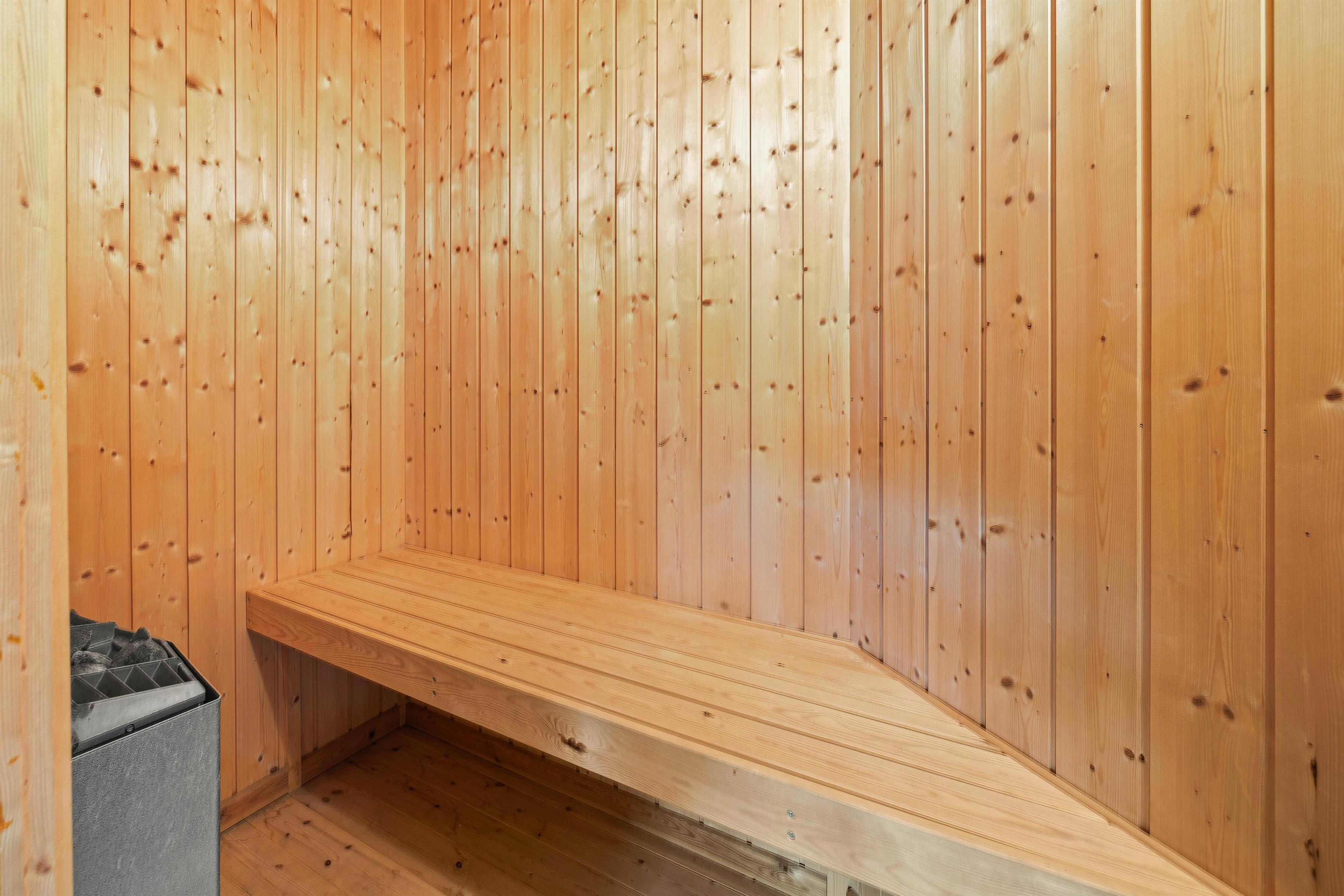 De 3 gode soverum er alle indrettet med dobbeltsenge. Dertil er der både et gæstetoilet og et stort badeværelse med bruseniche, gulvvarme, sauna og spa. Det perfekte sted at komme helt ned i gear efter en lang gå- eller cykeltur i det skønne område.