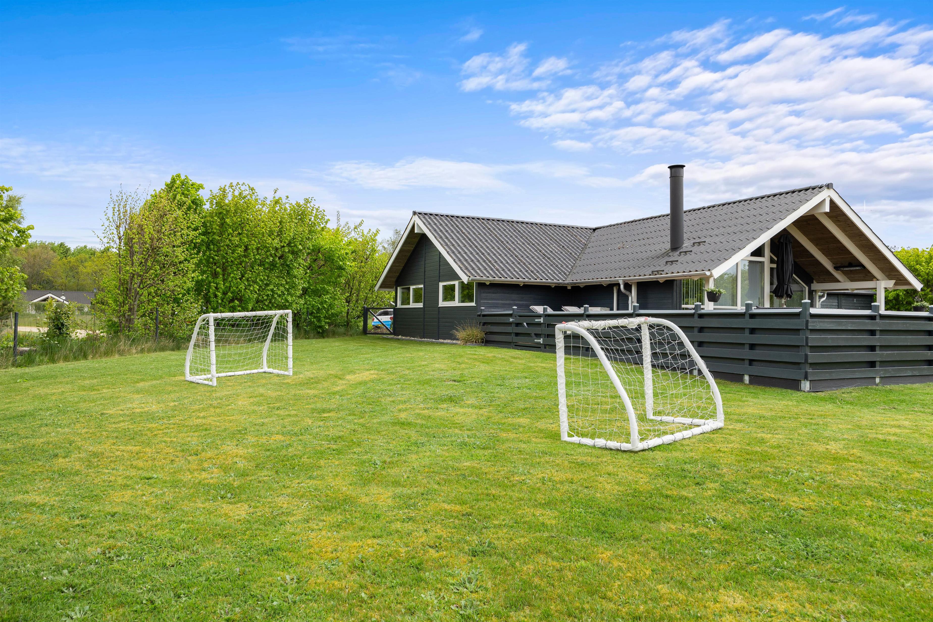 Terrassen har plankeværk hele vejen rundt, så også her kan I nemt holde jeres firbenede venner. En del af den store terrasse er overdækket, så I også kan sidde ude, selvom det skulle dryppe lidt, eller hvis I blot foretrækker skyggen på de solrige dage. På terrassen kan I afslutte enhver perfekt feriedag med at grille de lækreste måltider og nyde dem med et velsmagende glas vin til.
